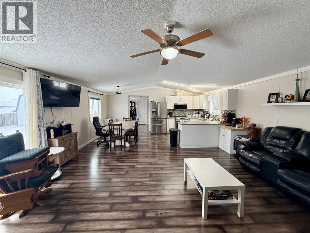 Introducing a modern oasis to call home! This spacious 20-wide modular home set on its own private lot is sure to impress from the moment you arrive. Inside, you’ll appreciate the roomy floorplan featuring 3 sizable bedrooms, 2 full bathrooms, and an open layout that flows seamlessly from the kitchen to the living and dining areas. The kitchen comes complete with quality appliances, modern finishes, and stylish paint colors that create a warm and inviting feel throughout the home. The dining area offers plenty of space for family meals while natural light pours into the comfortable living room. The primary suite is privately located on one end of the home with its own full ensuite and walk-in closet, while the opposite end features two additional bedrooms and another full bathroom. Step outside and enjoy the nicely kept yard with underground sprinklers, full fencing for privacy, and the added bonus of backing onto the church yard for no neighbors behind. Also features an insulated heated shed with half loft for your convenience. Located close to the park in a great neighborhood, this property offers a fantastic combination of comfort, location, and value—homes like this are always in demand, so come take a look! (id:51989)