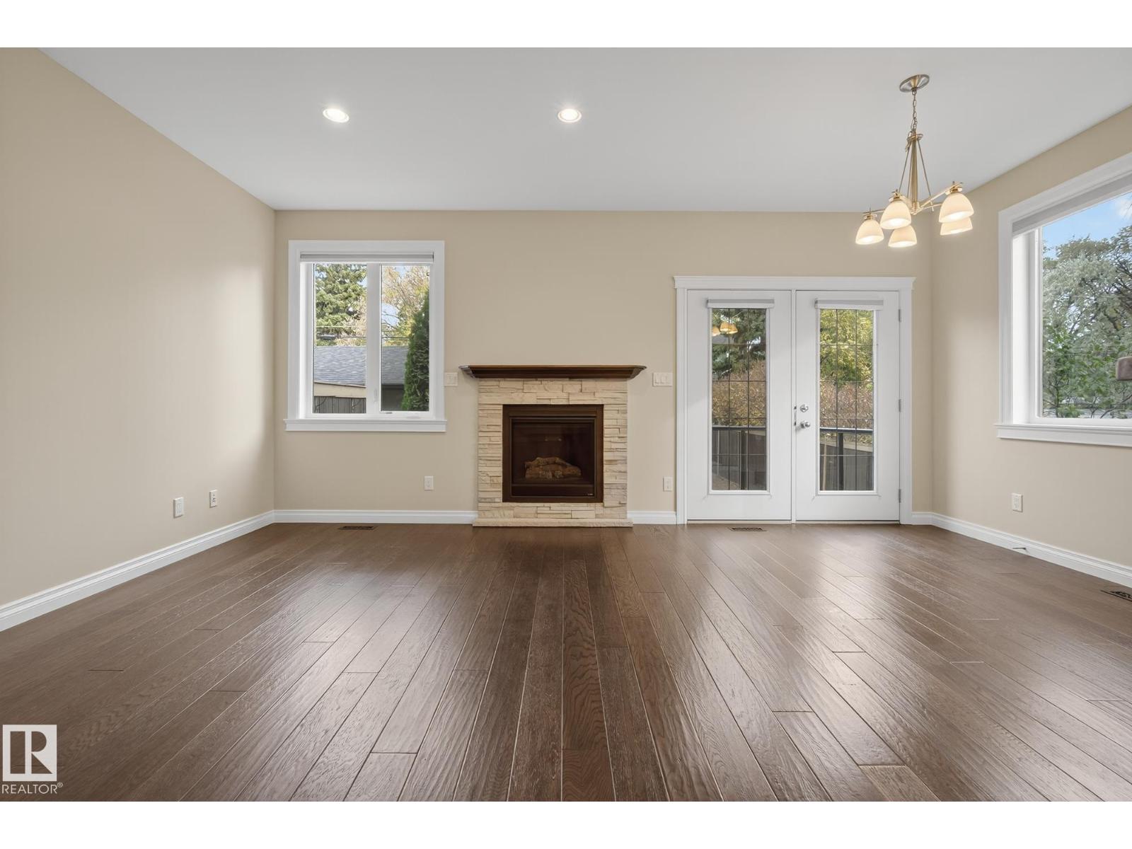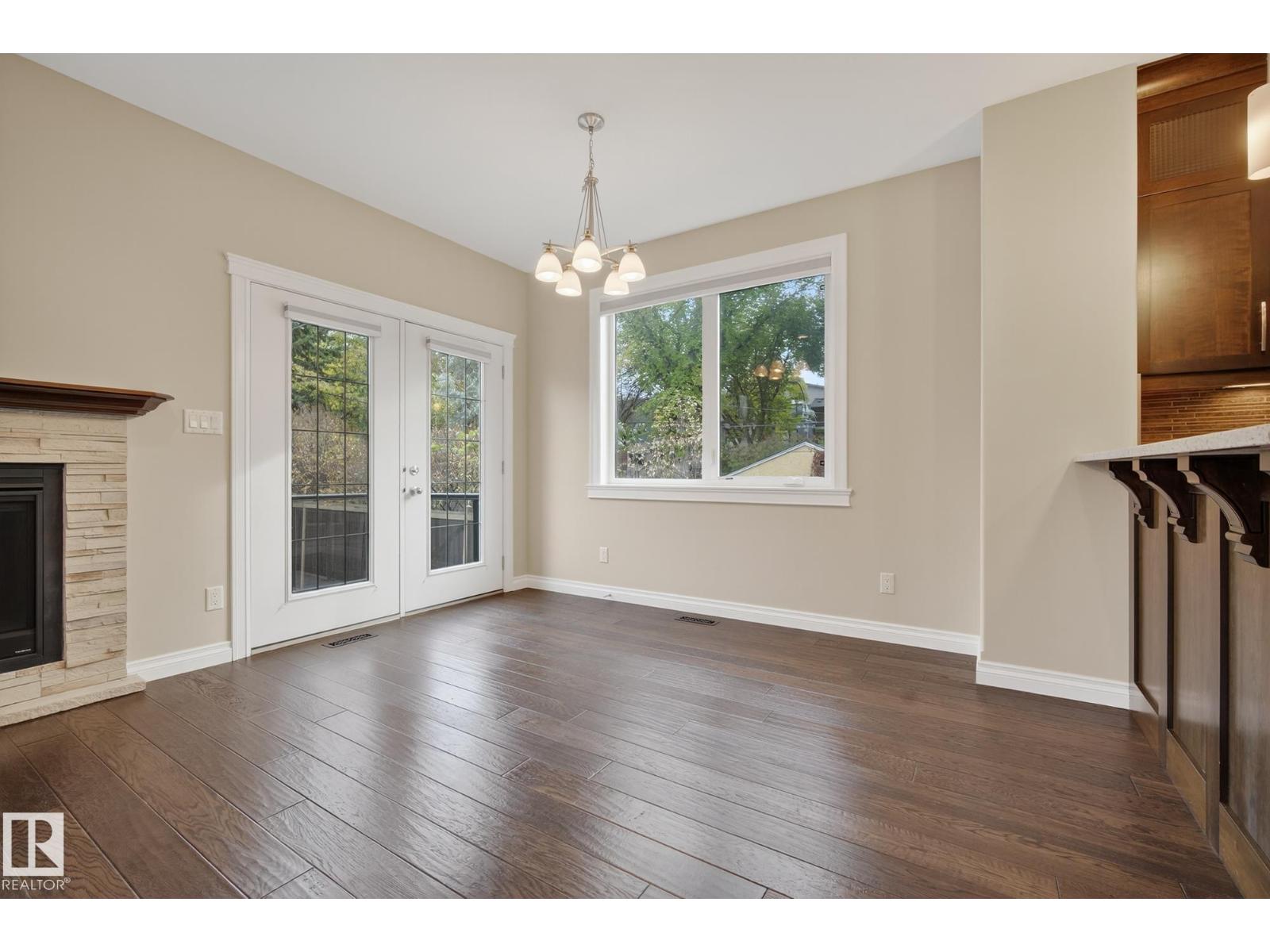 This beautifully built 3-bedroom, 2-storey home offers over 1,830 sq. ft. of well-designed living space just steps from the University of Alberta. If you’ve been searching for a newer home without the narrow “skinny” layout, or don’t want to stretch your budget for a detached option, this is the one. Built with energy efficiency in mind, it features foam-insulated walls and added exterior insulation. The main floor showcases 9’ ceilings, rich oak hardwood, and a cozy gas fireplace. The kitchen features maple cabinetry, granite counters, a large island, stainless steel appliances, and a corner pantry. A main floor den adds flexibility for a home office or guest space. Upstairs offers a spacious primary suite with 5-piece ensuite, walk-in closet, and convenient laundry. Skip the maintenance of an older home, and enjoy low-maintenance living in a mature community. The backyard features composite deck, brick patio, and detached garage with extra parking for added convenience. (Some photos virtually staged) (id:51989)