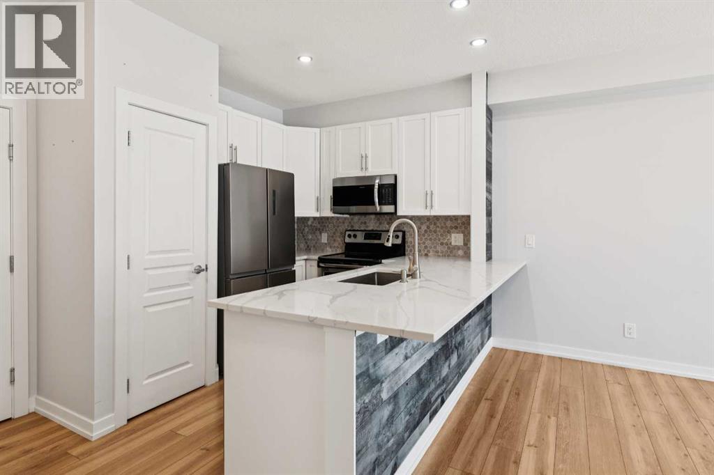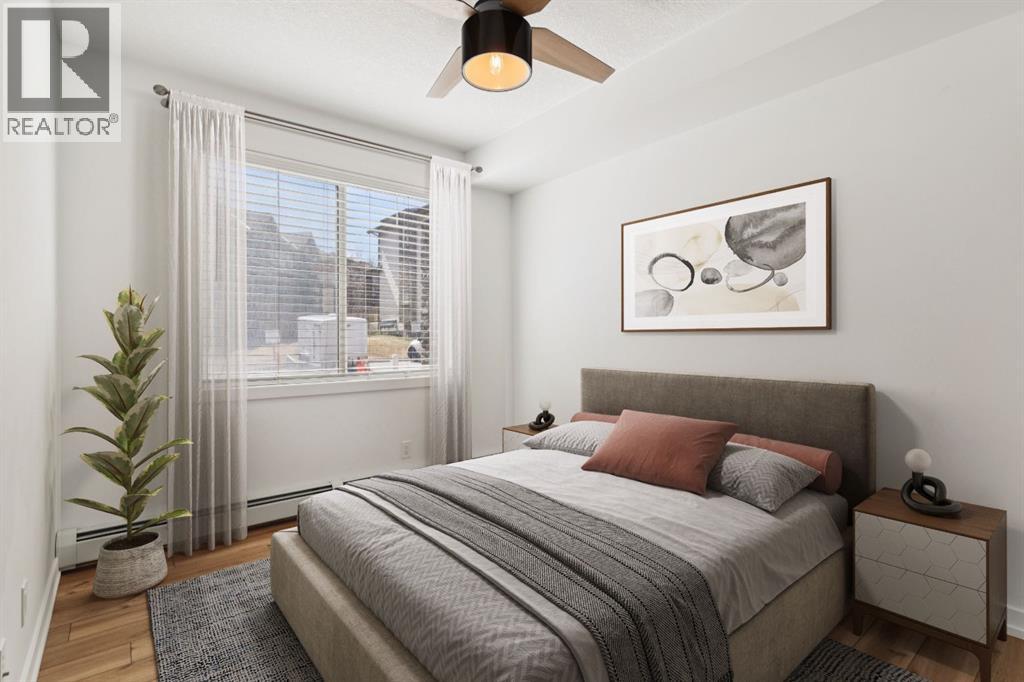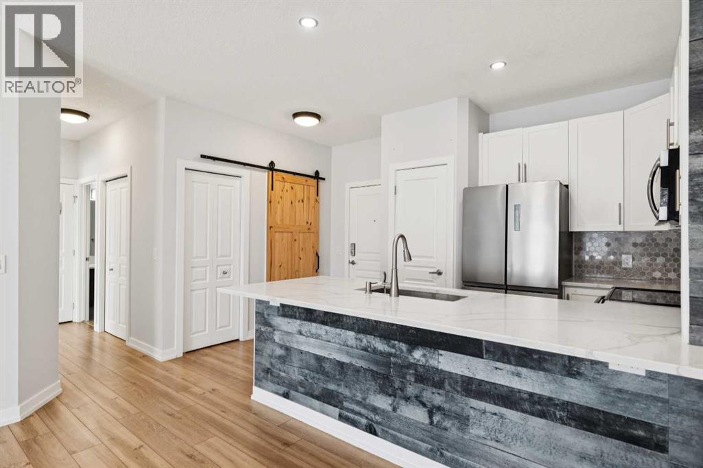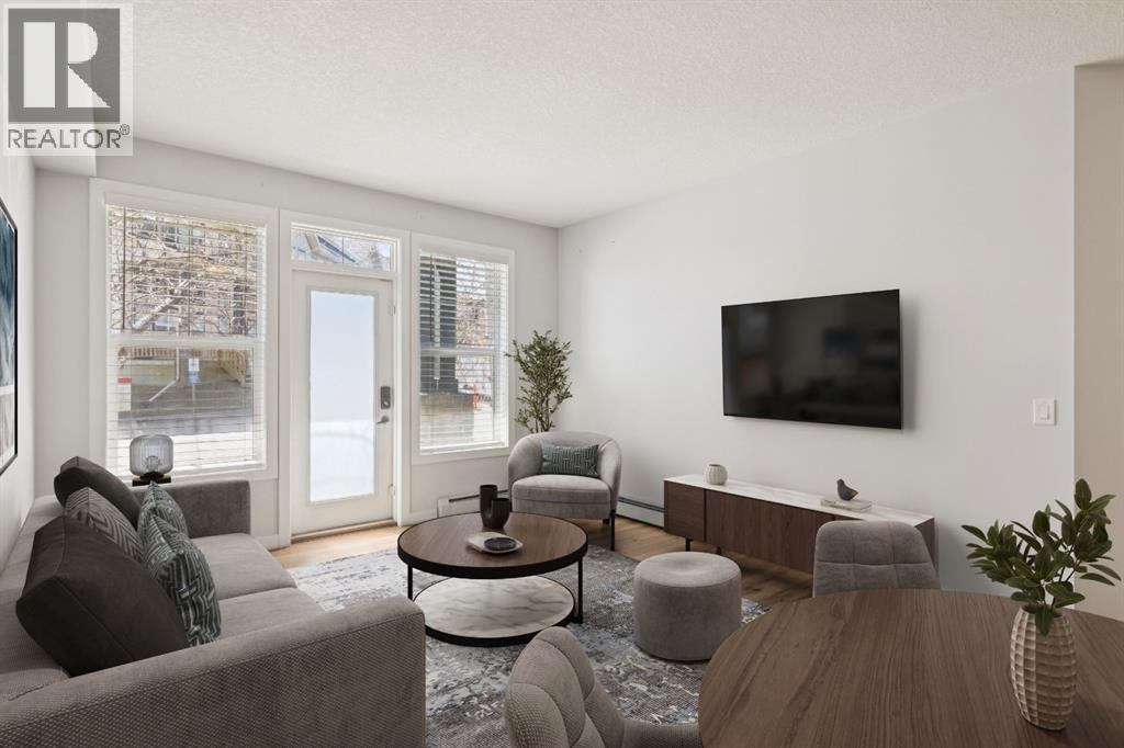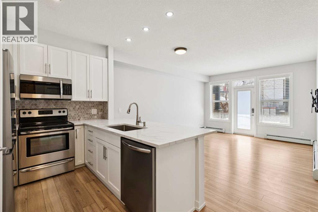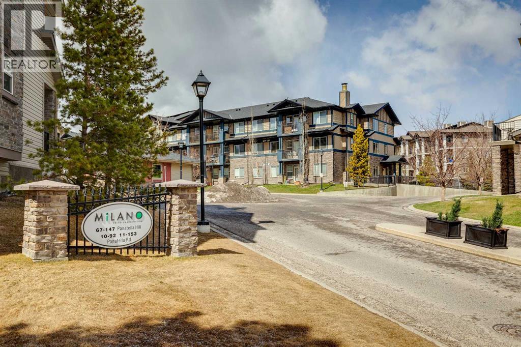 Welcome to Unit 112 - 10 Panatella Road NW. This inviting layout main floor unit really stands out in the highly sought-after Milano complex. Located on the ground floor, this beautifully maintained condo offers both style and functionality with thoughtful updates throughout.The kitchen is a true highlight, featuring sleek quartz countertops, crisp white cabinetry, and stainless steel appliances—perfect for both everyday living and entertaining. The open-concept design is enhanced by stunning flooring that flows seamlessly through the main living spaces, while the bathrooms are finished with durable tile.Natural light fills the unit, creating a warm and welcoming atmosphere. Step outside to your private patio, an ideal space to unwind, soak up the sun, or enjoy summer BBQs.The spacious primary bedroom includes a walk-in closet and a full ensuite, offering comfort and convenience. Additional features include in-suite laundry, ample storage, and a dedicated storage locker conveniently located next to your titled underground parking stall.Situated close to shopping, dining, transit, and everyday amenities, this home offers the perfect balance of comfort, style, and location—an exceptional opportunity for any buyer. (id:51989)