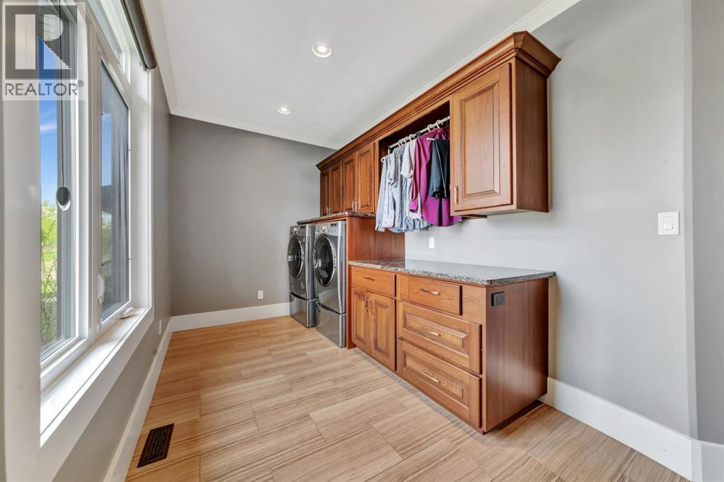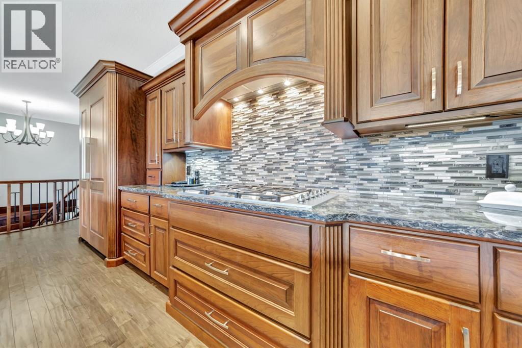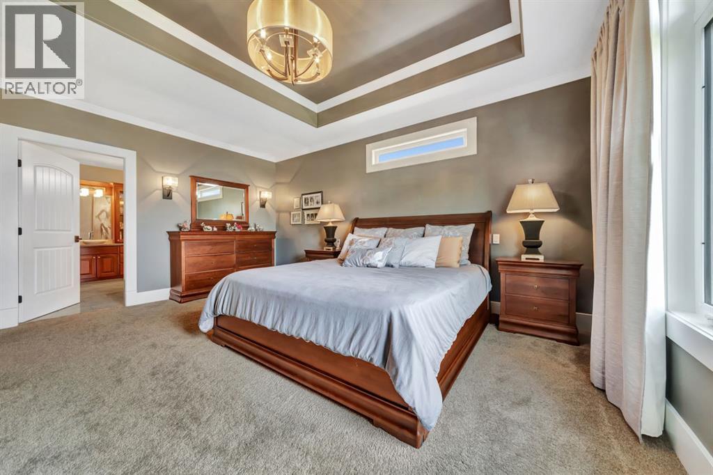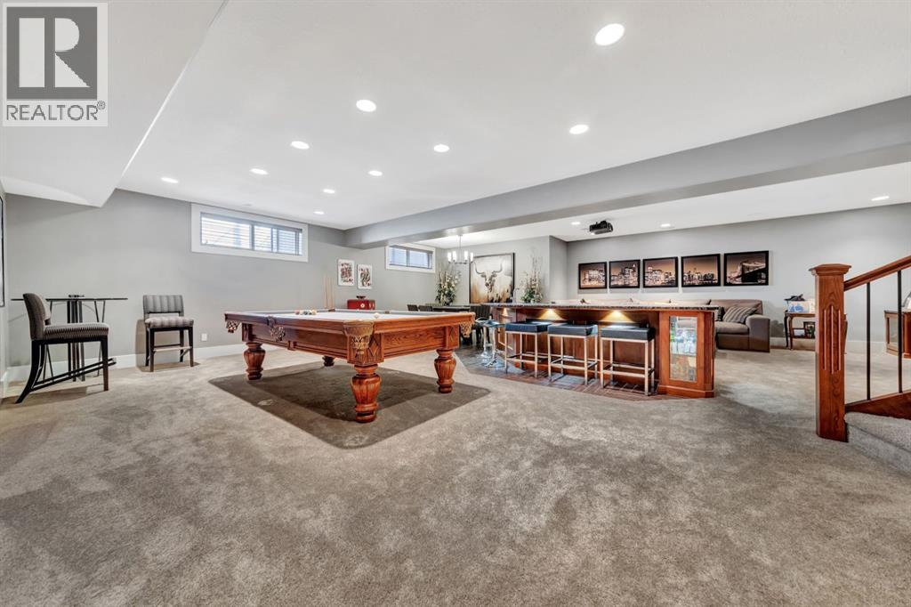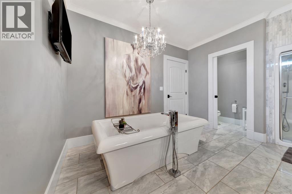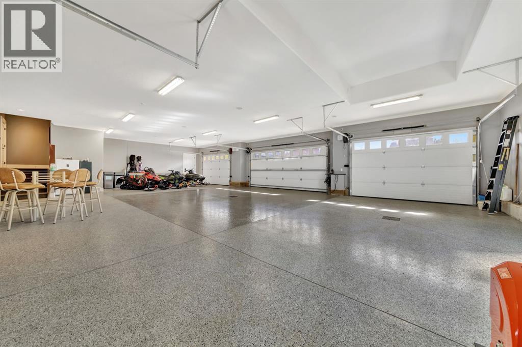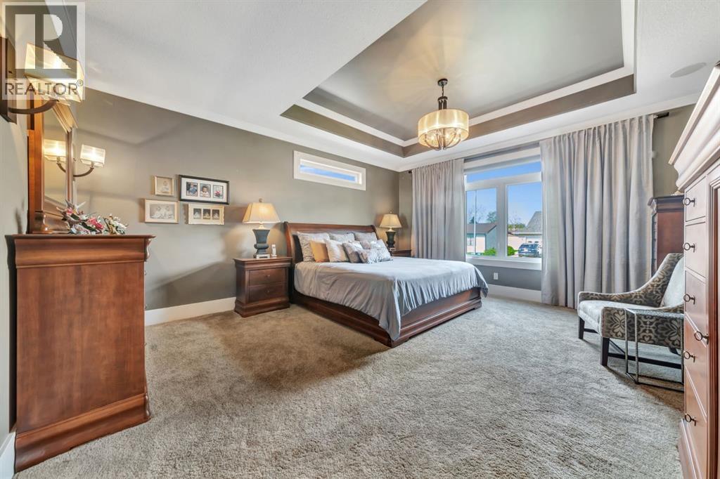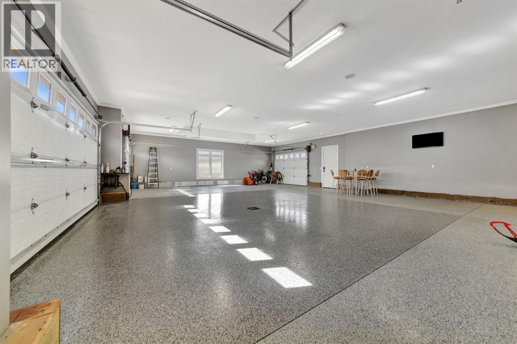 Discover the epitome of luxury living in this stunning residence, perfectly situated on a tranquil dead-end street. This beautifully crafted home combines elegance and comfort with exceptional custom details throughout. Upon entering, you’ll be welcomed by a light-filled, open-concept main floor that exudes sophistication. Custom craftsmanship is evident in every corner, from the intricate woodwork to the high-end finishes. Expansive windows fill the space with natural light, and the power blinds offer effortless privacy at the touch of a button. The gourmet kitchen is a chef’s paradise, featuring top-of-the-line Miele appliances, an oversized island, a gas stove, and a double oven. Whether hosting dinner parties or enjoying a quiet meal, the spacious dining area seamlessly flows from the kitchen, creating an inviting atmosphere for all occasions. Unwind in the elegant living room, where a cozy gas fireplace with exquisite stonework and a custom mantel serves as the focal point. The luxurious primary bedroom is a serene retreat, offering ample space, an open-concept walk-in closet with custom shelves and racks, and a sumptuous 5-piece ensuite. Pamper yourself with a jet and steam shower, a double vanity, a soaker tub, and heated tile floors for the ultimate spa-like experience. The main floor also boasts a spare bedroom, an office, a stylish 3-piece bathroom, and a large laundry room, all enhanced with central air for year-round comfort. Descend the custom spiral staircase to the lower level, where entertainment possibilities abound. A sprawling entertainment area awaits, complete with a large wet bar, a game space currently set up with a pool table, and a theatre room with a dedicated gaming table area. The basement also features an additional bedroom and a luxurious 4-piece bathroom with in-floor heating. An unfinished portion of the basement offers potential for further customization, including the addition of two more bedrooms or a private living suite for a car etaker, complete with laundry hookups.Car enthusiasts will revel in the oversized garage, designed with a drive-through bay, epoxy floors, floor drains, and a convenient 2-piece bathroom with in-floor heating. With space for a car hoist and four garage doors (one at the front and three at the back), the garage offers unparalleled versatility. The property provides abundant parking with a long driveway in the front and a spacious pad at the back, all finished with elegant stamped concrete and exposed aggregate.The meticulously designed exterior requires minimal maintenance, featuring lush artificial lawns in the front and back, a durable vinyl fence, and a composite deck with sleek glass railings. The covered back deck includes two gas hookups, ideal for outdoor cooking and entertaining, and a delightful 6-hole putting green for endless enjoyment. Don’t miss the opportunity to make this exceptional property your own. Schedule a private showing today! - Check out the 3D virtual tour. (id:51989)