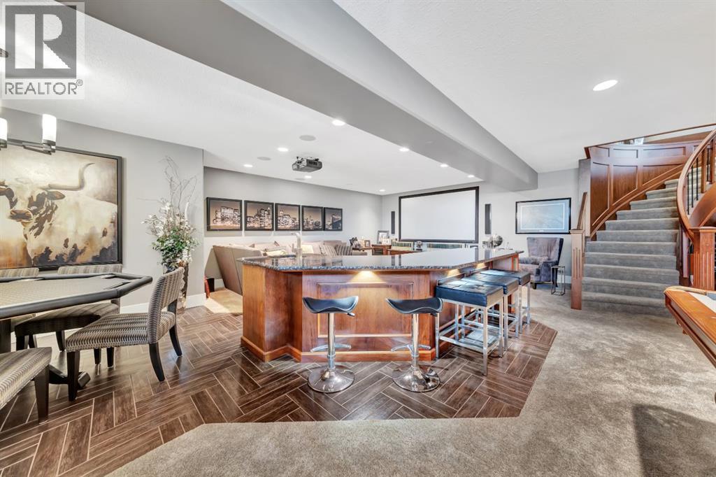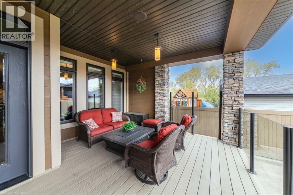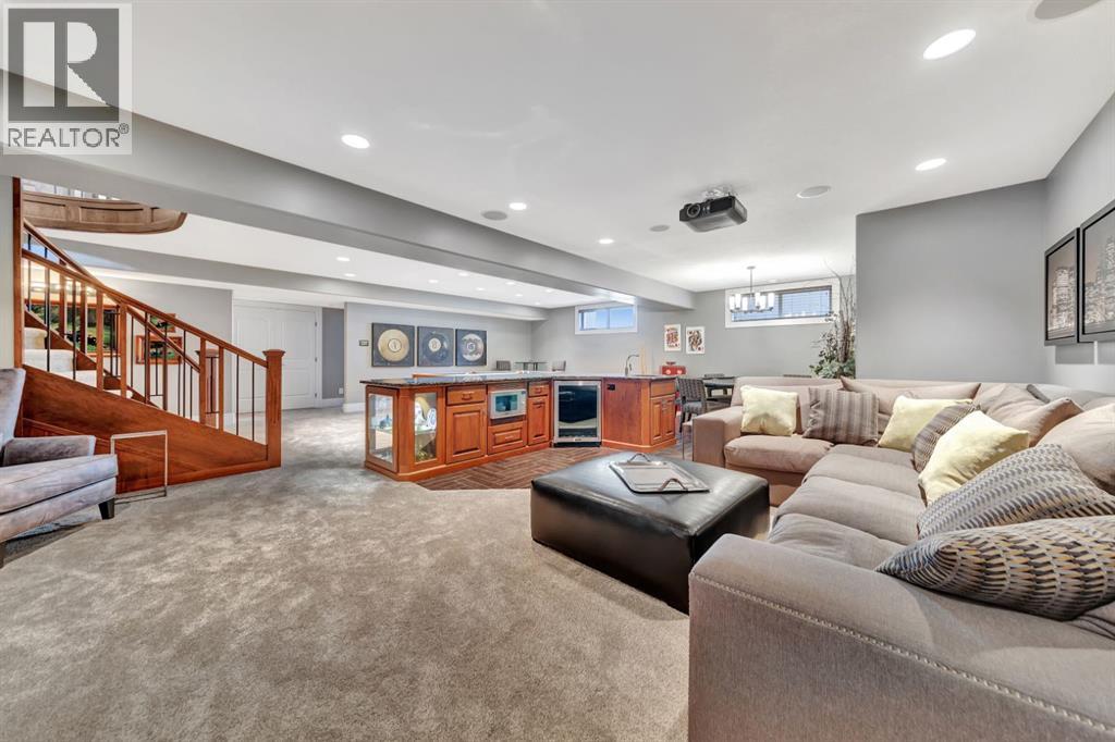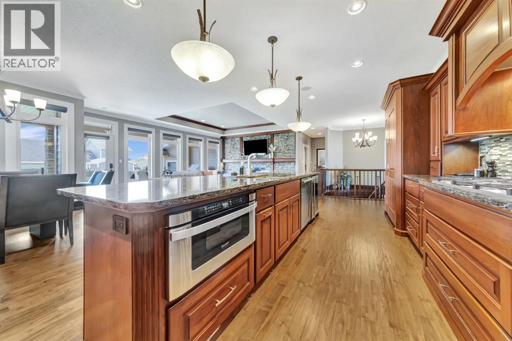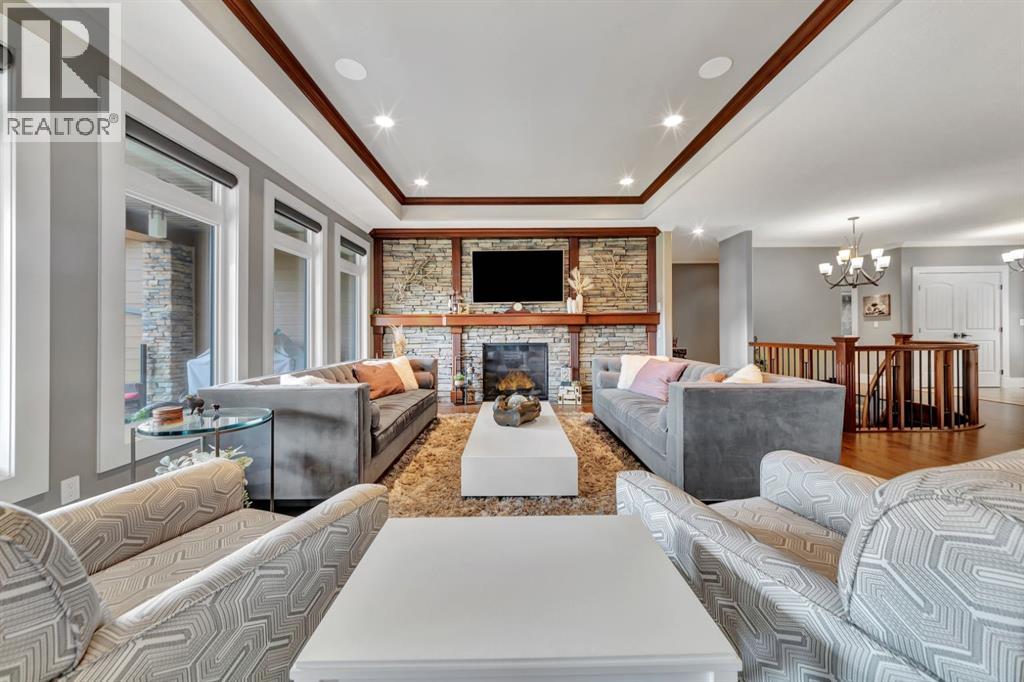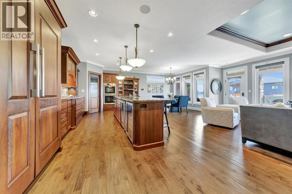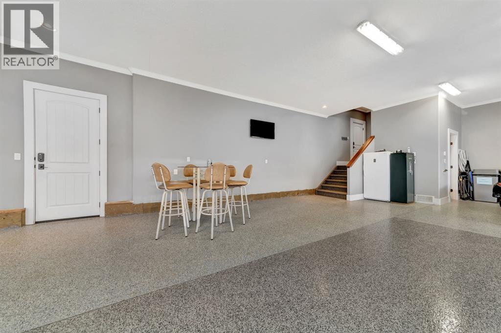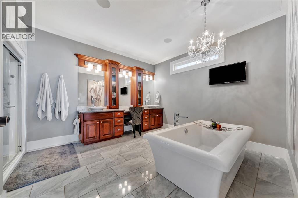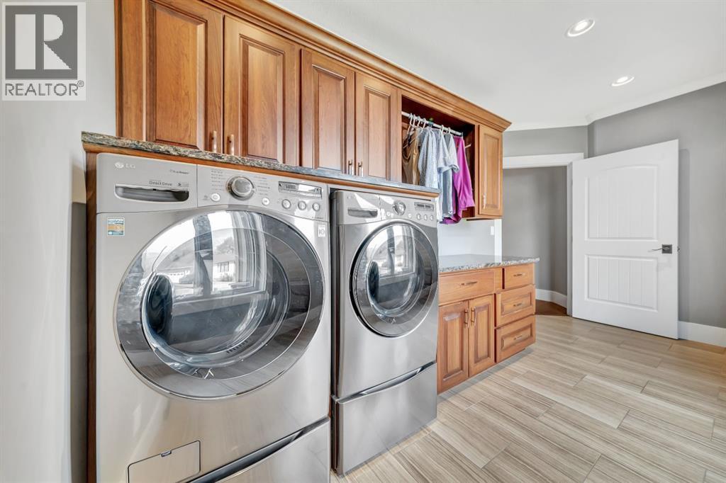 Discover the epitome of luxury living in this stunning residence, perfectly situated on a tranquil dead-end street. This beautifully crafted home combines elegance and comfort with exceptional custom details throughout. Upon entering, you’ll be welcomed by a light-filled, open-concept main floor that exudes sophistication. Custom craftsmanship is evident in every corner, from the intricate woodwork to the high-end finishes. Expansive windows fill the space with natural light, and the power blinds offer effortless privacy at the touch of a button. The gourmet kitchen is a chef’s paradise, featuring top-of-the-line Miele appliances, an oversized island, a gas stove, and a double oven. Whether hosting dinner parties or enjoying a quiet meal, the spacious dining area seamlessly flows from the kitchen, creating an inviting atmosphere for all occasions. Unwind in the elegant living room, where a cozy gas fireplace with exquisite stonework and a custom mantel serves as the focal point. The luxurious primary bedroom is a serene retreat, offering ample space, an open-concept walk-in closet with custom shelves and racks, and a sumptuous 5-piece ensuite. Pamper yourself with a jet and steam shower, a double vanity, a soaker tub, and heated tile floors for the ultimate spa-like experience. The main floor also boasts a spare bedroom, an office, a stylish 3-piece bathroom, and a large laundry room, all enhanced with central air for year-round comfort. Descend the custom spiral staircase to the lower level, where entertainment possibilities abound. A sprawling entertainment area awaits, complete with a large wet bar, a game space currently set up with a pool table, and a theatre room with a dedicated gaming table area. The basement also features an additional bedroom and a luxurious 4-piece bathroom with in-floor heating. An unfinished portion of the basement offers potential for further customization, including the addition of two more bedrooms or a private living suite for a car etaker, complete with laundry hookups.Car enthusiasts will revel in the oversized garage, designed with a drive-through bay, epoxy floors, floor drains, and a convenient 2-piece bathroom with in-floor heating. With space for a car hoist and four garage doors (one at the front and three at the back), the garage offers unparalleled versatility. The property provides abundant parking with a long driveway in the front and a spacious pad at the back, all finished with elegant stamped concrete and exposed aggregate.The meticulously designed exterior requires minimal maintenance, featuring lush artificial lawns in the front and back, a durable vinyl fence, and a composite deck with sleek glass railings. The covered back deck includes two gas hookups, ideal for outdoor cooking and entertaining, and a delightful 6-hole putting green for endless enjoyment. Don’t miss the opportunity to make this exceptional property your own. Schedule a private showing today! - Check out the 3D virtual tour. (id:51989)