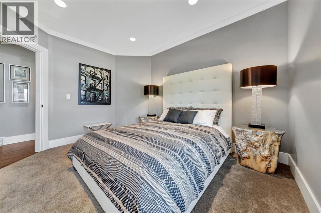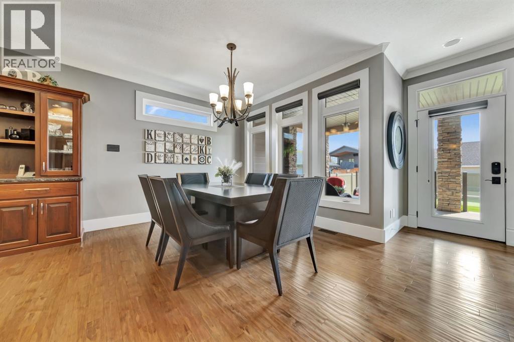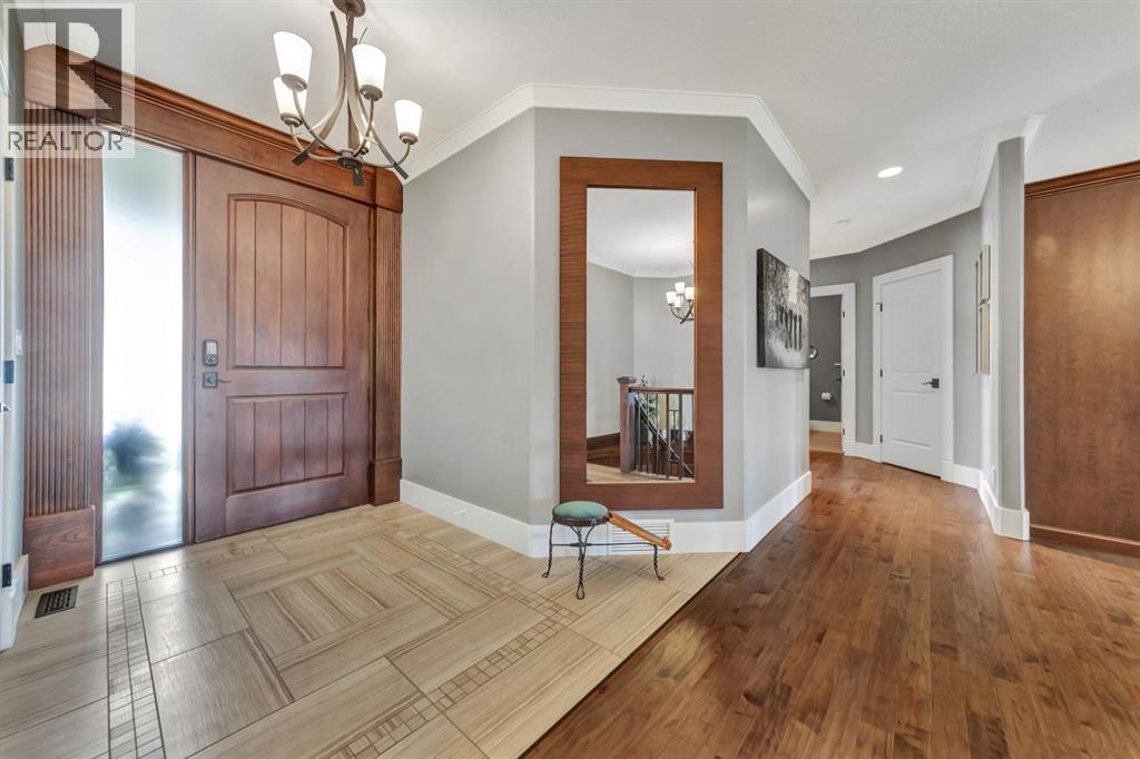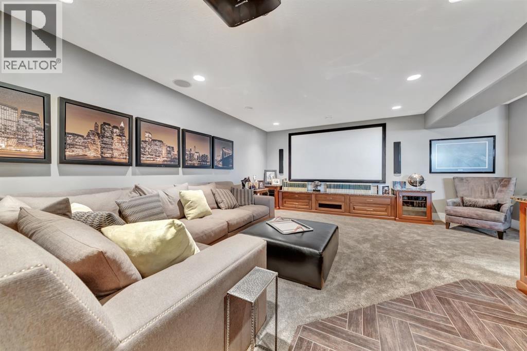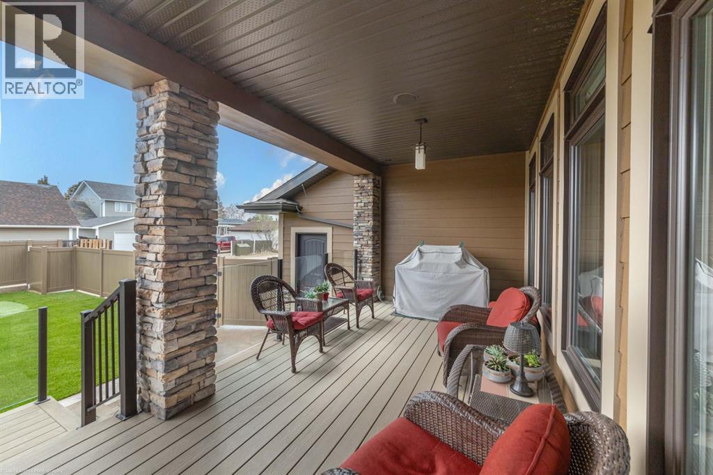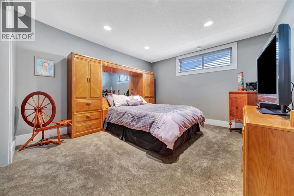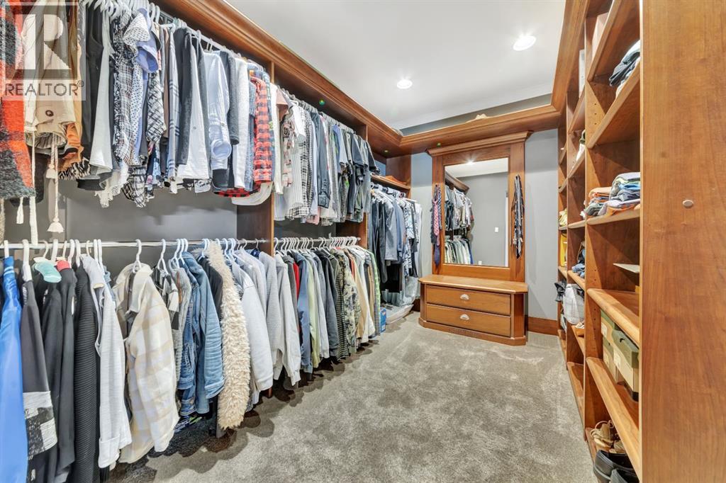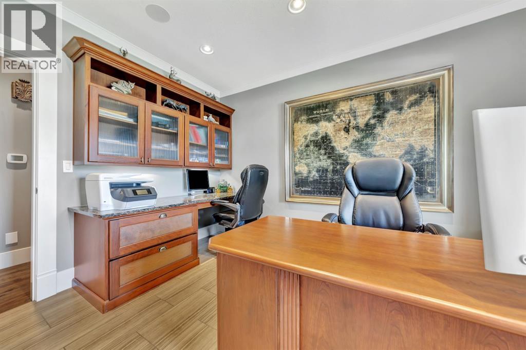 Discover the epitome of luxury living in this stunning residence, perfectly situated on a tranquil dead-end street. This beautifully crafted home combines elegance and comfort with exceptional custom details throughout. Upon entering, you’ll be welcomed by a light-filled, open-concept main floor that exudes sophistication. Custom craftsmanship is evident in every corner, from the intricate woodwork to the high-end finishes. Expansive windows fill the space with natural light, and the power blinds offer effortless privacy at the touch of a button. The gourmet kitchen is a chef’s paradise, featuring top-of-the-line Miele appliances, an oversized island, a gas stove, and a double oven. Whether hosting dinner parties or enjoying a quiet meal, the spacious dining area seamlessly flows from the kitchen, creating an inviting atmosphere for all occasions. Unwind in the elegant living room, where a cozy gas fireplace with exquisite stonework and a custom mantel serves as the focal point. The luxurious primary bedroom is a serene retreat, offering ample space, an open-concept walk-in closet with custom shelves and racks, and a sumptuous 5-piece ensuite. Pamper yourself with a jet and steam shower, a double vanity, a soaker tub, and heated tile floors for the ultimate spa-like experience. The main floor also boasts a spare bedroom, an office, a stylish 3-piece bathroom, and a large laundry room, all enhanced with central air for year-round comfort. Descend the custom spiral staircase to the lower level, where entertainment possibilities abound. A sprawling entertainment area awaits, complete with a large wet bar, a game space currently set up with a pool table, and a theatre room with a dedicated gaming table area. The basement also features an additional bedroom and a luxurious 4-piece bathroom with in-floor heating. An unfinished portion of the basement offers potential for further customization, including the addition of two more bedrooms or a private living suite for a car etaker, complete with laundry hookups.Car enthusiasts will revel in the oversized garage, designed with a drive-through bay, epoxy floors, floor drains, and a convenient 2-piece bathroom with in-floor heating. With space for a car hoist and four garage doors (one at the front and three at the back), the garage offers unparalleled versatility. The property provides abundant parking with a long driveway in the front and a spacious pad at the back, all finished with elegant stamped concrete and exposed aggregate.The meticulously designed exterior requires minimal maintenance, featuring lush artificial lawns in the front and back, a durable vinyl fence, and a composite deck with sleek glass railings. The covered back deck includes two gas hookups, ideal for outdoor cooking and entertaining, and a delightful 6-hole putting green for endless enjoyment. Don’t miss the opportunity to make this exceptional property your own. Schedule a private showing today! - Check out the 3D virtual tour. (id:51989)
