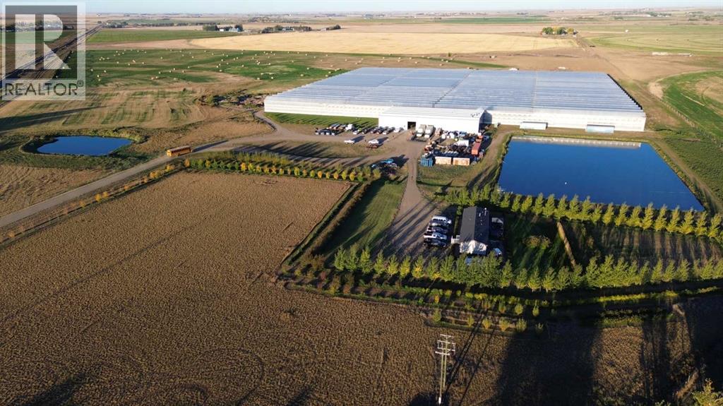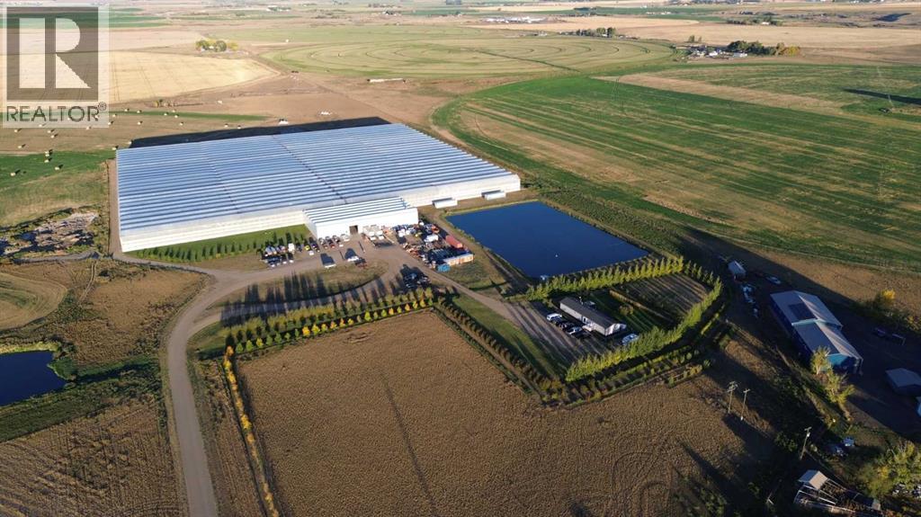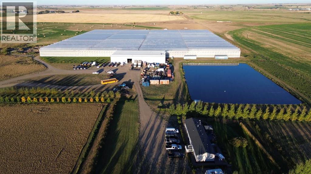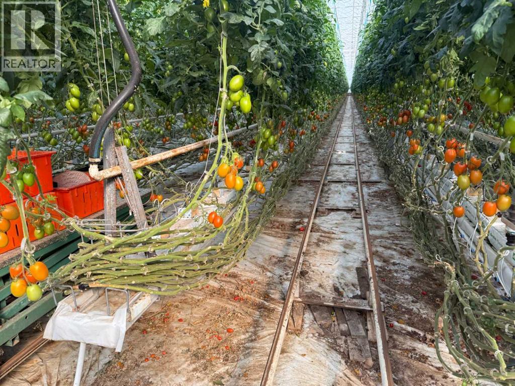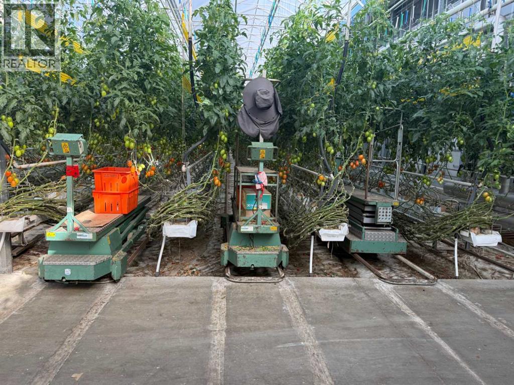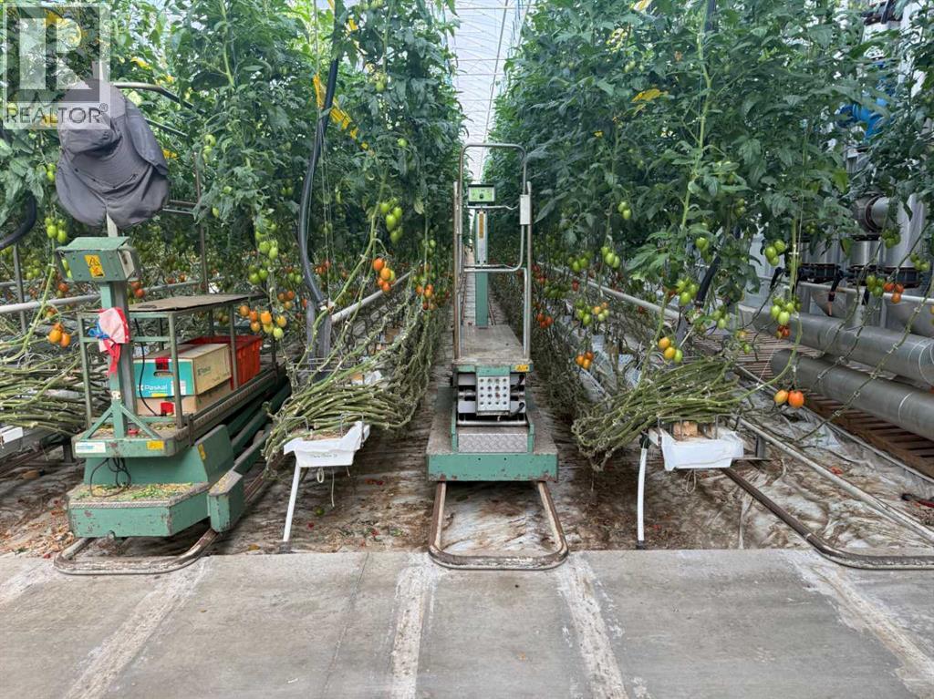 Modern 10-Acre Greenhouse Facility on 93 Irrigated Acres – Near Medicine Hat, Alberta. Outstanding opportunity to acquire a modern, large-scale greenhouse operation located just 15km from Medicine Hat. This 93-acre irrigated property is zoned Horticulture, offering significant room for expansion and future development. The centerpiece of the property is a state-of-the-art 10-acre (419,328 sq. ft.) Venlo-style poly greenhouse featuring 26 bays (24’ x 672’ x 21’ gutter height) designed for efficient, high-output production. The operation is supported by an 84’ x 170’ Venlo shop that houses the boiler and irrigation rooms (separated by glass walls) and includes a fully air-conditioned office, accessible washrooms, lunchroom, and mezzanine—all built to commercial code standards. A 17’ x 11’ walk-in cooler provides additional storage capacity. The water management system is designed for sustainability and efficiency. Rainwater is collected from the greenhouse roof and directed to a 5,000,000-gallon dugout, which is replenished via the SMRID system during summer months to ensure ample supply through the winter. Heating is provided by two 800 HP Crone boilers with Zantingh burners, distributing heat through an integrated pipe and rail system that doubles as transport for electric and hand carts. Key operational highlights include:-CO2 capture system improving plant growth and heat efficiency-Central inflation system for optimal insulation-Argus Titan climate and irrigation control software with 24-hour support-Backup diesel generator with automatic switchover-Fog cooling system for summer operation-Two 41,000-gallon water silos (fresh and recirculated) with advanced filtration-Electric, hand, and maintenance carts included. The property also features a modern Valley pivot with pumping unit irrigating approximately 40 acres of hayland, and a wheel line with PTO pump servicing an additional 10 acres. A 2007 mobile home (20’ x 76’, 1,520 sq. ft.) provides comfortable on-sit e accommodation with 3 bedrooms, 2 bathrooms, central air conditioning, and a 14’ x 24’ deck—ideal for staff housing or management use. Currently employing approximately 35 workers through the Foreign Worker Program, the operation packages its produce through Redhat Co-op in Redcliff, located just 22 km away. The property is easily accessible, with a paved road within 800 meters of the entrance. This well-maintained and fully equipped facility represents a rare opportunity to acquire a turnkey commercial horticultural enterprise with modern infrastructure, expansion potential, and excellent logistics in a prime Southern Alberta location. (id:51989)