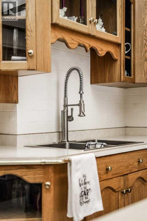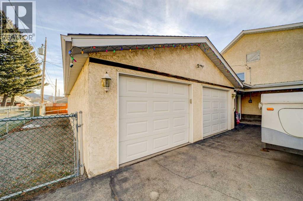 With five bedrooms and two and a half baths in the main house, as well as one bedroom and one bathroom in the fully legal suite, this home offers the flexibility today’s buyers are looking for. Whether you are looking for multigenerational living, creating space for adult children, or generating rental income on site, the layout supports any family without compromise. The legal suite includes its own private entrance, full kitchen, living area, spacious bedroom, modern bathroom, and separate laundry, providing a private and functional space that feels complete and independent. Upstairs, the main living area is designed for gathering. The kitchen, dining room, and living room are connected in a way that keeps everyone together while still giving each space definition. A gas fireplace anchors the living room, and large windows frame mountain views while bringing in natural light throughout the day. The home carries character from the moment you enter. The yard is one of the standout features of this property. Set on a rare 12,000 square foot in town lot, the outdoor space is beautifully landscaped with mature trees, garden areas, underground sprinklers, and a pond that adds both privacy and calm. A pergola and fire pit area create a natural gathering space, while the fully fenced yard provides room to play, host, and unwind. A double detached garage, ample parking, and a 266 square foot breezeway that works well as a gym, hobby room, or gear storage add to the overall functionality of the property. Located just steps from the Crowsnest River, the community swimming pool, local shops, and within walking distance to a local brewery, this home is well connected to everyday Blairmore life. Views of Turtle Mountain and Pass Powderkeg Ski Hill complete the setting, with year round recreation close at hand. (id:51989)
