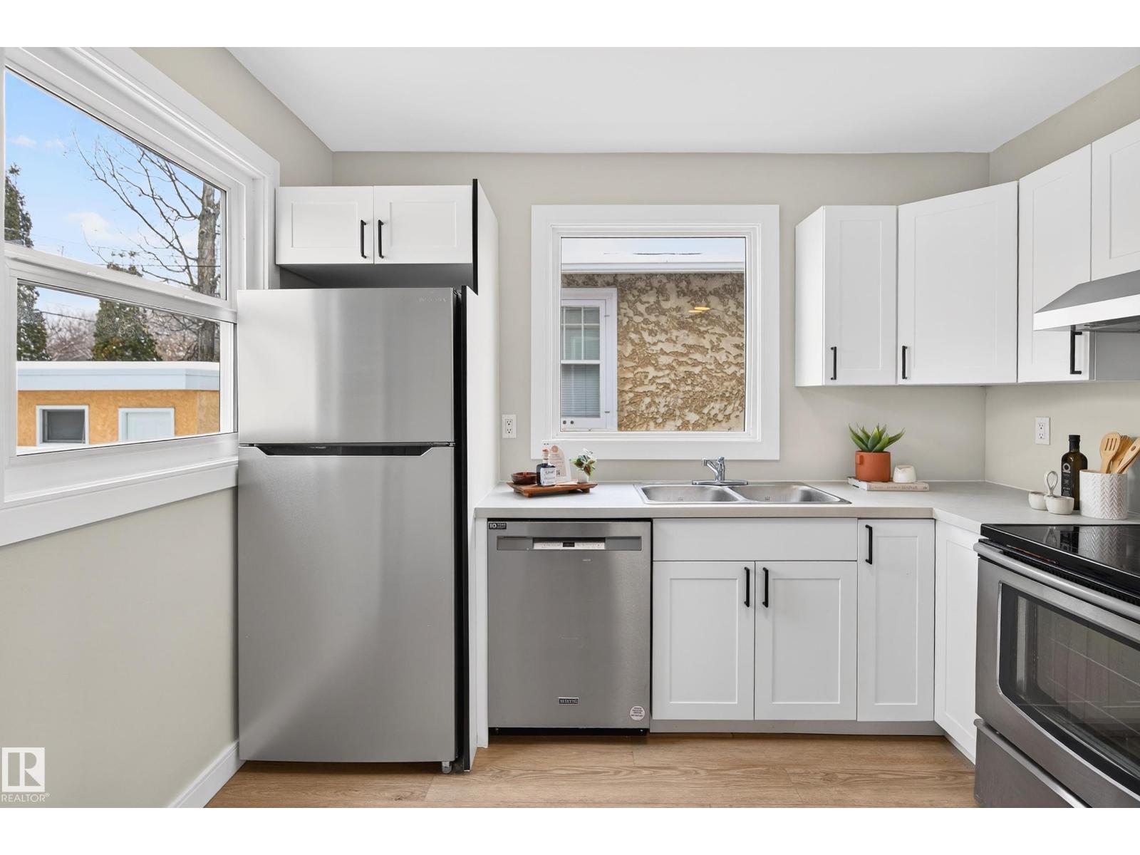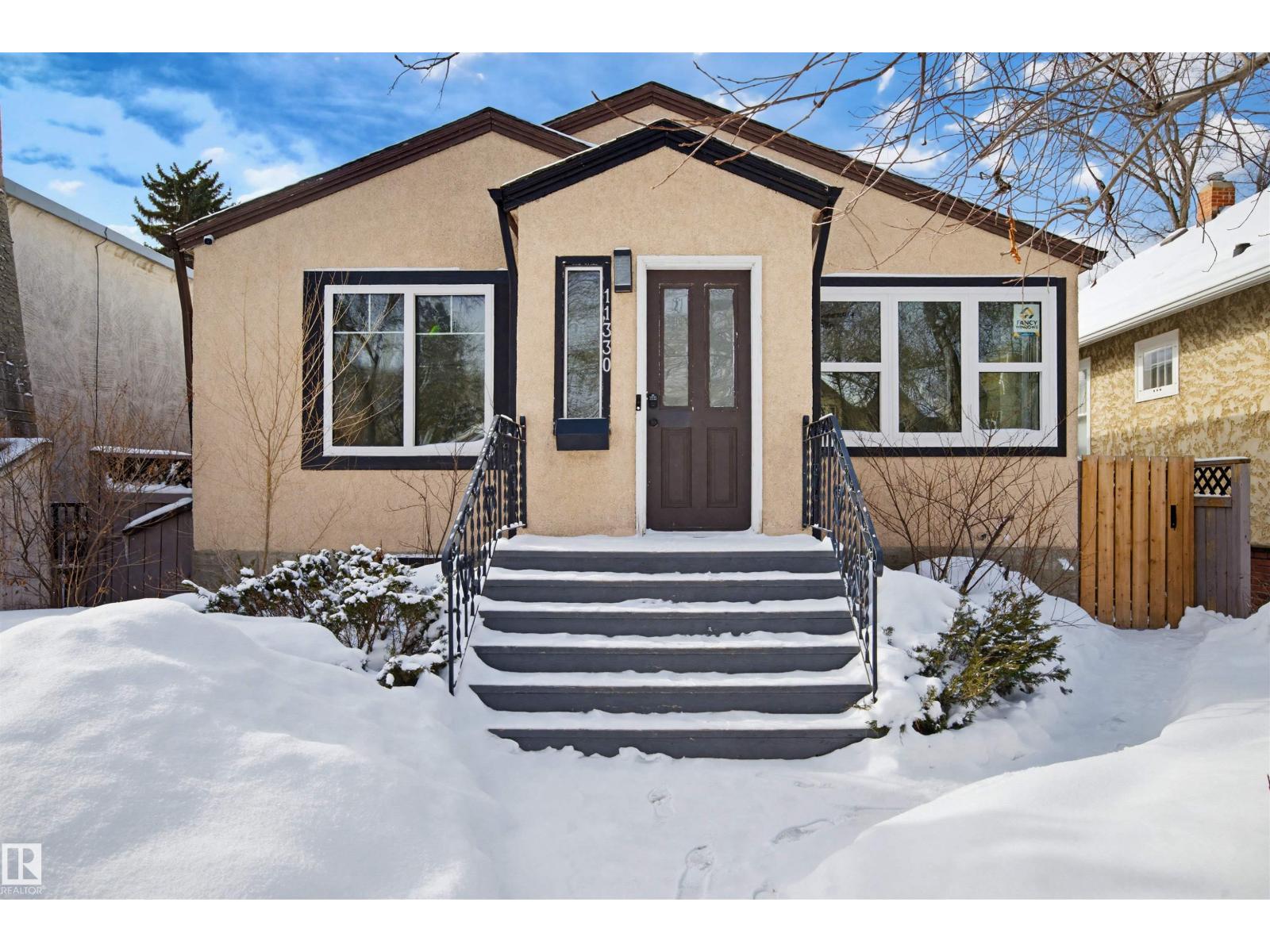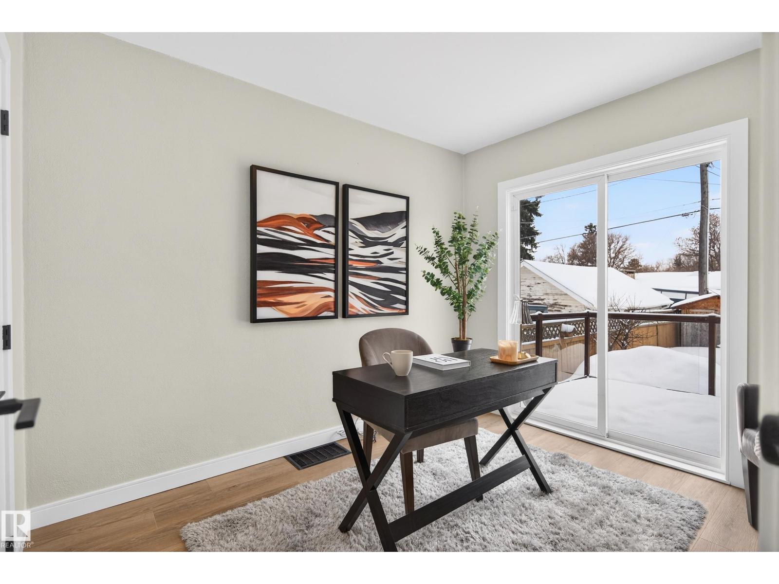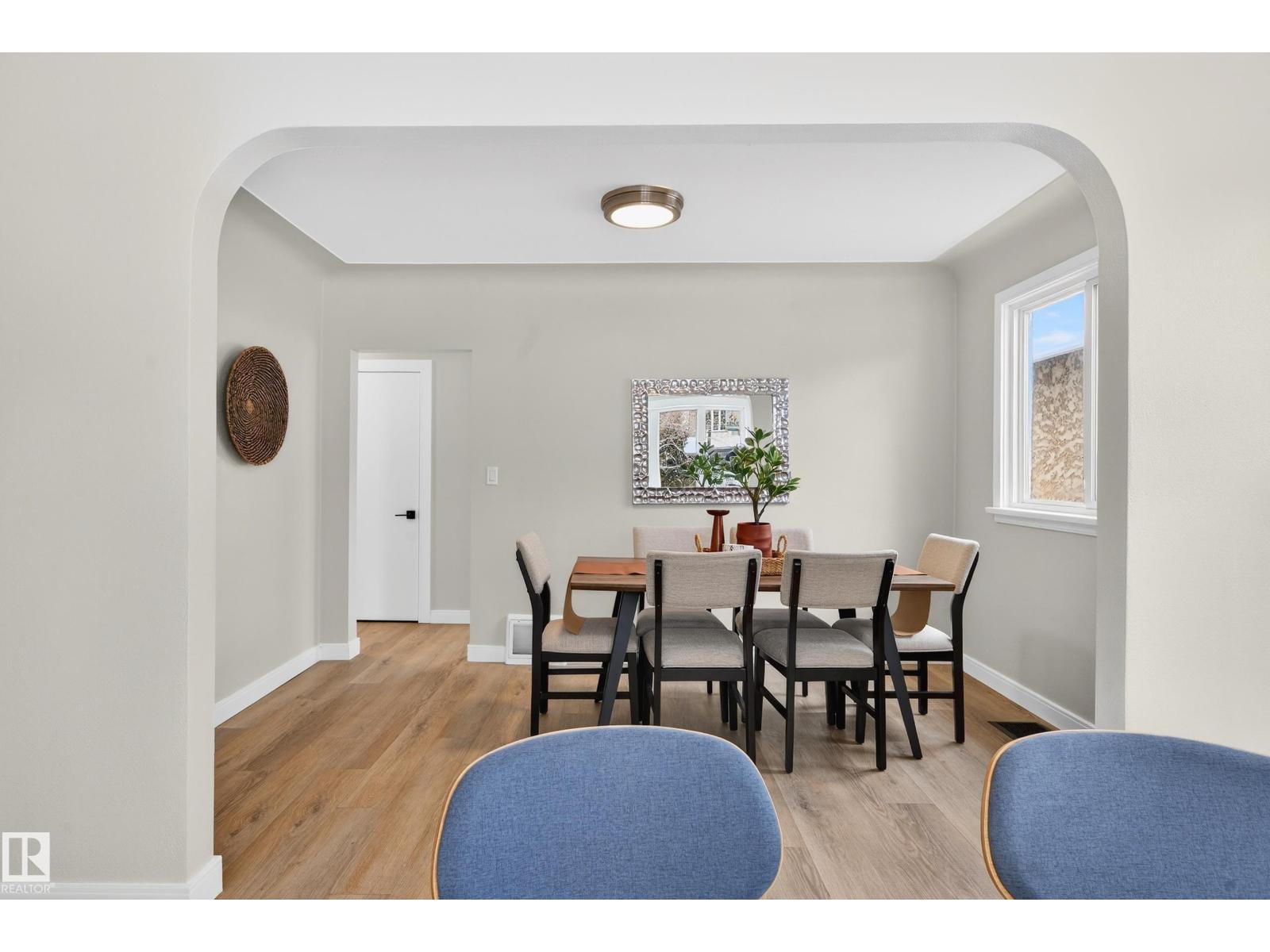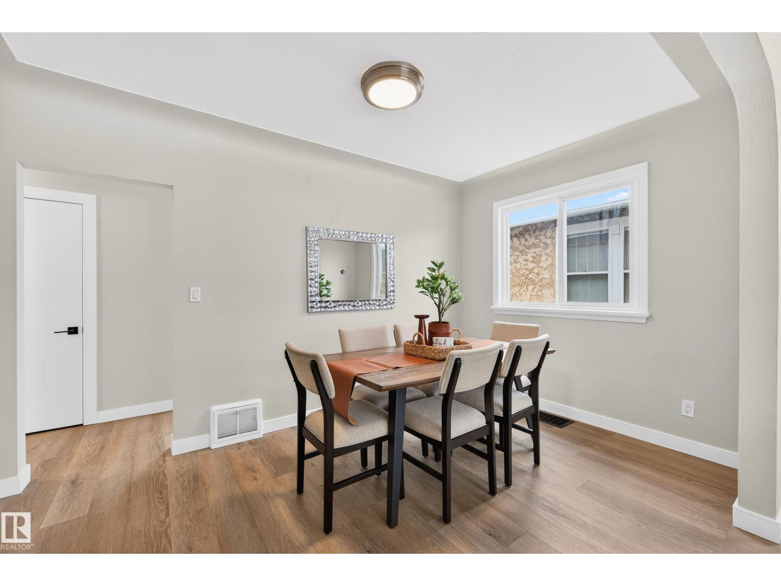 Beautifully renovated bungalow in Bellevue, perfectly positioned near the Highlands district and River Valley. This move-in ready home offers 3 bedrooms, 2 bathrooms, and 941 sqft above grade plus a fully finished basement with separate entrance and excellent suite potential. The main floor features large windows that fill the home with natural light, new vinyl plank flooring, a bright modern kitchen, dedicated dining area, and a cozy electric fireplace in the living room. Two bedrooms and an updated bathroom complete the main level, with patio doors from the second bedroom leading to the west-facing backyard - perfect for a home office or flex space. The basement includes a living room, bedroom, full bathroom, and a small office or yoga room. Major upgrades include windows, electrical, furnace (2021), hot water tank (2020), and shingles (2015). Located just minutes from the River Valley, Ada Boulevard, Highlands Golf Club, Concordia University, parks, cafés, and downtown. (id:51989)