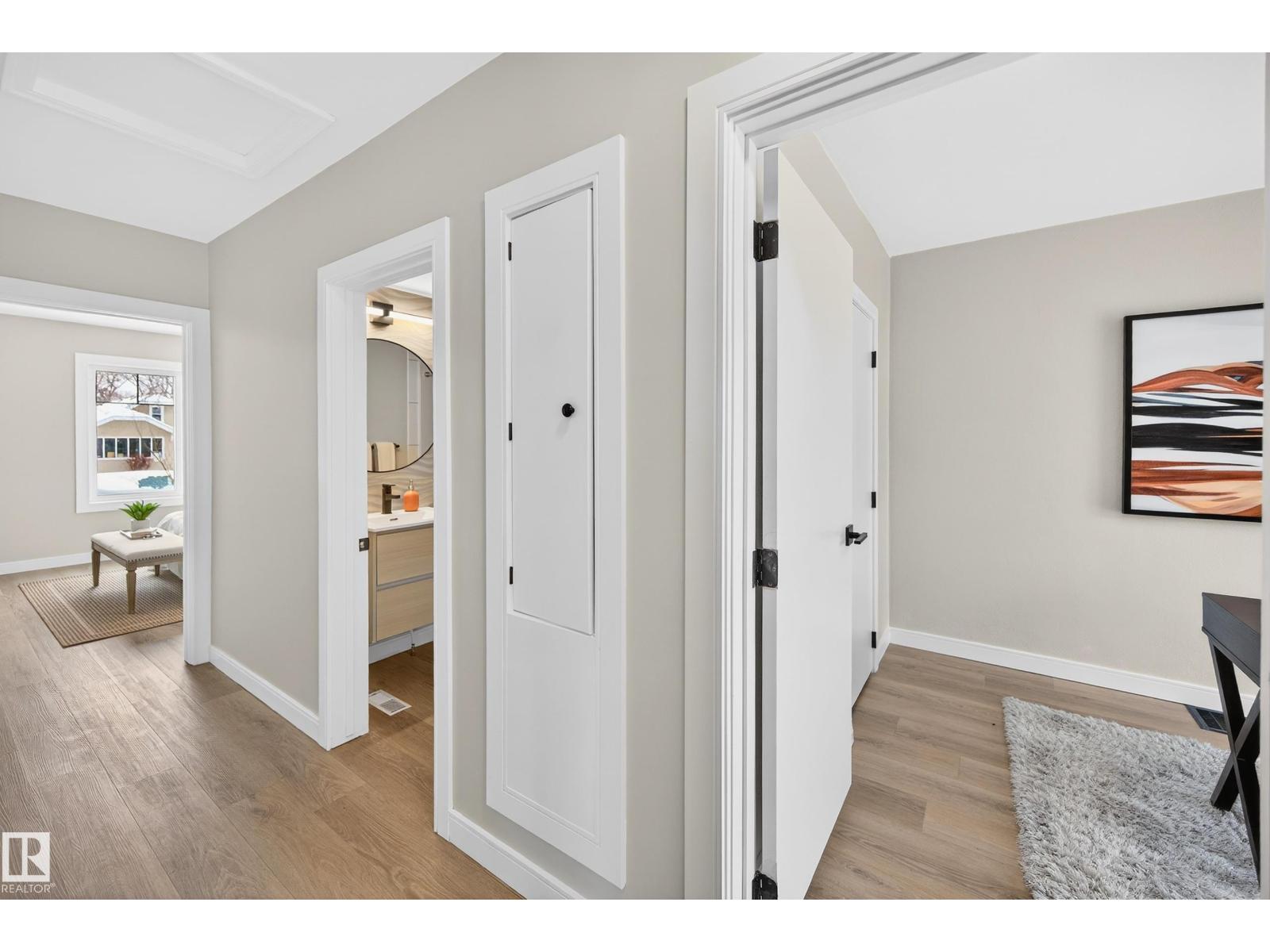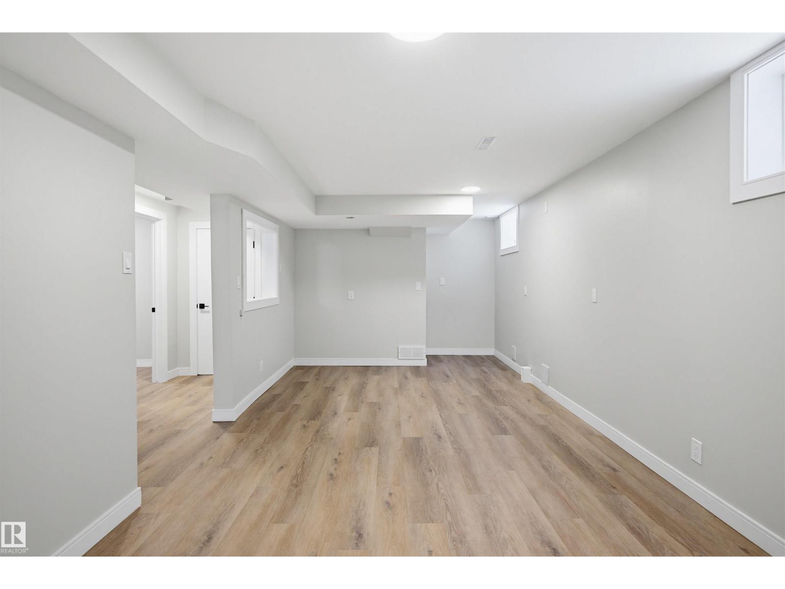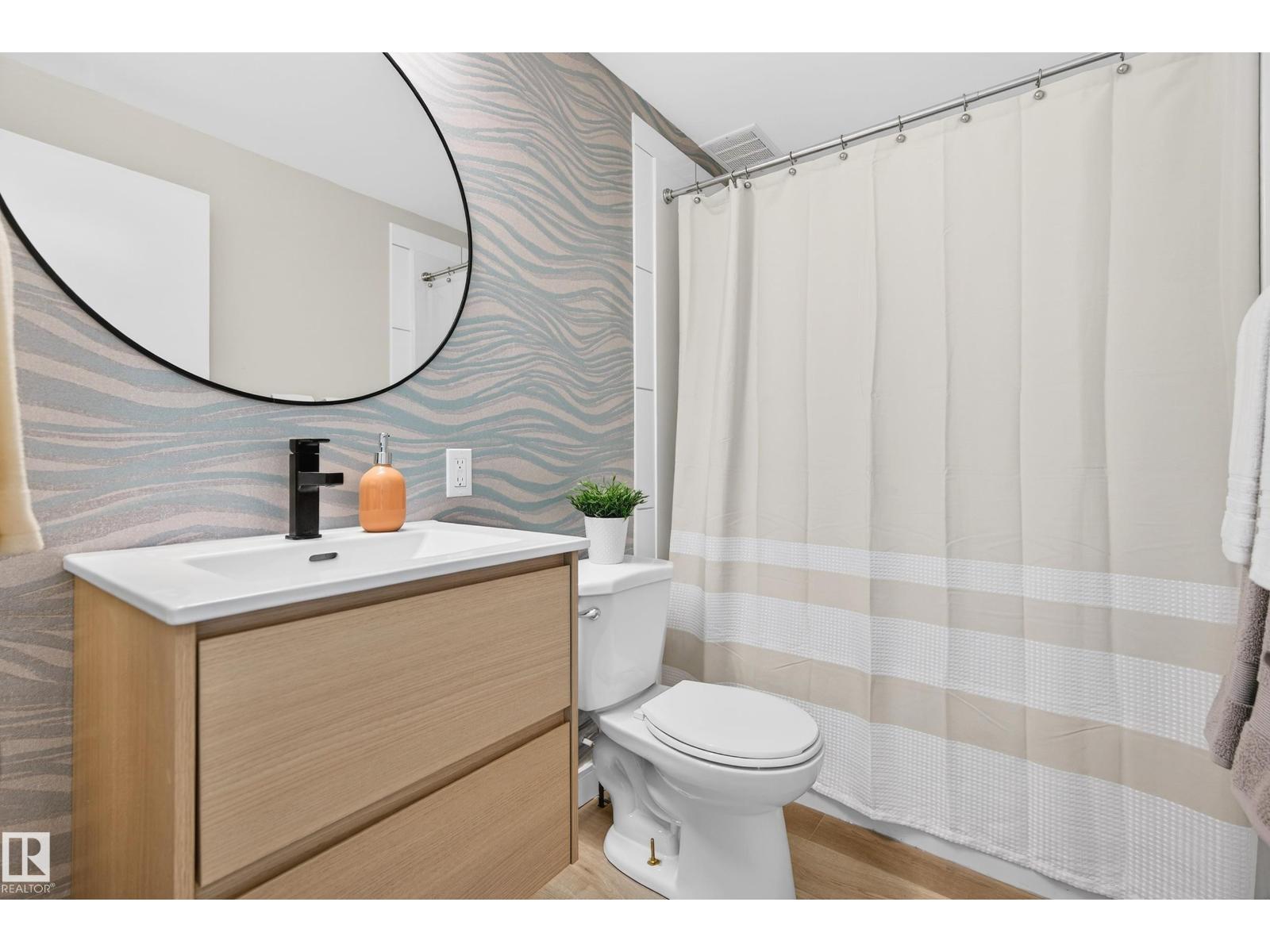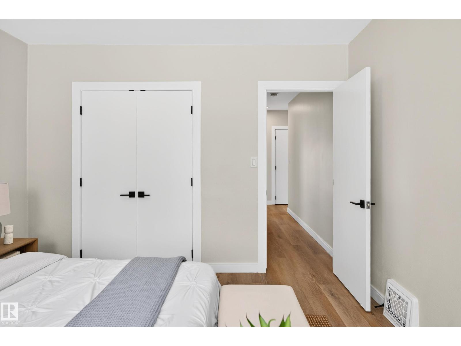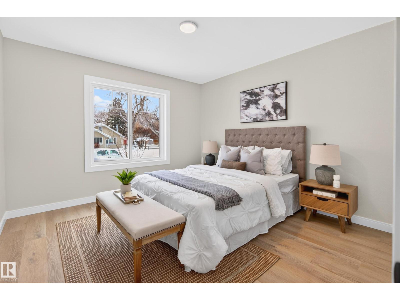 Beautifully renovated bungalow in Bellevue, perfectly positioned near the Highlands district and River Valley. This move-in ready home offers 3 bedrooms, 2 bathrooms, and 941 sqft above grade plus a fully finished basement with separate entrance and excellent suite potential. The main floor features large windows that fill the home with natural light, new vinyl plank flooring, a bright modern kitchen, dedicated dining area, and a cozy electric fireplace in the living room. Two bedrooms and an updated bathroom complete the main level, with patio doors from the second bedroom leading to the west-facing backyard - perfect for a home office or flex space. The basement includes a living room, bedroom, full bathroom, and a small office or yoga room. Major upgrades include windows, electrical, furnace (2021), hot water tank (2020), and shingles (2015). Located just minutes from the River Valley, Ada Boulevard, Highlands Golf Club, Concordia University, parks, cafés, and downtown. (id:51989)