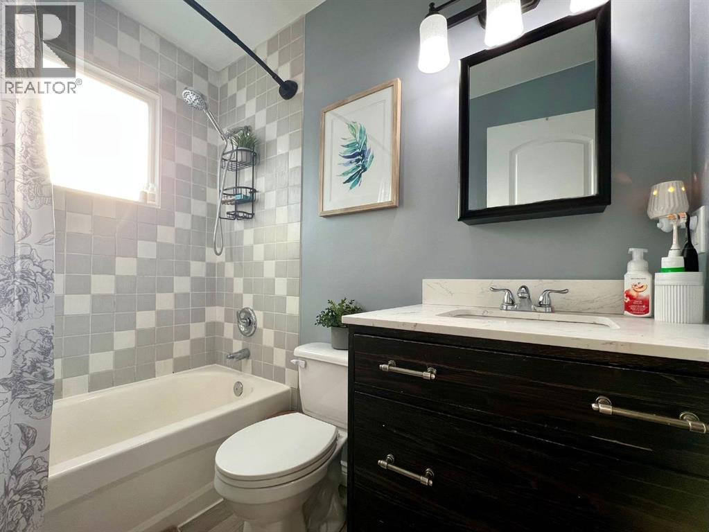 Welcome to this charming bungalow located in the desirable Mountview neighbourhood.This well-maintained home offers thoughtful updates where it matters most, including newer windows, roof, and hot water tank, providing peace of mind and long-term value for the next owner.The main floor features a bright and inviting layout filled with natural light. The kitchen showcases classic white cabinetry, creating a timeless and cheerful space that feels fresh and welcoming. The home carries a warm, cozy atmosphere throughout, making it easy to picture everyday living here.You’ll find three comfortable bedrooms on the main floor, along with a beautifully maintained 4-piece bathroom featuring stylish tile work that adds personality while remaining clean and functional.The fully developed basement offers excellent additional living space, featuring a fourth bedroom and a second bathroom that is already finished with adorable character and charm. The lower level also provides plenty of open space for recreation, family living, or entertaining.Outside, the property truly shines with a massive yard offering endless possibilities… whether you’re dreaming of gardening, hosting gatherings, or simply enjoying extra outdoor space. Large yards like this are becoming increasingly rare in established neighbourhoods.Mountview is a sought-after community known for its mature trees, quiet streets, and convenient access to schools, parks, and amenities, making it an excellent option for families, first-time buyers, or investors alike. (id:51989)