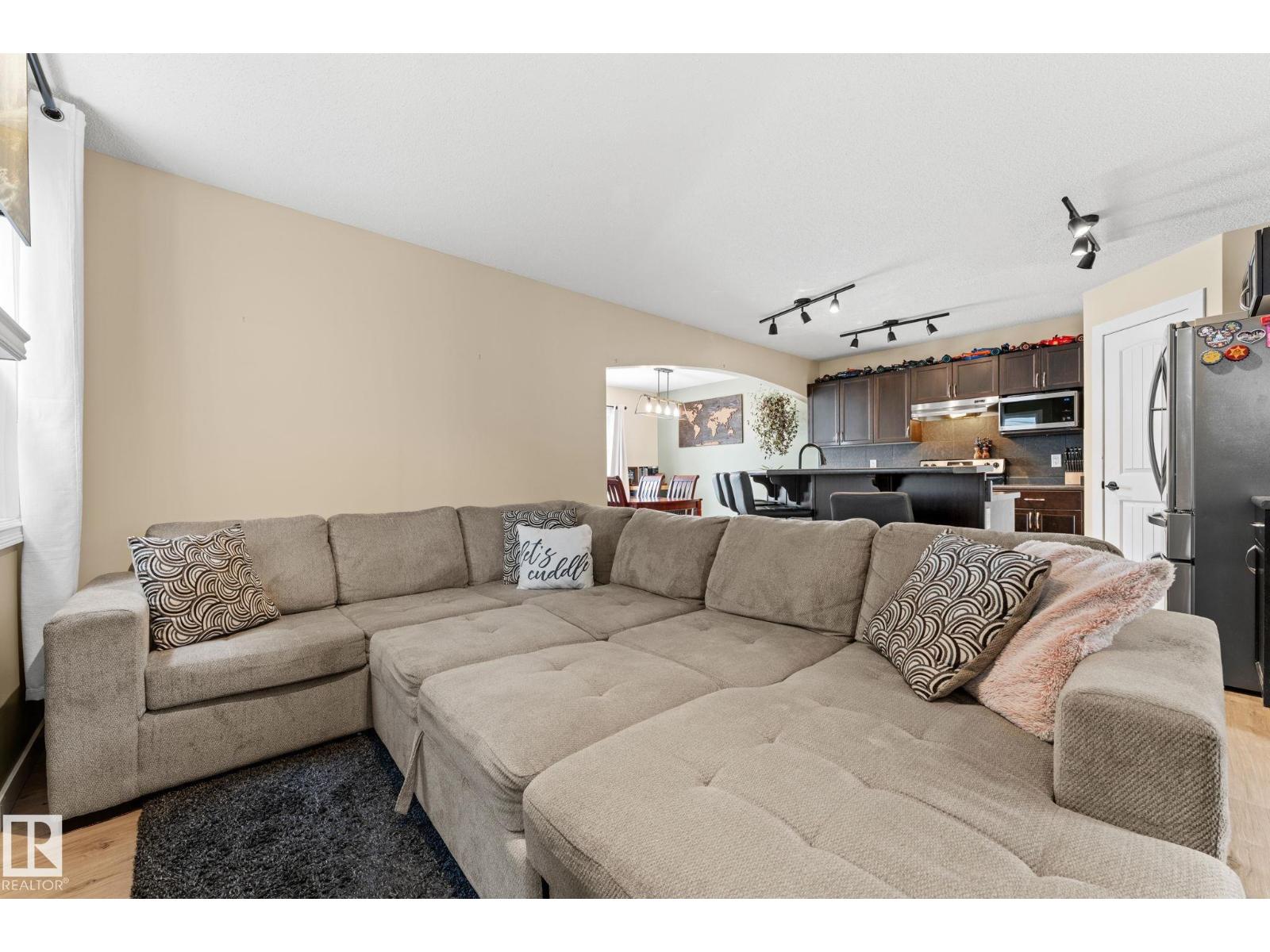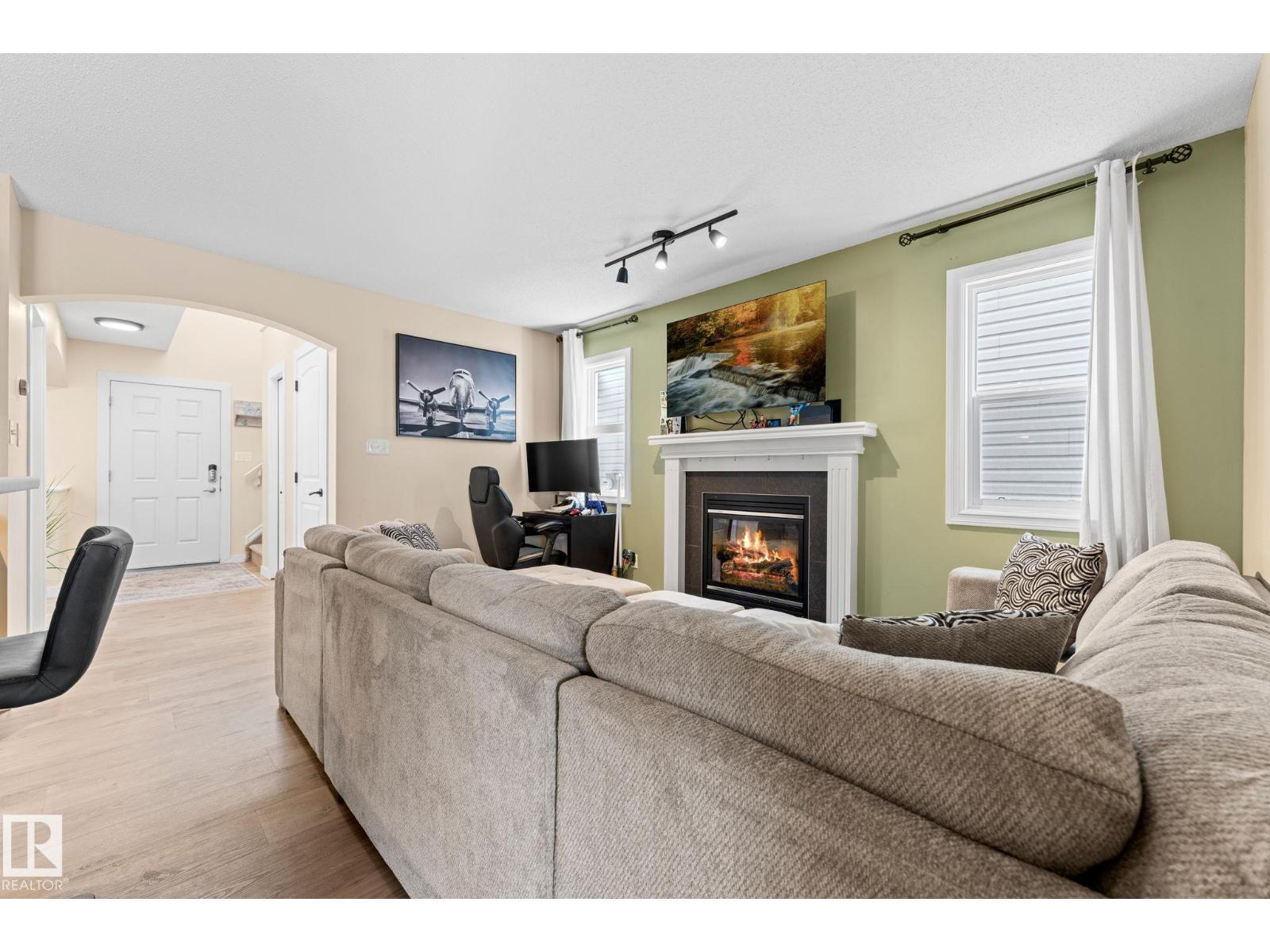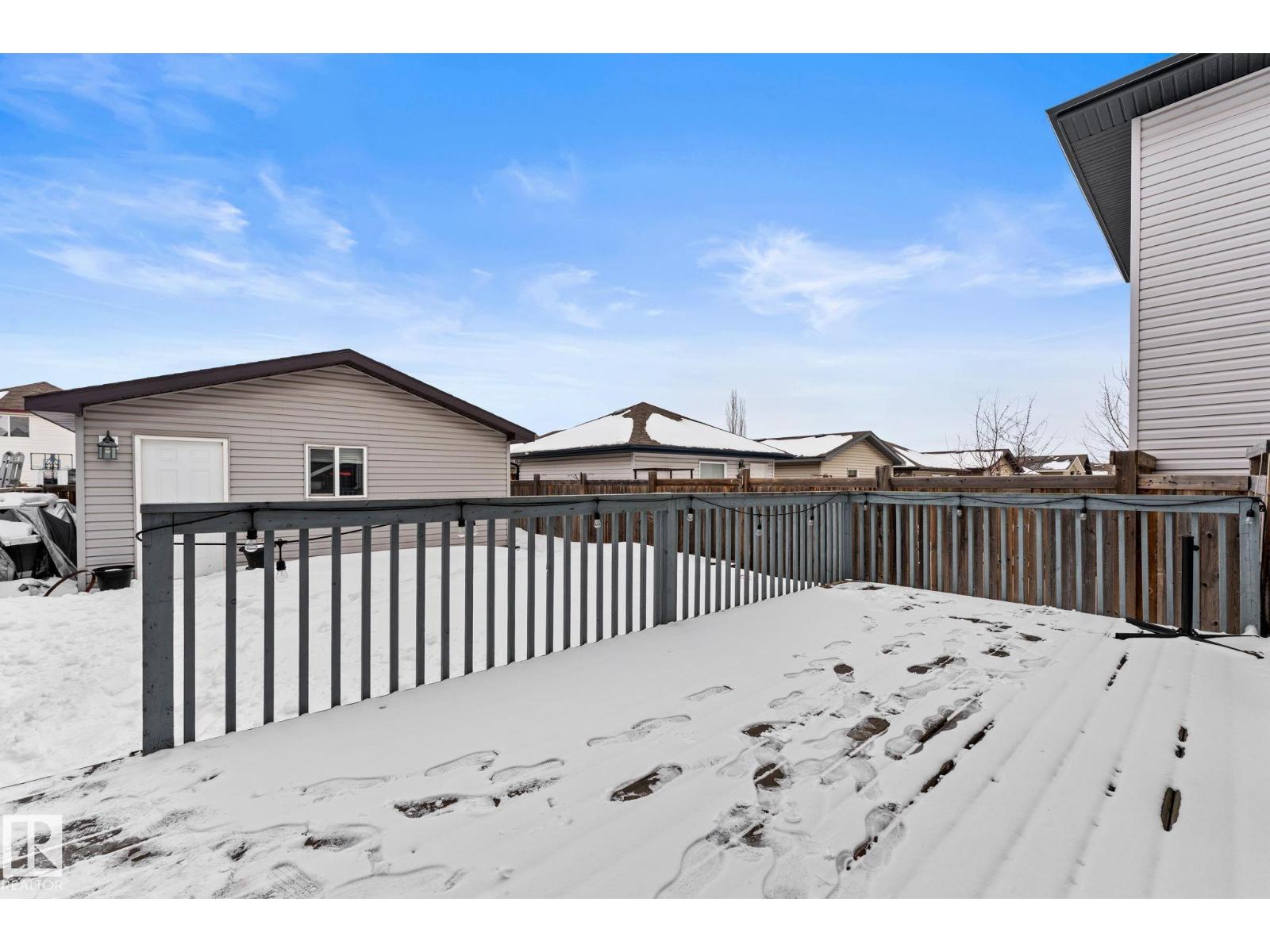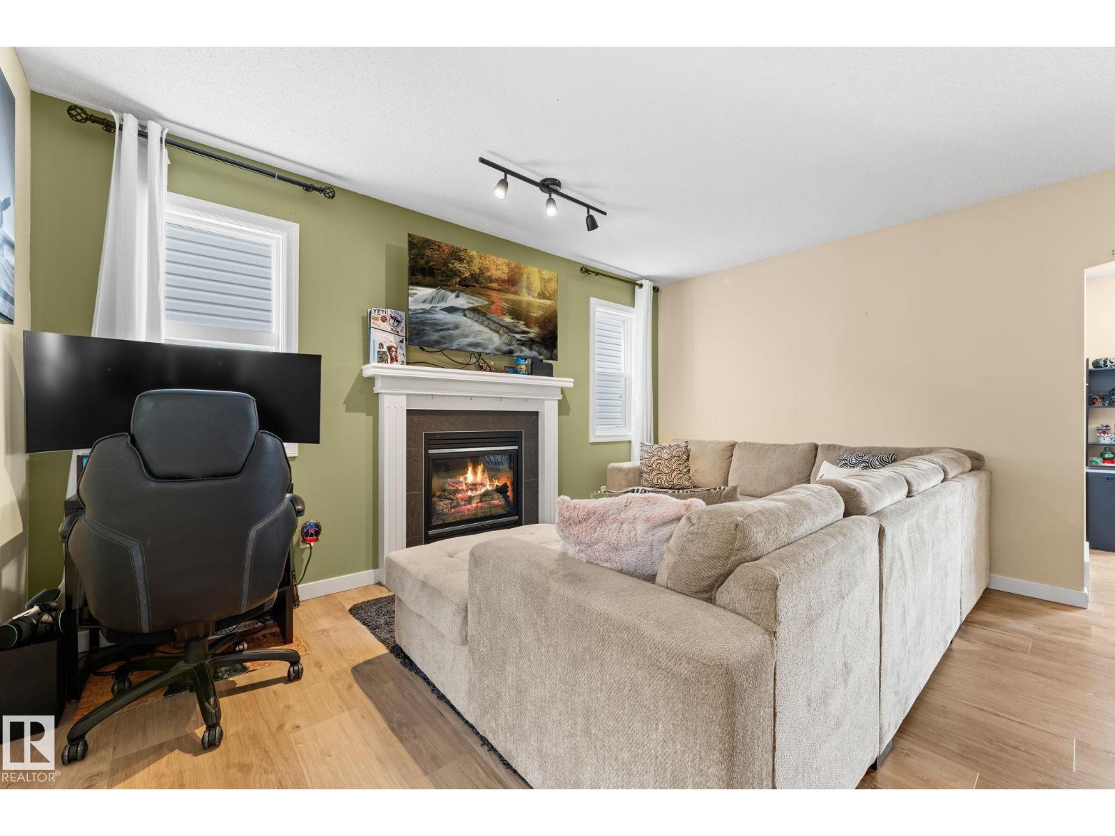 Welcome home to the desirable community of Tamarack! This well-maintained, over 1600 sq. ft home features a bright, open-concept layout designed for everyday living. The main floor showcases newer vinyl plank flooring and a cozy electric fireplace that anchors the living space, creating a warm and inviting atmosphere. Upstairs, you’ll find a spacious primary suite complete with a private ensuite and spacious walk-in closet, along with two additional bedrooms and a full bathroom. The partially finished basement includes a rec room, providing extra space for relaxing, entertaining, or a home gym. Step outside to enjoy the large deck, perfect for summer BBQs and outdoor gatherings. A double detached garage adds convenience and additional storage. Conveniently located steps from a K-9 school, and close to parks, playgrounds and shopping, this is the perfect place to call home. (id:51989)
