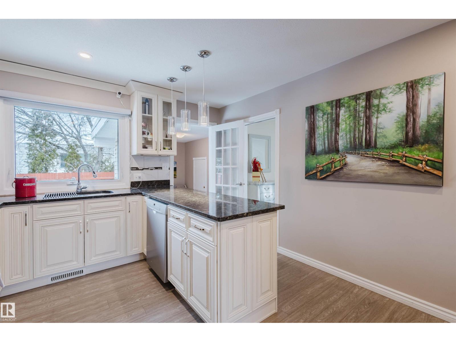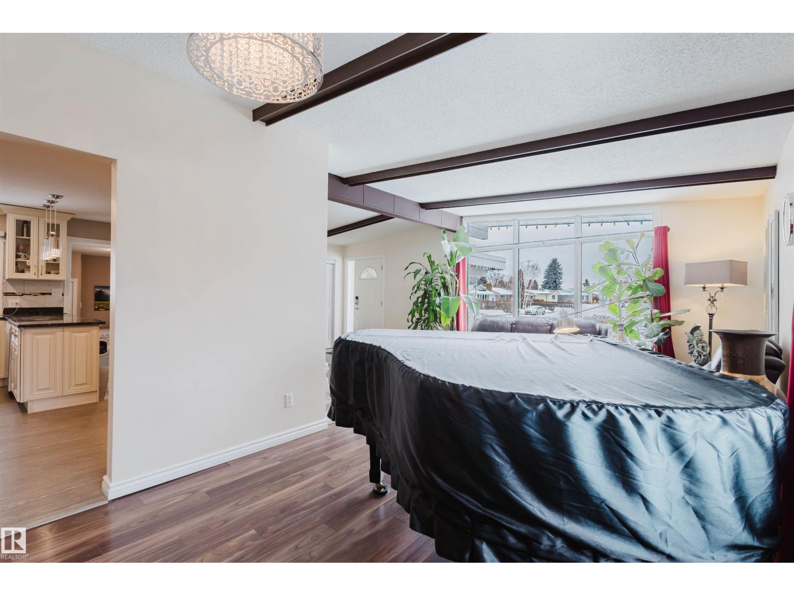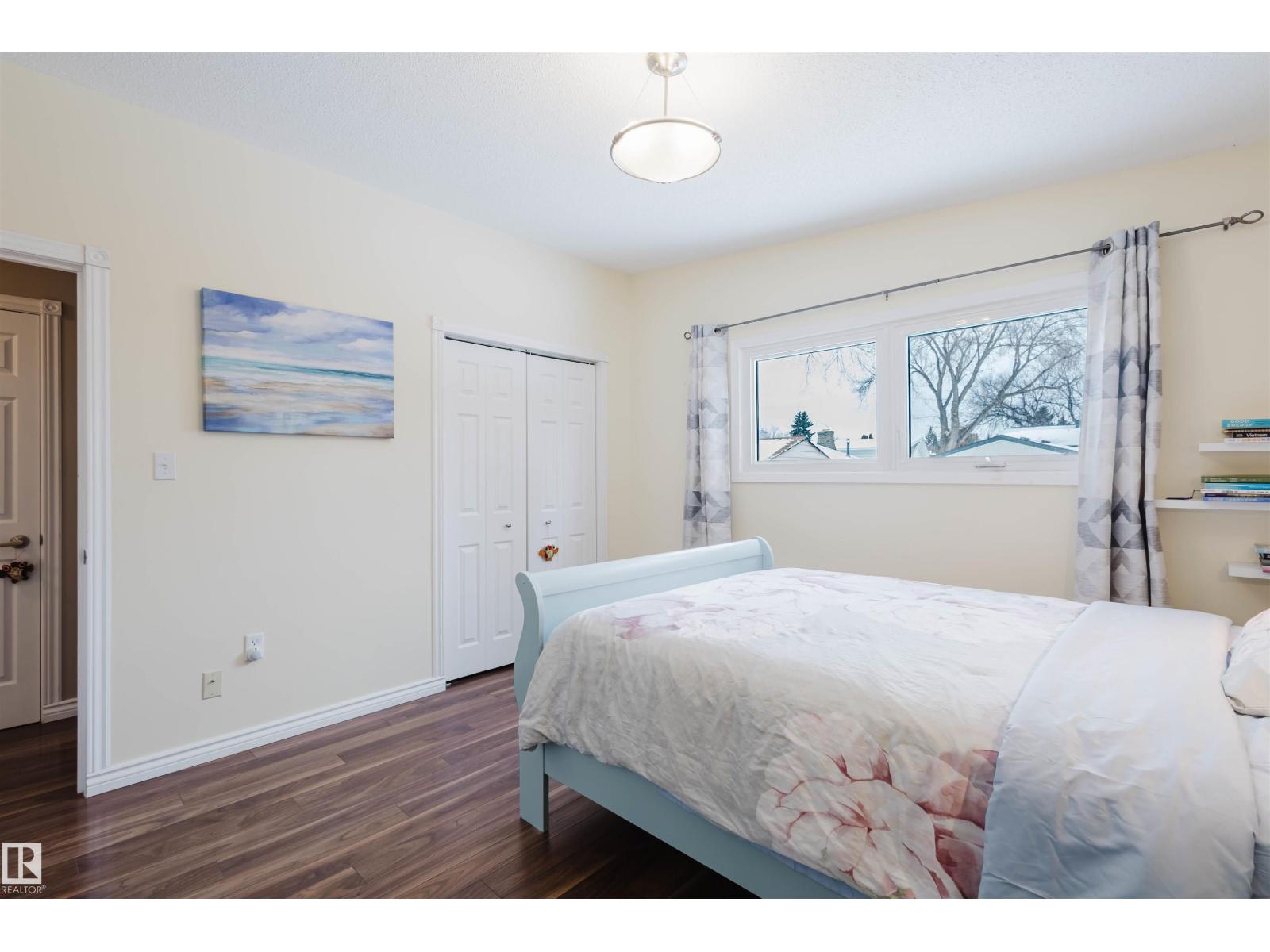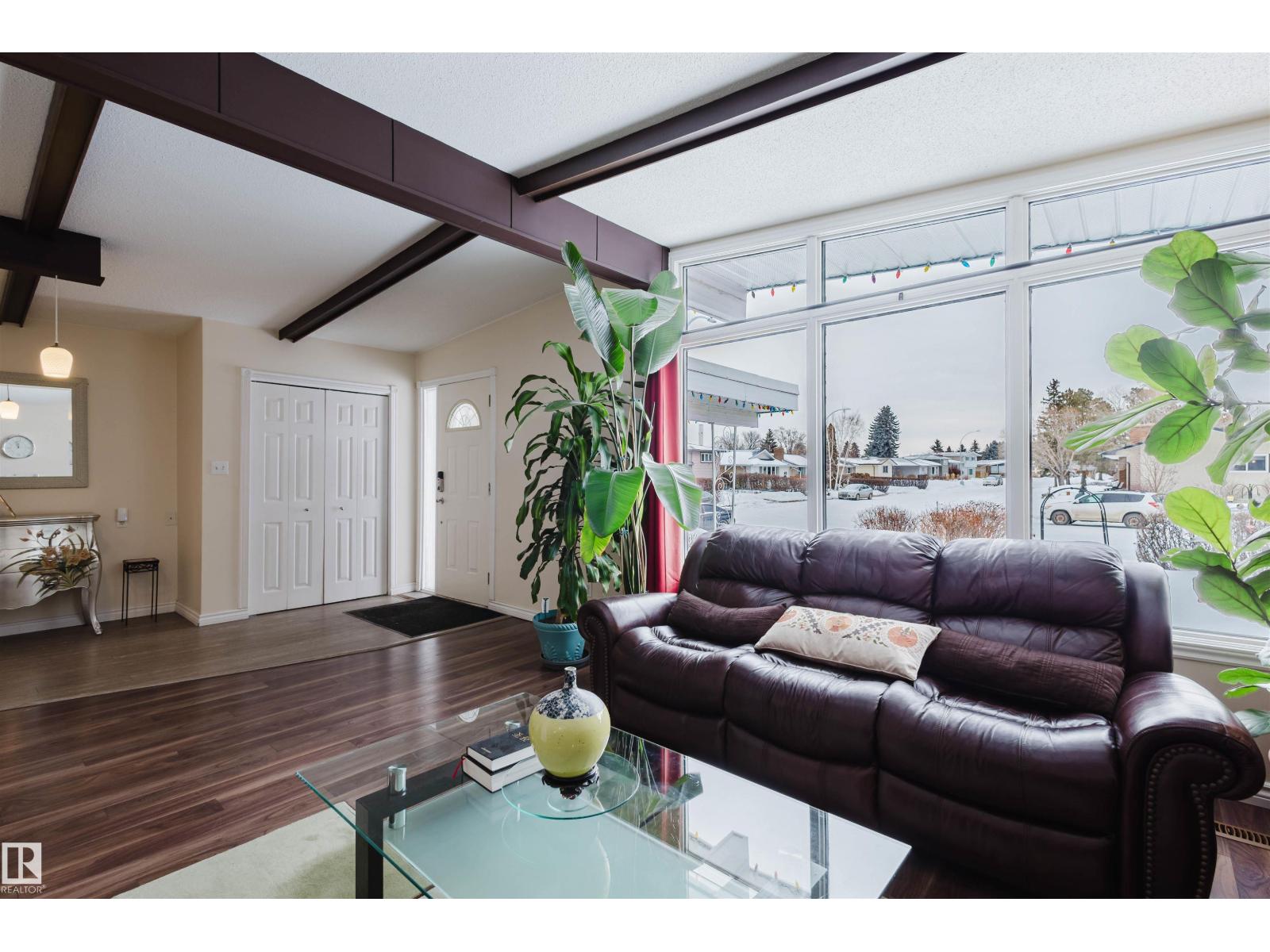 Step into a home where pride of ownership is evident from the moment you arrive. The beautifully maintained front yard features a spectacular display of flowers, offering color and texture all summer. This stunning open-beam bungalow is situated in desirable Greenfield. Flooded with natural light, the main floor features a spacious living room, an eat-in kitchen, three generous bedrooms, and main-floor laundry. The basement offers incredible versatility with a separate entrance, two additional bedrooms, a full bathroom, and a second kitchen excellent potential for a basement suite. Additional features include two furnaces , a 2010 premium roof, a 2010 furnace, a 2019 hot water tank, and a brand-new kitchen installed on the main floor in 2020.Step outside to a beautiful patio in the south-west facing backyard, perfect for relaxing. Located on a quiet crescent, this home is a 3-minute walk to Greenfield School and 9-minute walk to Vernon Barford. Southgate and LRT access are nearby. (id:51989)