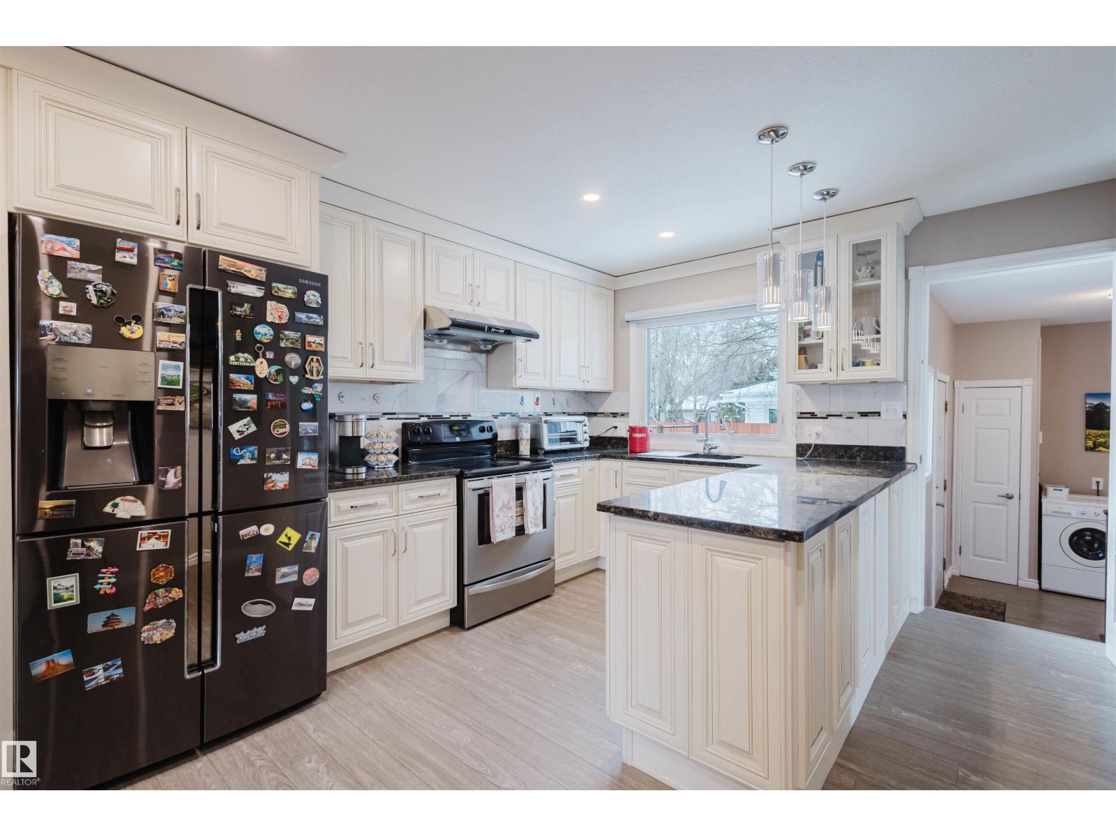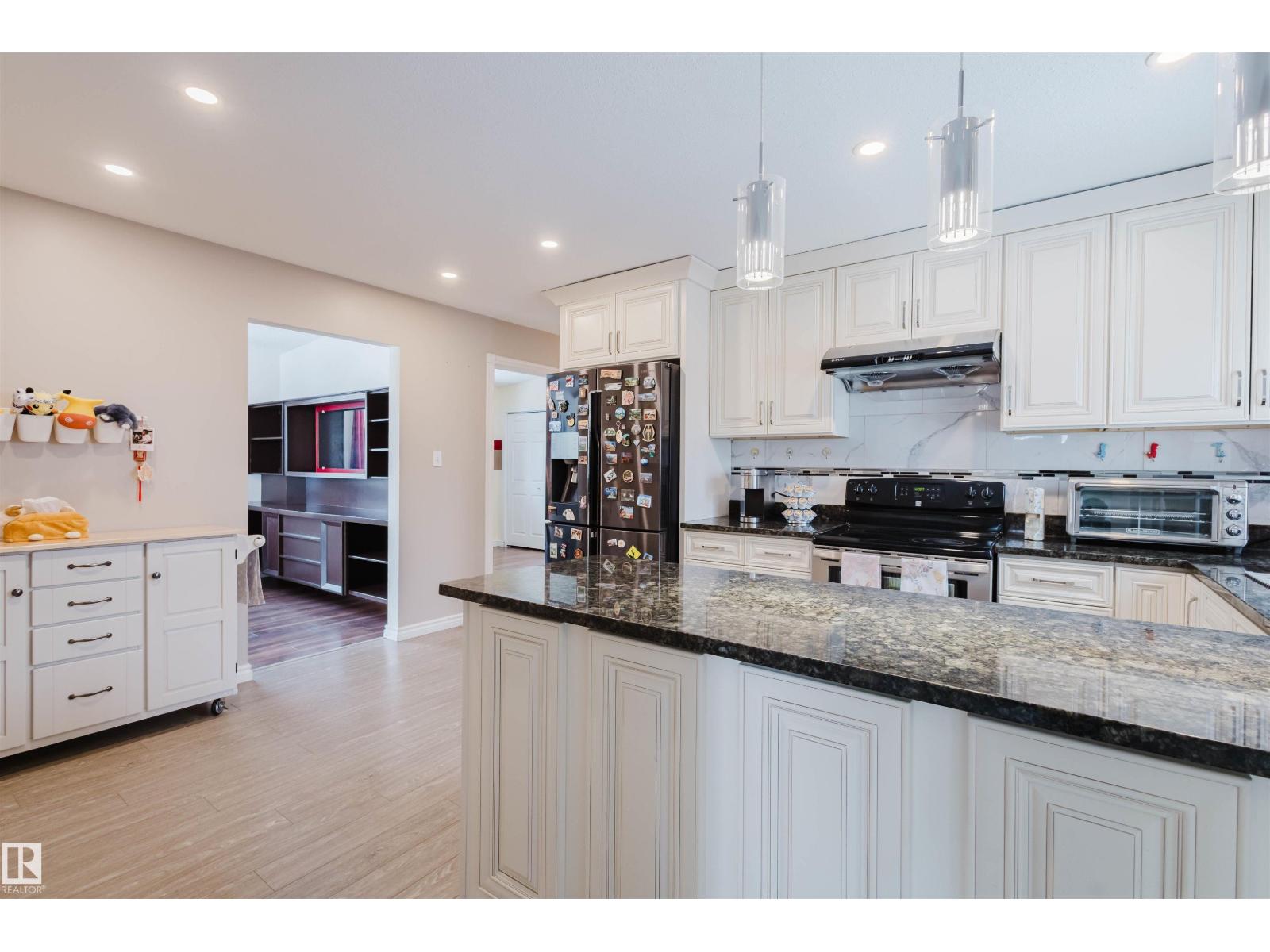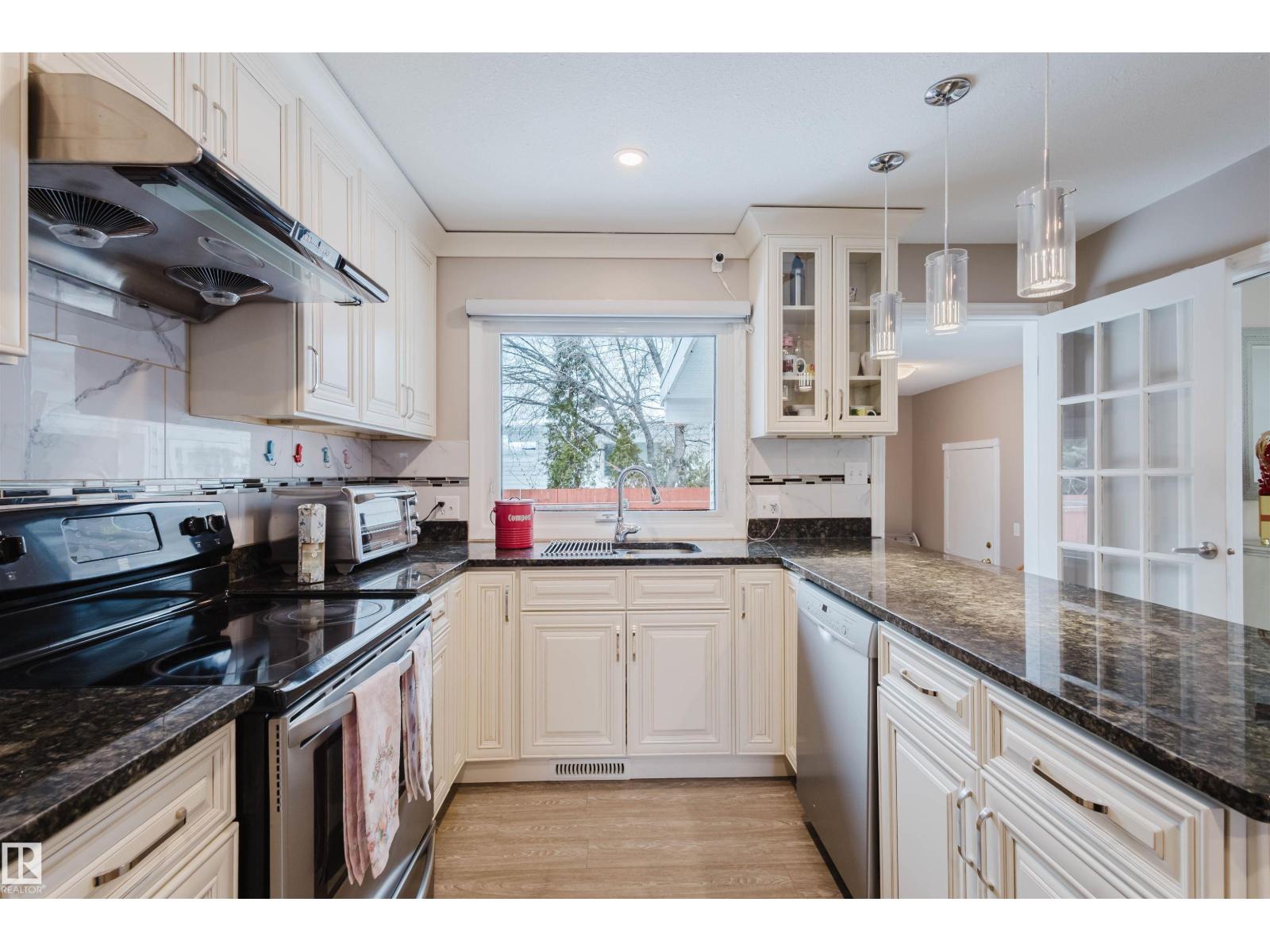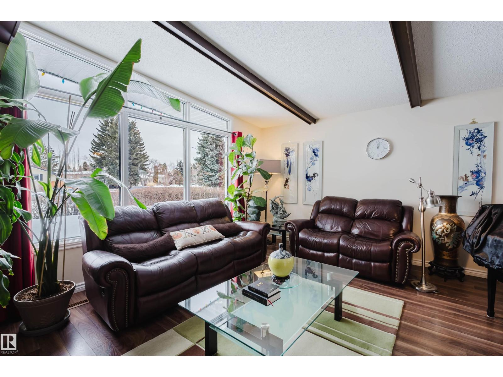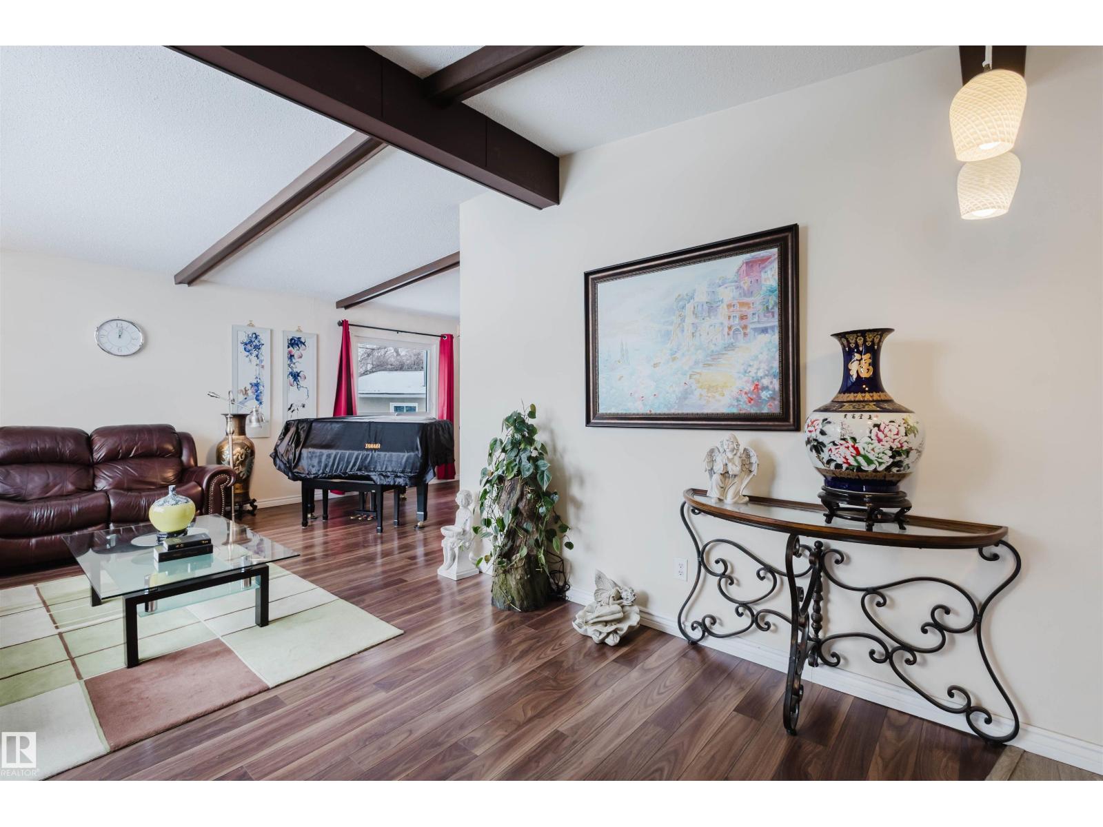 Step into a home where pride of ownership is evident from the moment you arrive. The beautifully maintained front yard features a spectacular display of flowers, offering color and texture all summer. This stunning open-beam bungalow is situated in desirable Greenfield. Flooded with natural light, the main floor features a spacious living room, an eat-in kitchen, three generous bedrooms, and main-floor laundry. The basement offers incredible versatility with a separate entrance, two additional bedrooms, a full bathroom, and a second kitchen excellent potential for a basement suite. Additional features include two furnaces , a 2010 premium roof, a 2010 furnace, a 2019 hot water tank, and a brand-new kitchen installed on the main floor in 2020.Step outside to a beautiful patio in the south-west facing backyard, perfect for relaxing. Located on a quiet crescent, this home is a 3-minute walk to Greenfield School and 9-minute walk to Vernon Barford. Southgate and LRT access are nearby. (id:51989)