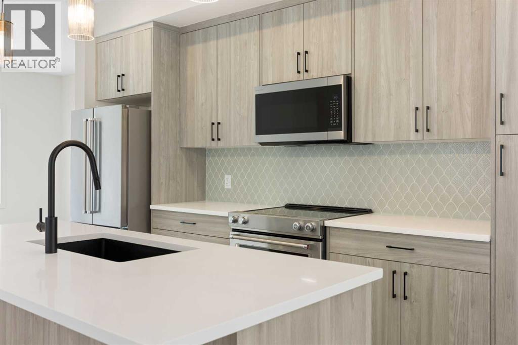 IMMEDIATE OCCUPANCY AVAILABLE – GST INCLUDED. Welcome to the Juniper Townhomes in prestigious Springbank Hill. This Heritage Model 3 Bedroom End-Unit offers a sophisticated design with an emphasis on natural light and functional space. The ground level features a private yet bright den/home office with a large window and closet, a convenient 2-piece powder room, and direct access to the oversized single attached garage (plus additional driveway parking). The main floor boasts an expansive open-concept layout with 9' ceilings and large windows. A modern chef-inspired kitchen is finished with quartz countertops, a breakfast bar, and professional-grade appliances. Luxury Vinyl Plank throughout! Adjacent to the dining area, large sliding glass doors lead to a full-sized balcony. Upstairs, the primary suite includes a double-access closet and a private ensuite with a glass-enclosed stand-up shower. Two additional bedrooms, a second full 4-piece bathroom, and upper-floor laundry complete the top level. Perfectly positioned for a quick commute with direct access to Stoney Trail and 17th Ave, with LRT just a short walk away and just across the road from the premium shopping and dining at Aspen Landing. Move-in ready and built for modern living. (id:51989)