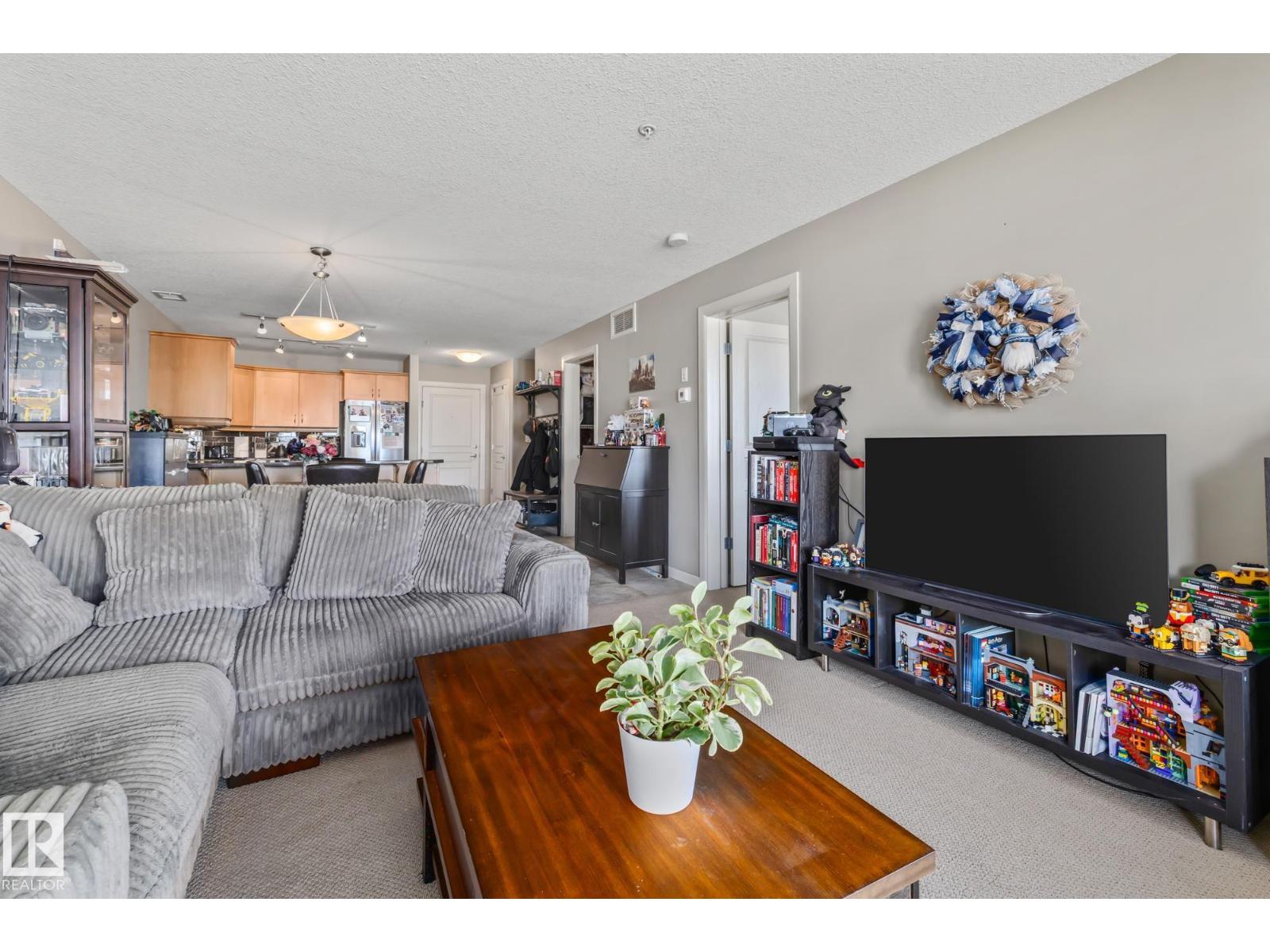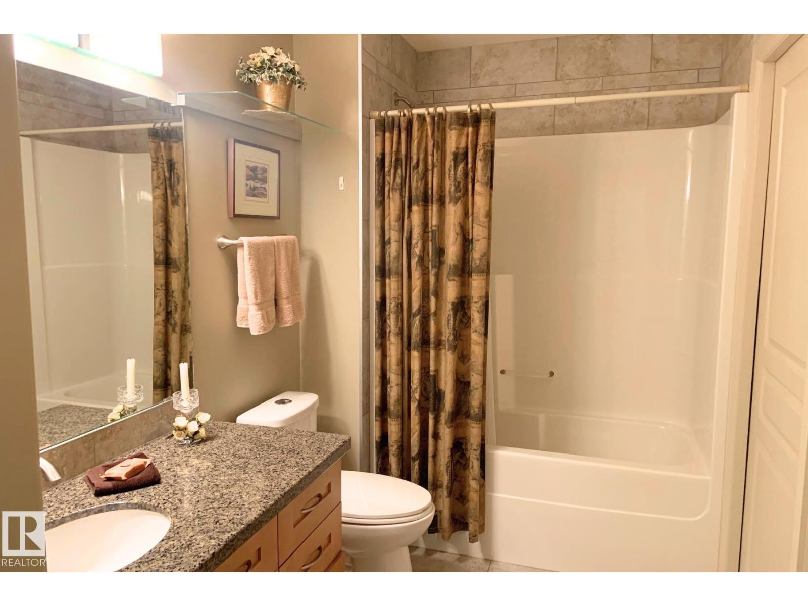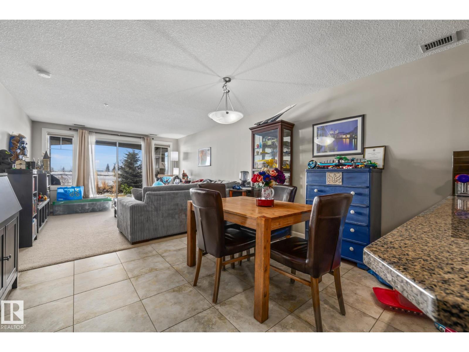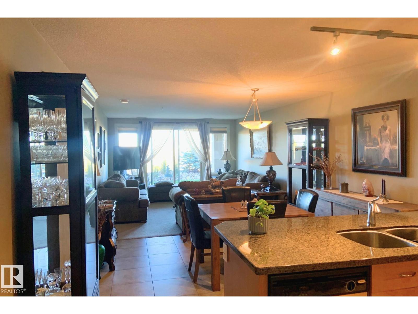 Adult living in Sherwood Park with a view. This 1 bedroom plus den condo in Centennial Village offers a rare west facing main floor patio overlooking green space and park views with a BBQ gas line, perfect for sunsets and quiet evenings. Built with concrete construction for added peace and privacy, this adult and small pet friendly building is packed with resort style amenities including a car wash, steam room, sauna, social and games room and a private movie theatre. Inside you will find granite countertops, stainless steel appliances, maple cabinets, undermount lighting and top down bottom up blinds, all paired with a functional layout that includes a full bath and a flexible den for an office or hobby space. Heat and water are included plus underground heated parking for year round comfort and convenience. An ideal option for downsizers or anyone craving low maintenance living close to shops, services and trails. (id:51989)