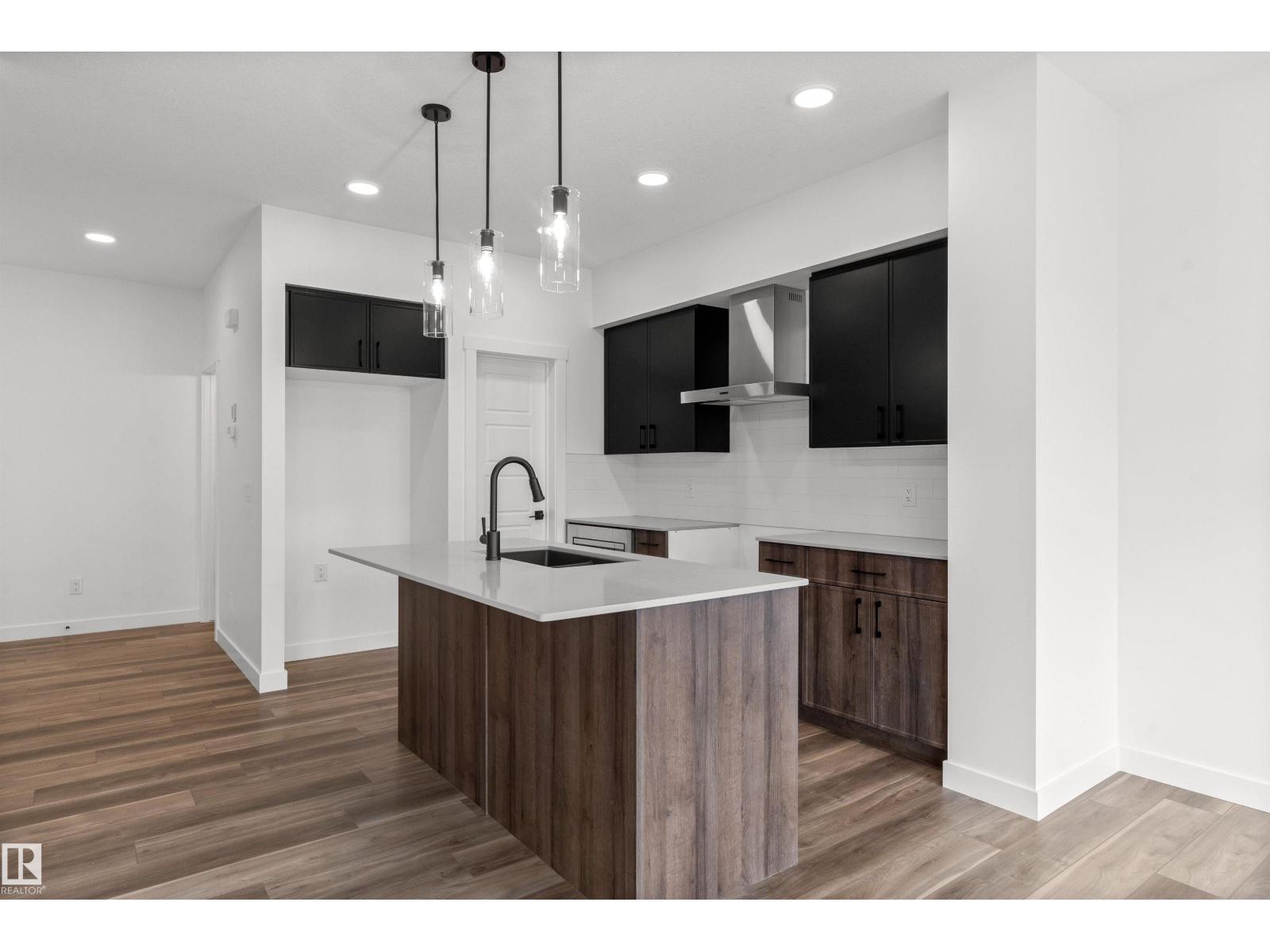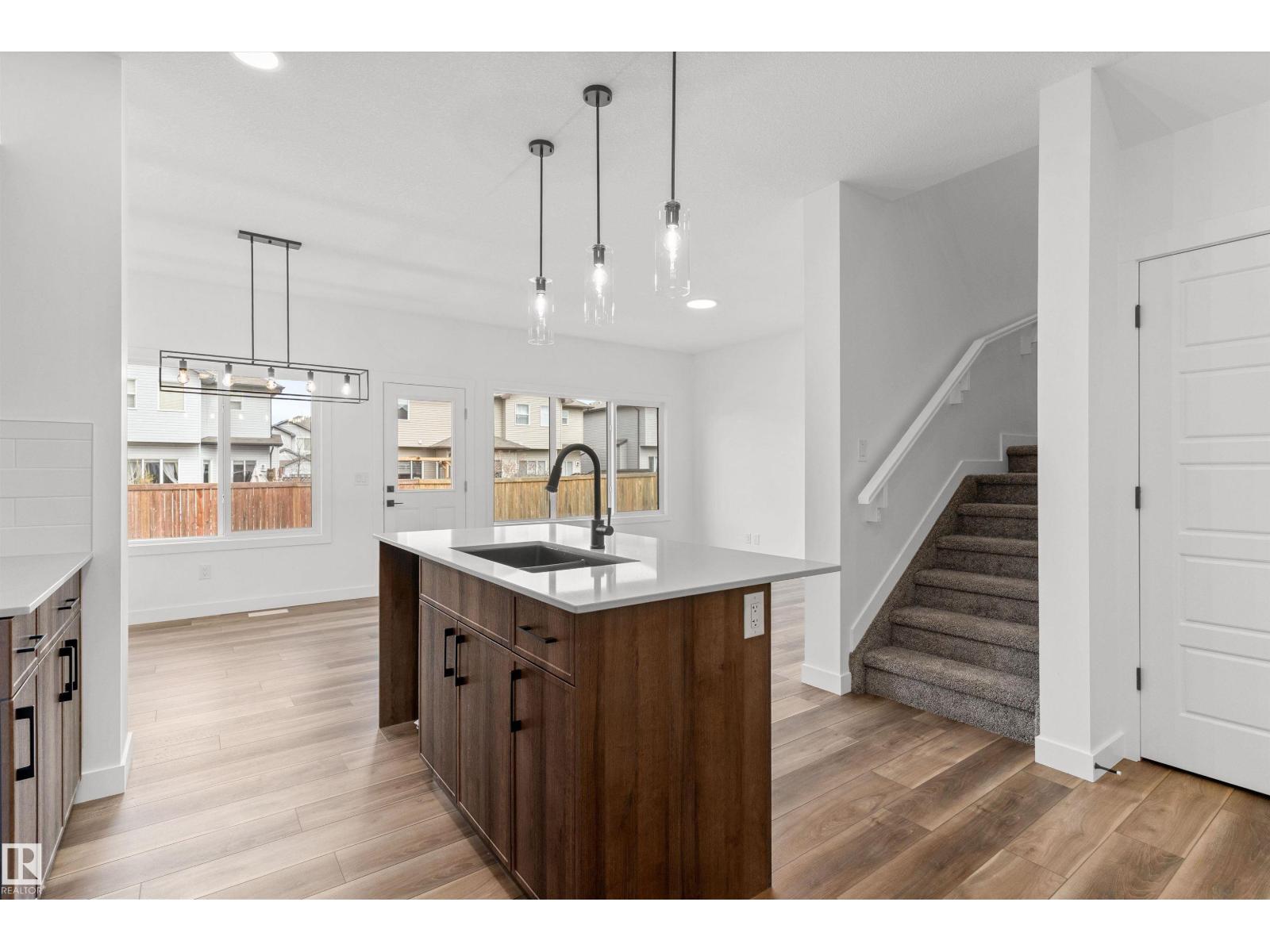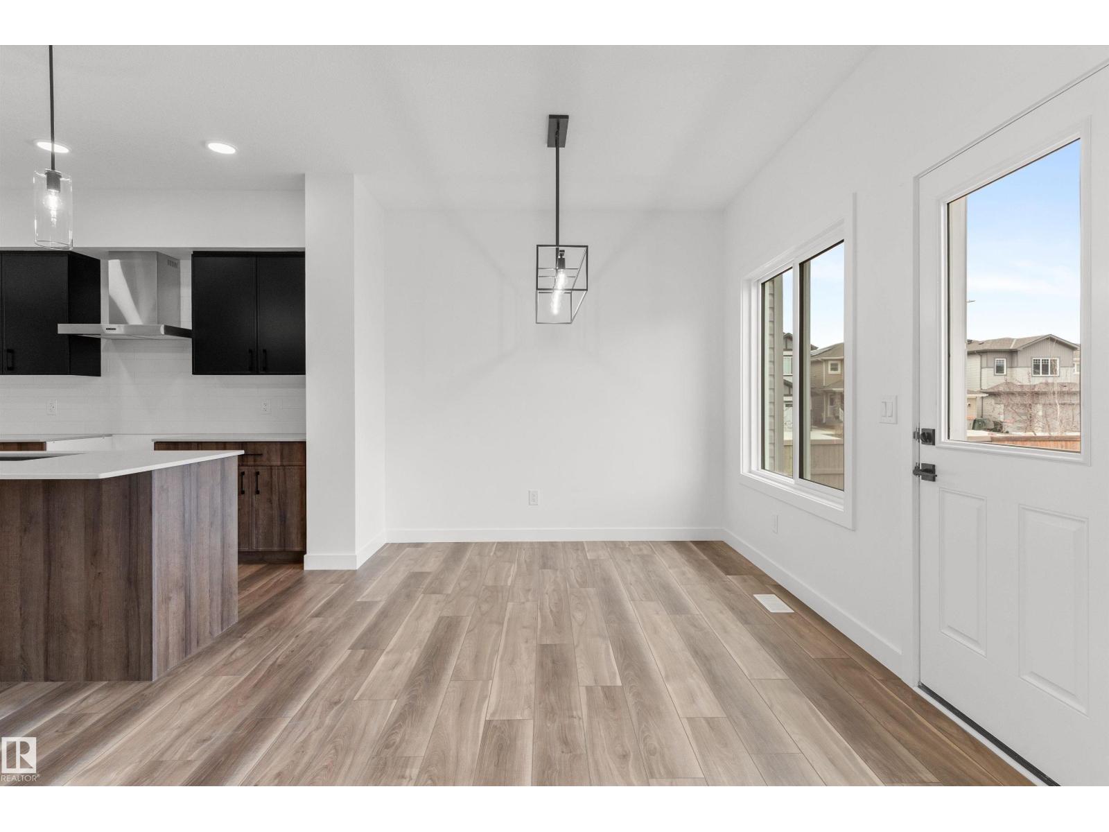 Built by Sterling Homes, this bright duplex in SouthCreek blends modern comfort with the peaceful, open feel that draws people to Stony Plain. Triple pane windows and 9’ ceilings create an airy main floor, while warm luxury vinyl plank flooring unifies the living spaces. The front foyer flows into a welcoming great room centered around an electric fireplace—perfect for cozy evenings. The kitchen is thoughtfully designed with quartz countertops, upgraded cabinetry, a corner pantry, chimney hood fan, and a large island that naturally becomes the heart of gatherings. Expansive rear windows and a patio door fill the home with natural light and overlook the future deck and backyard. Upstairs, a versatile bonus room adds flexibility, while the primary suite features a walk-in closet and private ensuite. Two additional bedrooms, a full bath, upper laundry, double attached garage with drain, side entrance, and basement rough-ins complete this well-rounded home. (id:51989)