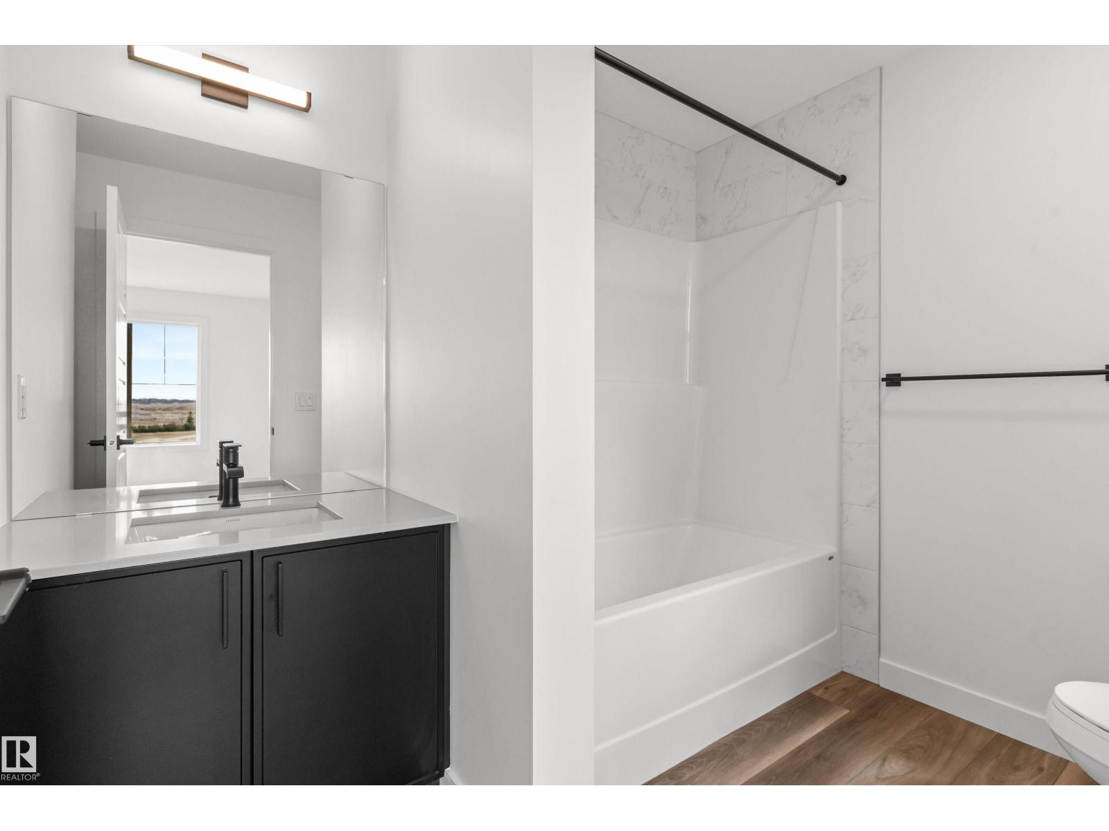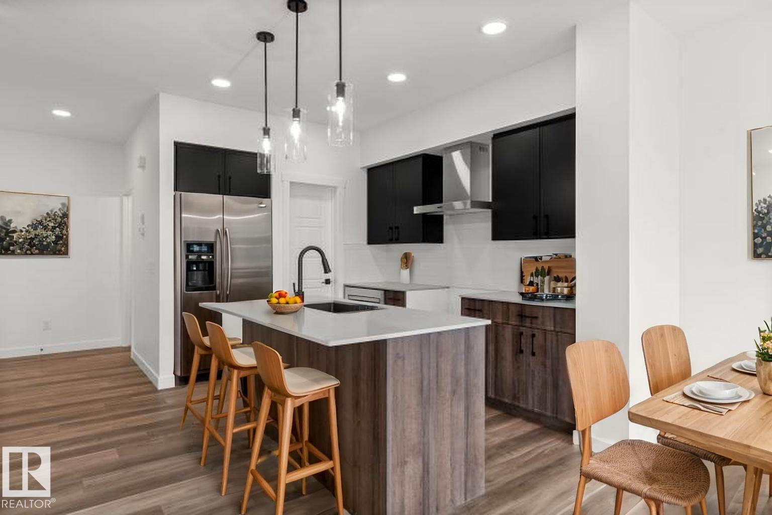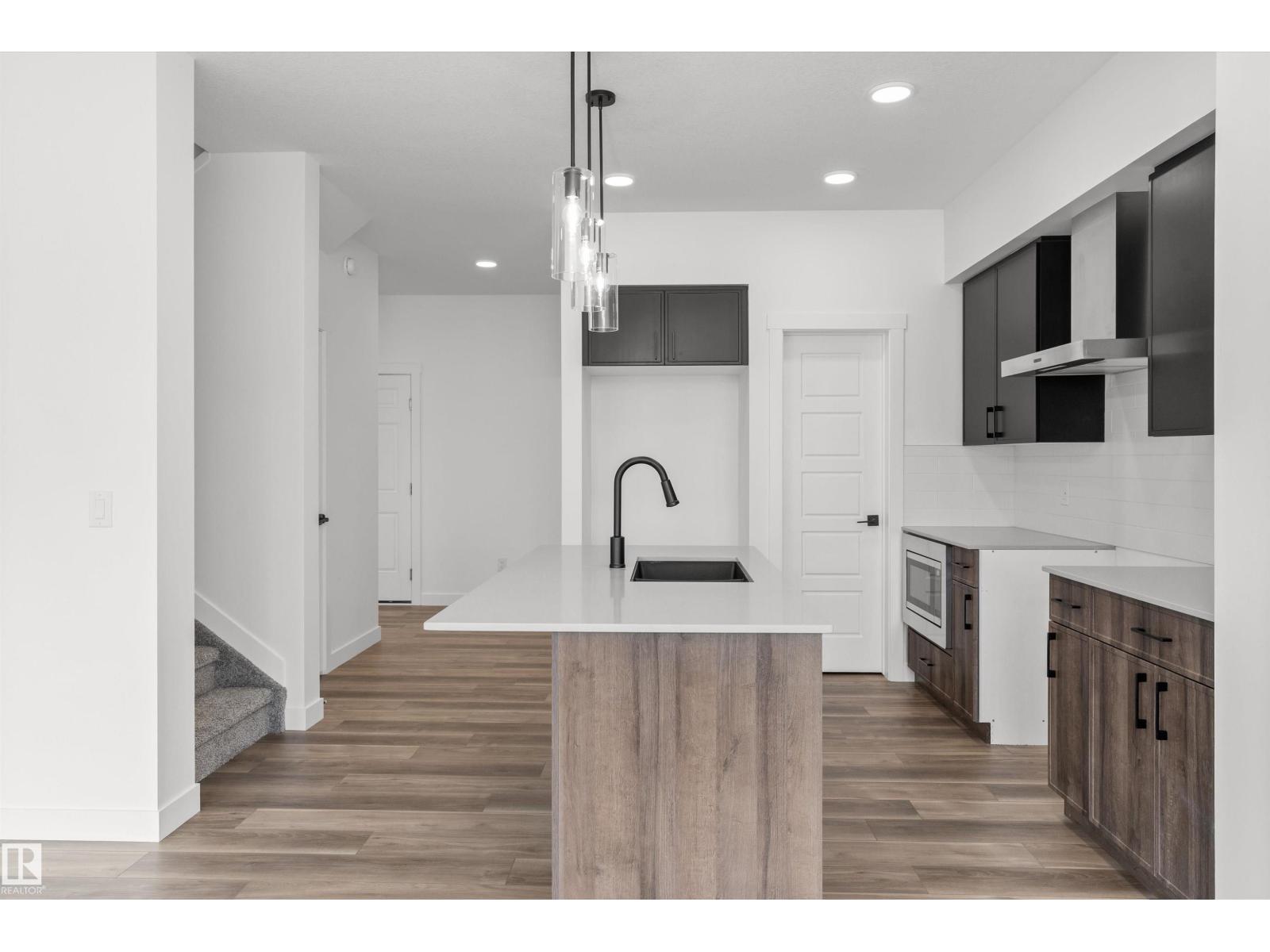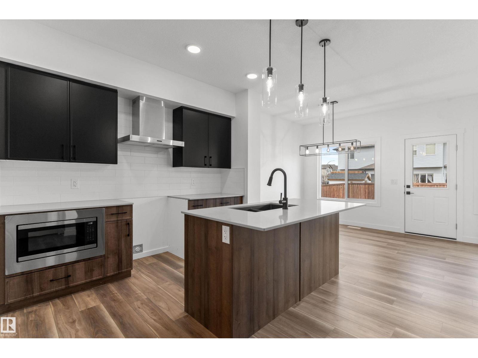 Built by Sterling Homes, this bright duplex in SouthCreek blends modern comfort with the peaceful, open feel that draws people to Stony Plain. Triple pane windows and 9’ ceilings create an airy main floor, while warm luxury vinyl plank flooring unifies the living spaces. The front foyer flows into a welcoming great room centered around an electric fireplace—perfect for cozy evenings. The kitchen is thoughtfully designed with quartz countertops, upgraded cabinetry, a corner pantry, chimney hood fan, and a large island that naturally becomes the heart of gatherings. Expansive rear windows and a patio door fill the home with natural light and overlook the future deck and backyard. Upstairs, a versatile bonus room adds flexibility, while the primary suite features a walk-in closet and private ensuite. Two additional bedrooms, a full bath, upper laundry, double attached garage with drain, side entrance, and basement rough-ins complete this well-rounded home. (id:51989)