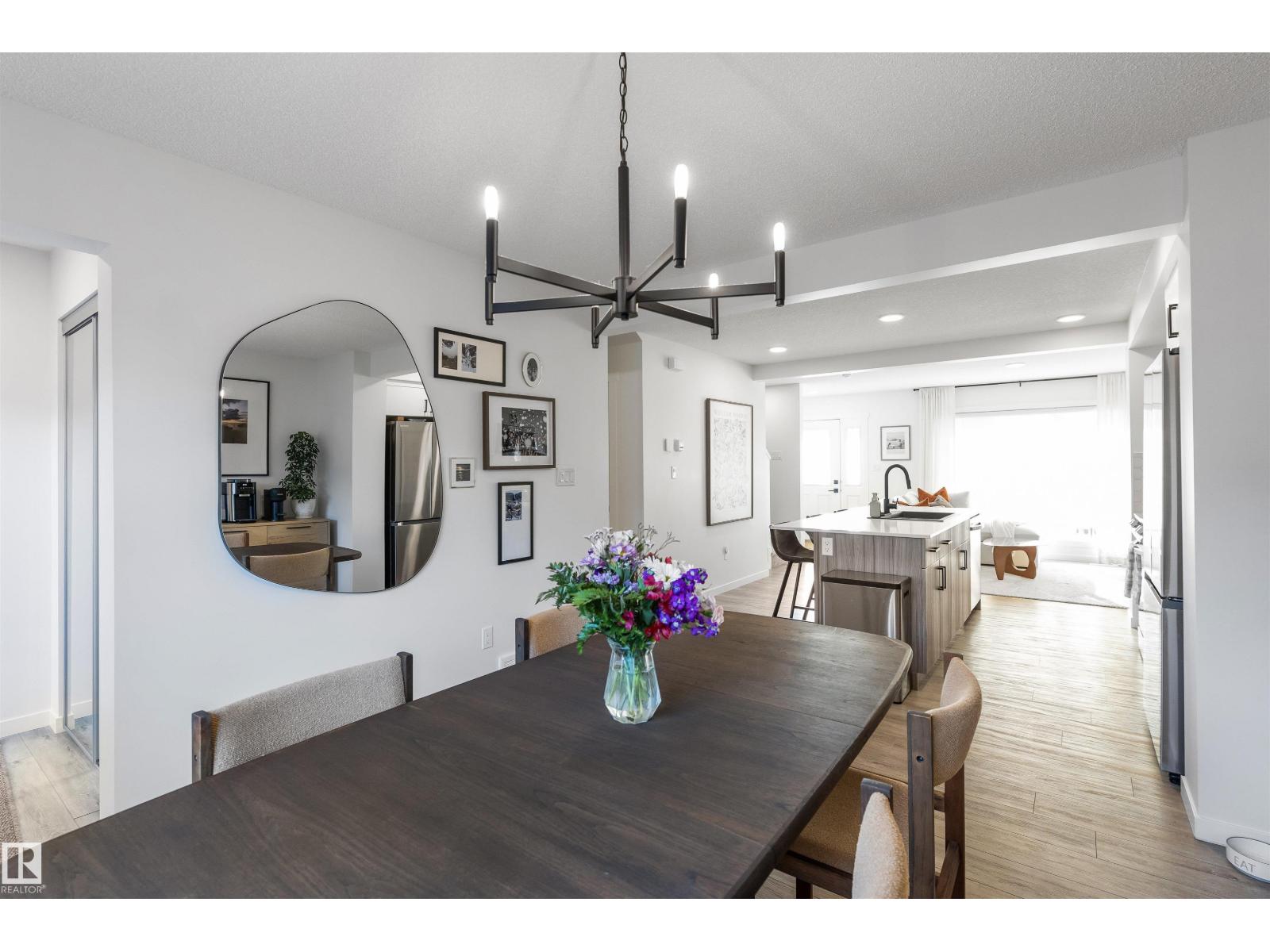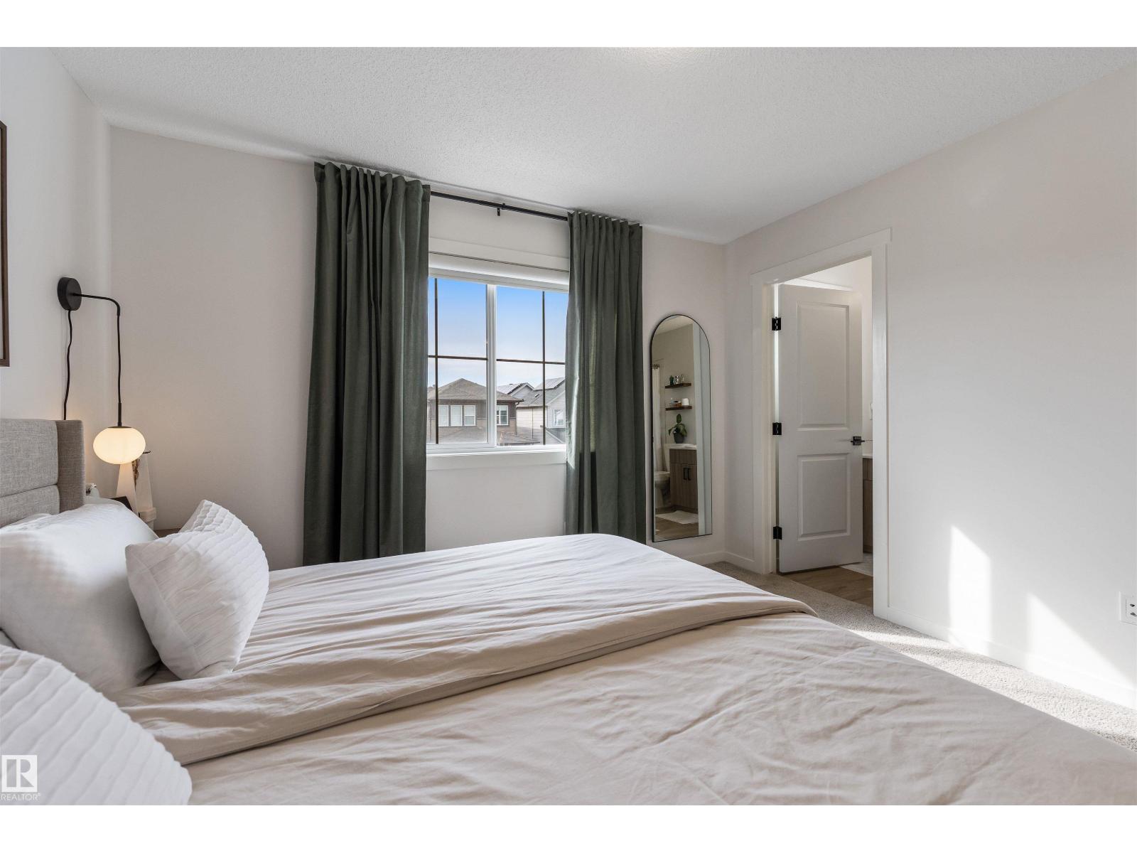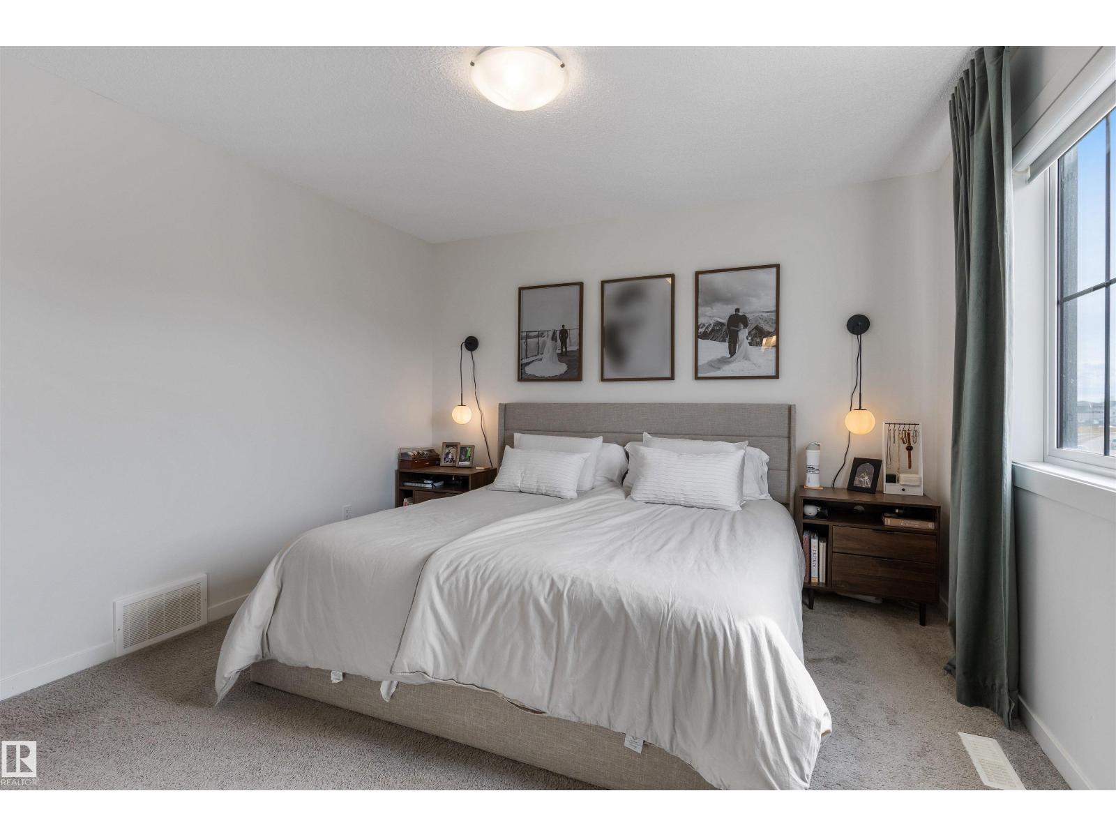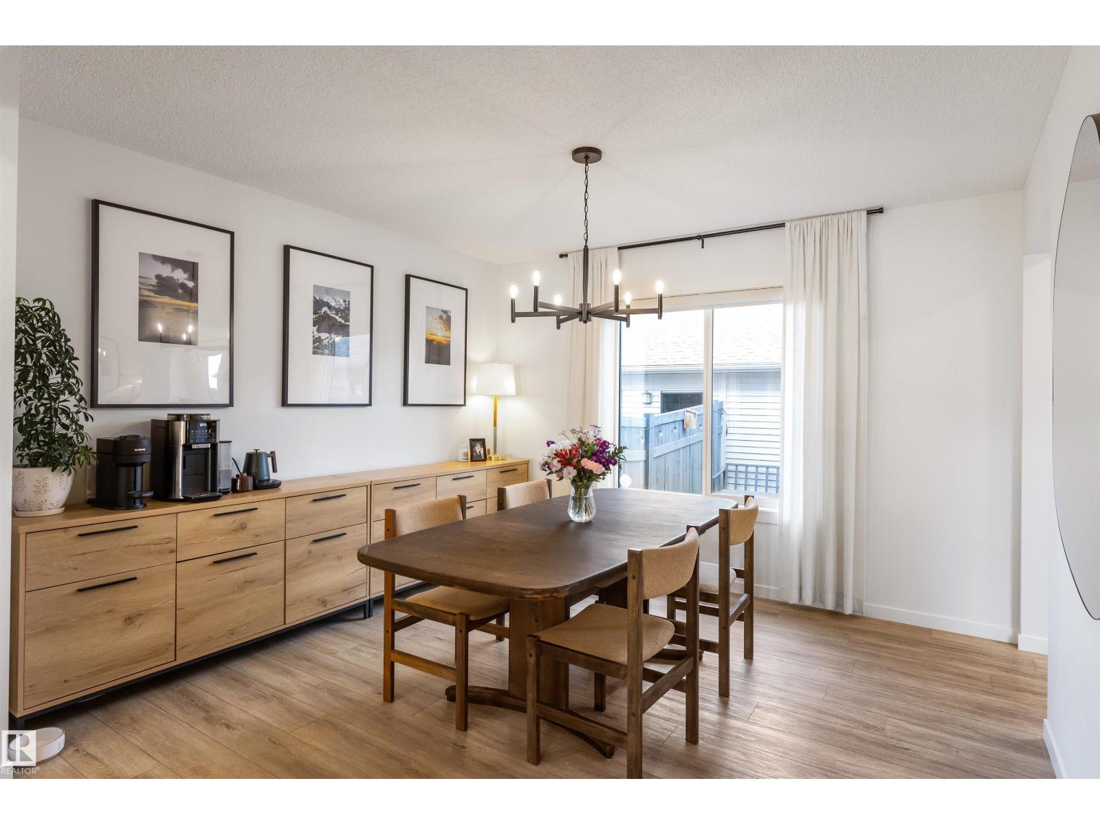 Step inside this beautiful home by StreetSide Developments and enjoy the seamless flow of the open-concept main floor, filled with natural sunlight from large windows throughout. The cozy front living room leads into a bright kitchen featuring ceiling-height white cabinetry, Samsung stainless steel appliances, quartz countertops, a large island with eat-up seating, and a black composite sink. The spacious dining area overlooks the fully landscaped backyard, complete with a dog run. Upstairs offers stacked laundry, two generous bedrooms, a 4pc bath, and a primary retreat with a walk-in closet and 4pc ensuite. The unfinished basement is ready for your personal touch. BONUS features include a double detached heated garage (120V dedicated breaker), A/C, and NO CONDO FEES. Located steps from schools, parks, trails, and amenities—this home is move-in ready! (id:51989)