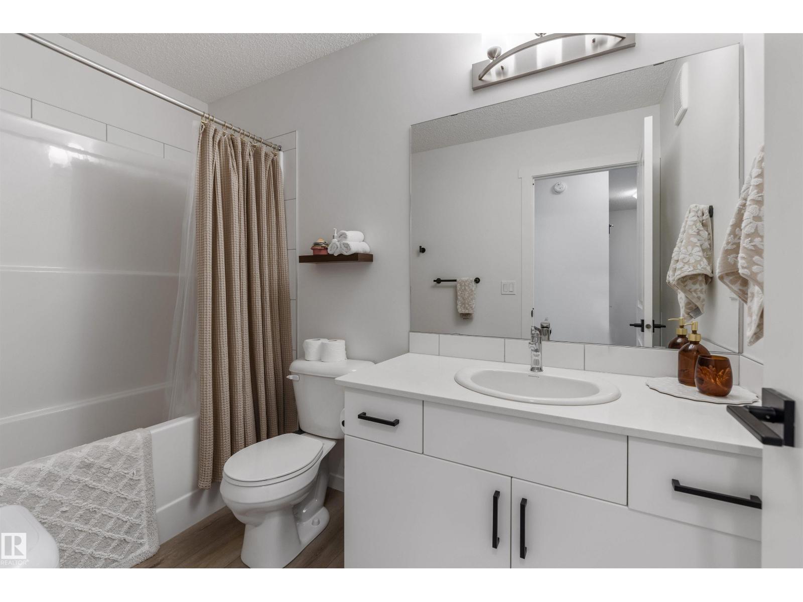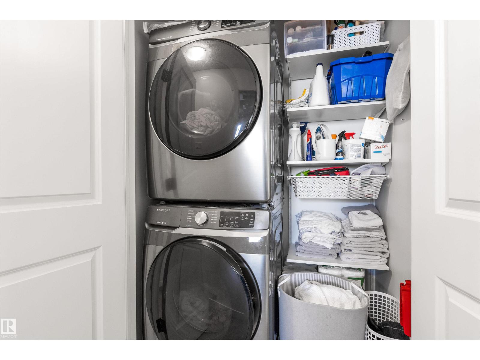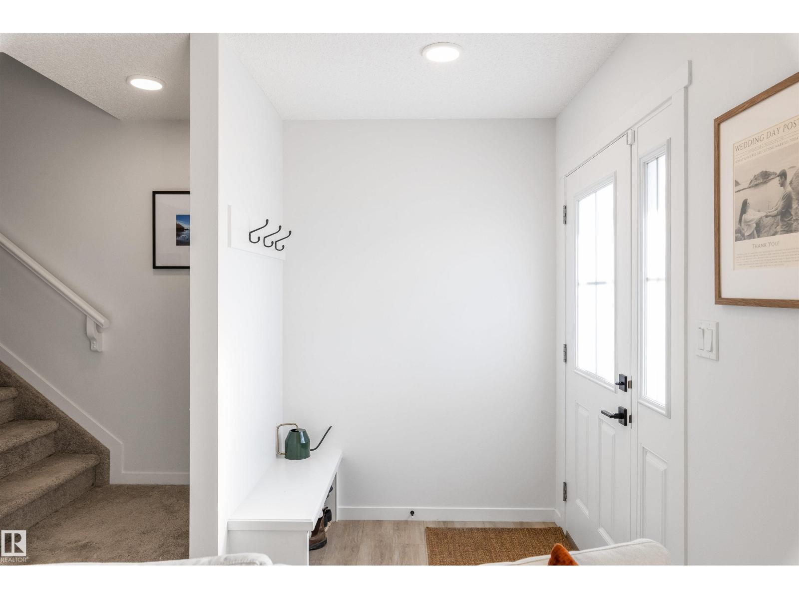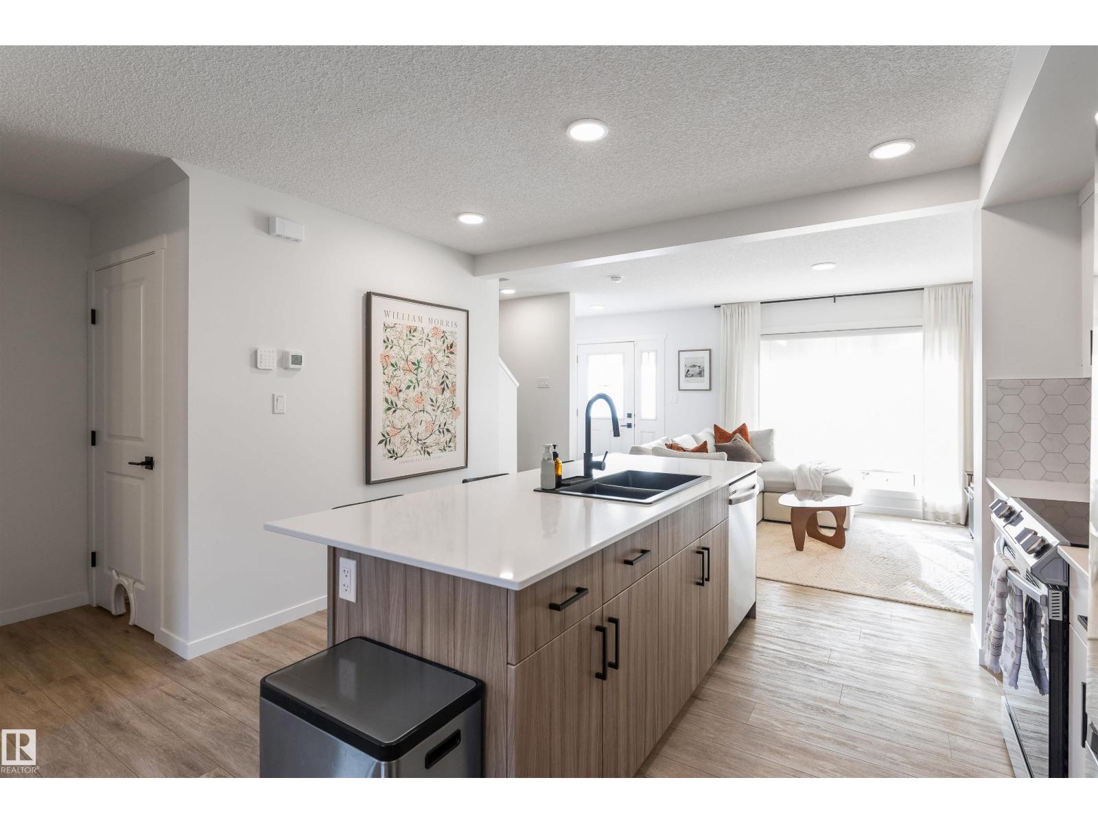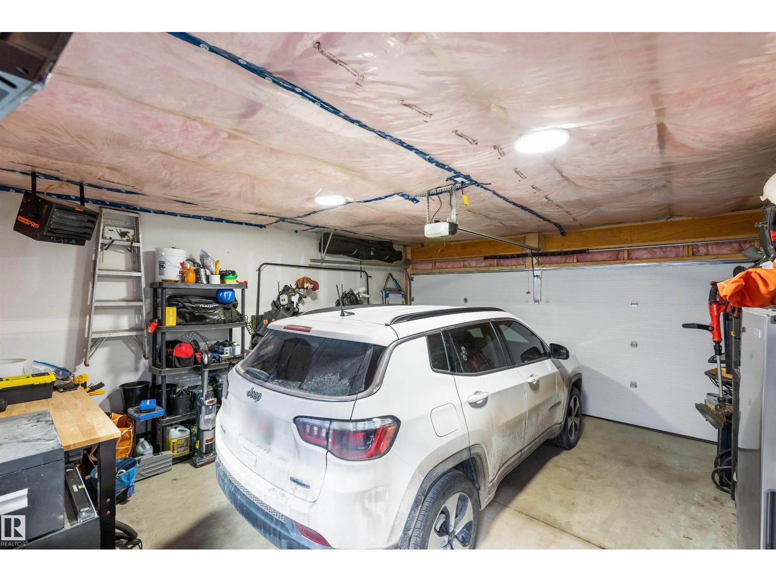 Step inside this beautiful home by StreetSide Developments and enjoy the seamless flow of the open-concept main floor, filled with natural sunlight from large windows throughout. The cozy front living room leads into a bright kitchen featuring ceiling-height white cabinetry, Samsung stainless steel appliances, quartz countertops, a large island with eat-up seating, and a black composite sink. The spacious dining area overlooks the fully landscaped backyard, complete with a dog run. Upstairs offers stacked laundry, two generous bedrooms, a 4pc bath, and a primary retreat with a walk-in closet and 4pc ensuite. The unfinished basement is ready for your personal touch. BONUS features include a double detached heated garage (120V dedicated breaker), A/C, and NO CONDO FEES. Located steps from schools, parks, trails, and amenities—this home is move-in ready! (id:51989)