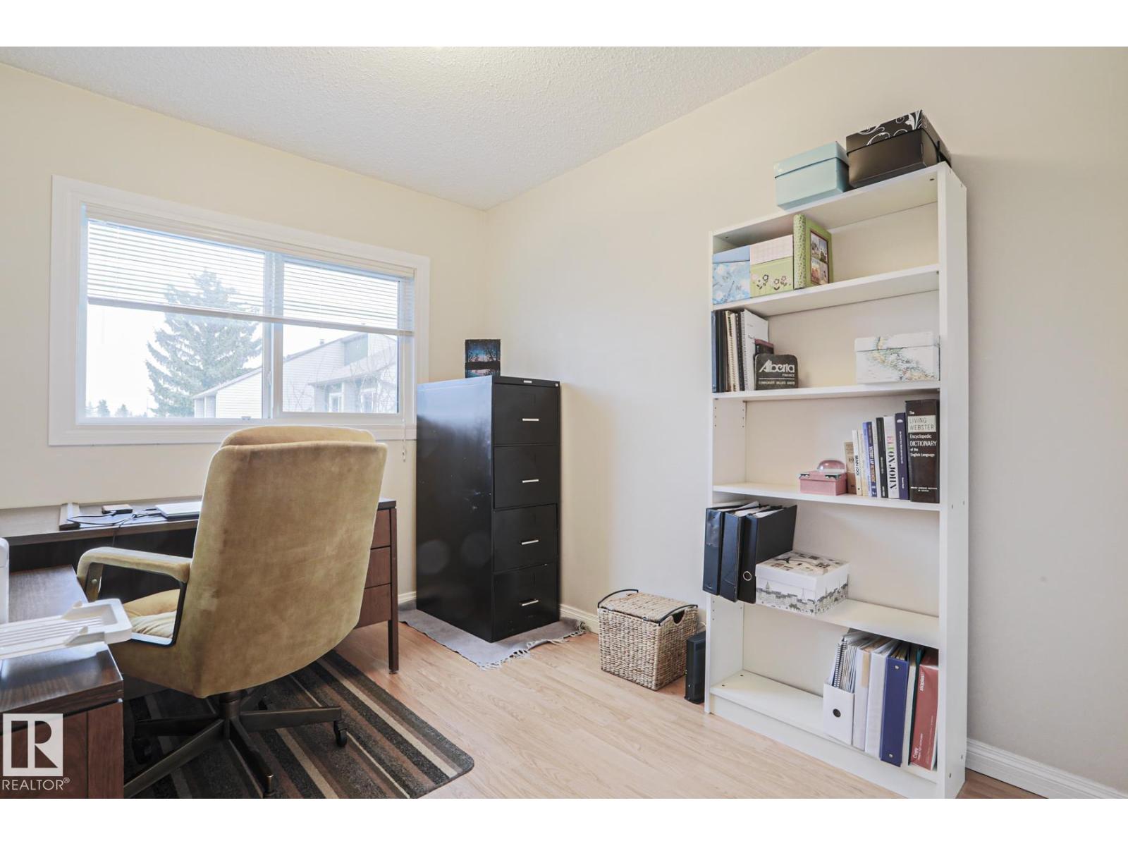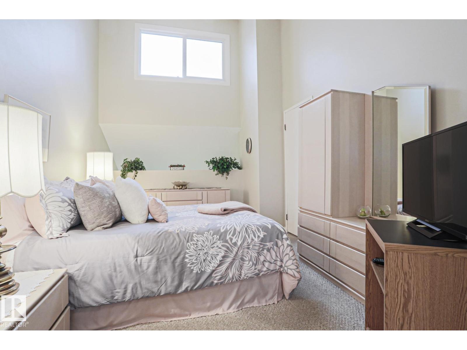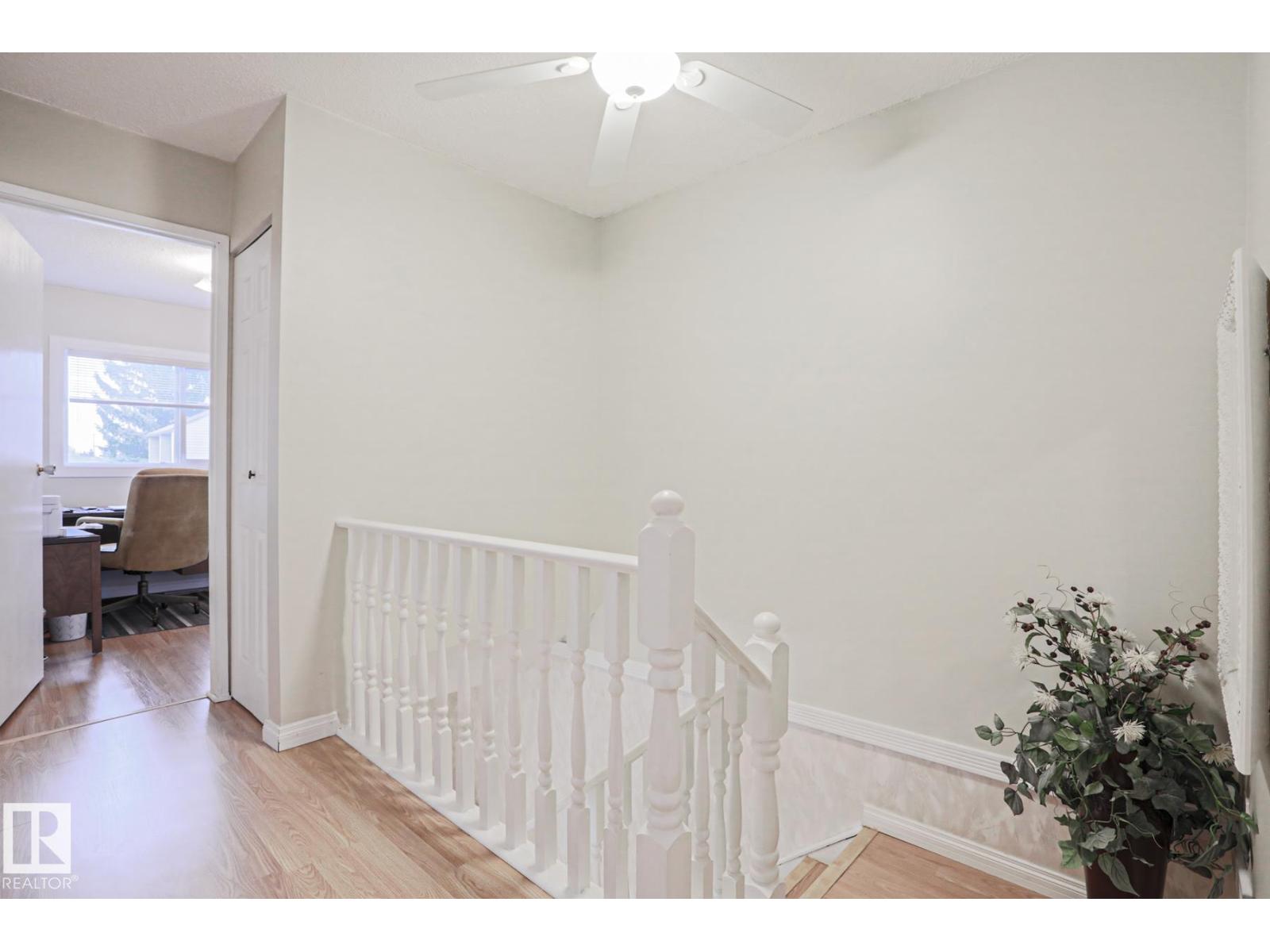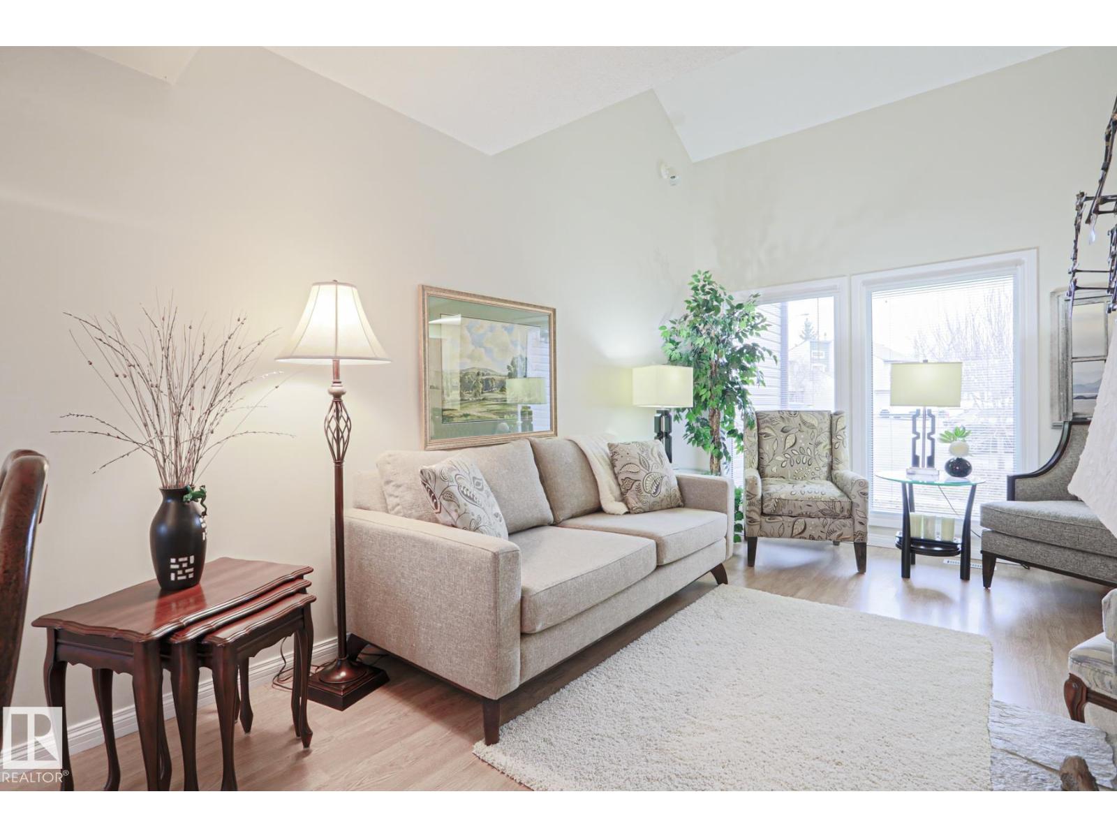 Cimarron Chase is one of South Edmonton's most architecturally pleasing townhome communities. This fine home features an inviting deck to admire the big sky park view. Inside you will appreciate the cozy living room with woodburning fireplace, soaring vaulted ceiling and huge windows. Semi-formal dining room overlooks the park out back and is ideal for special family gatherings. Galley style kitchen offers bright kitchen cabinets and plenty of counter space for the chef at heart. Delightful dinette is perfect for casual dining. Upper level has an exciting primary bedroom that you have to see in person with a unique loft style design, dual closets and your very own Juliet balcony with spectacular view of the western sunsets overlooking the peaceful Keheewin park! Two other bedrooms and a four piece bath complete the upper level. The basement family room, hallway and den just need flooring and you have everything you need including a 3 piece bath, laundry and ample storage! Two energized stalls too! (id:51989)