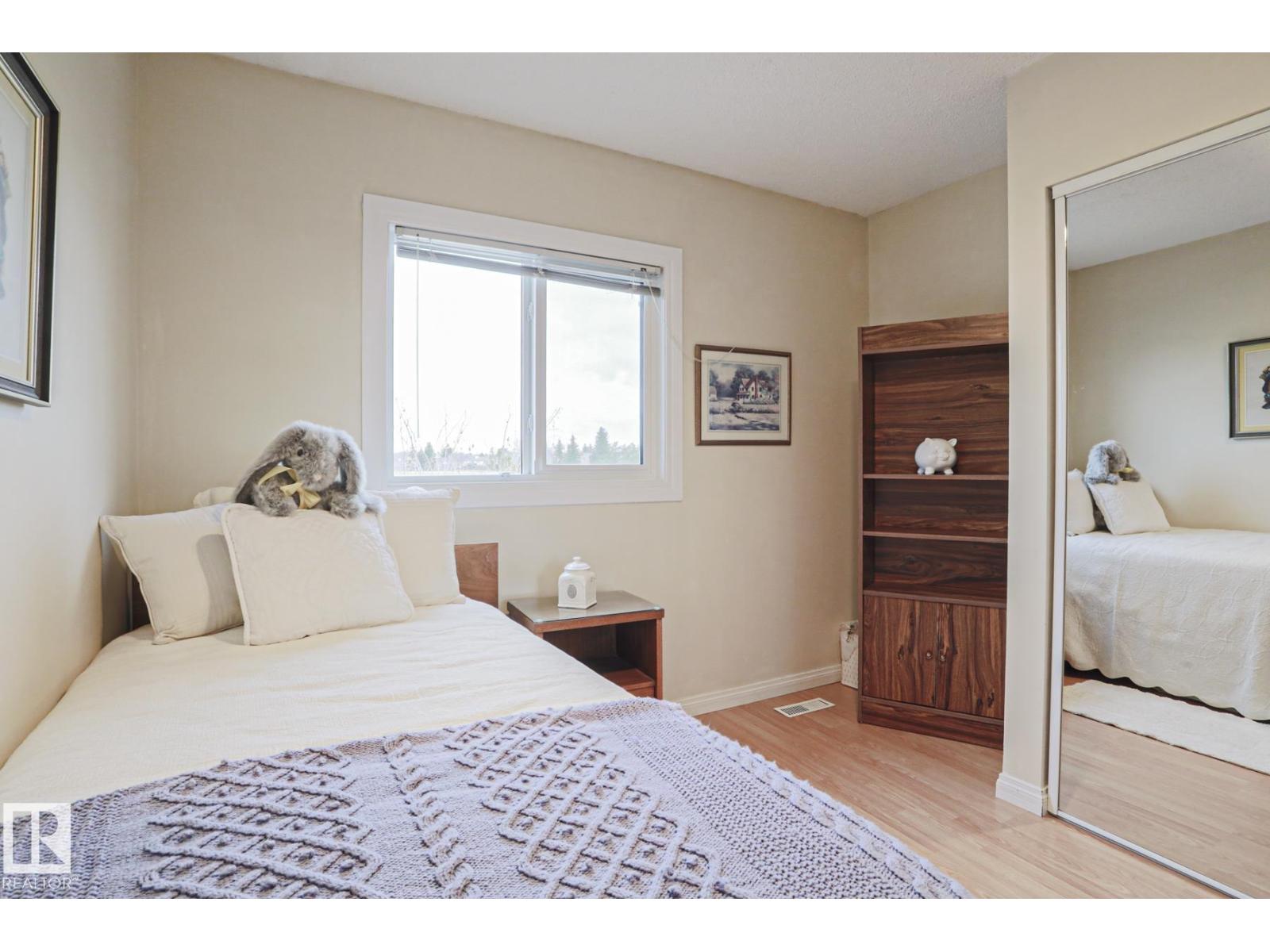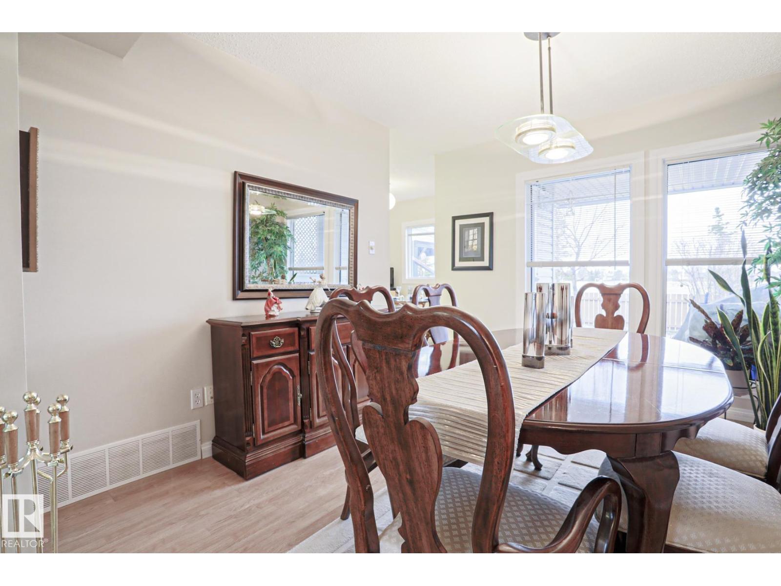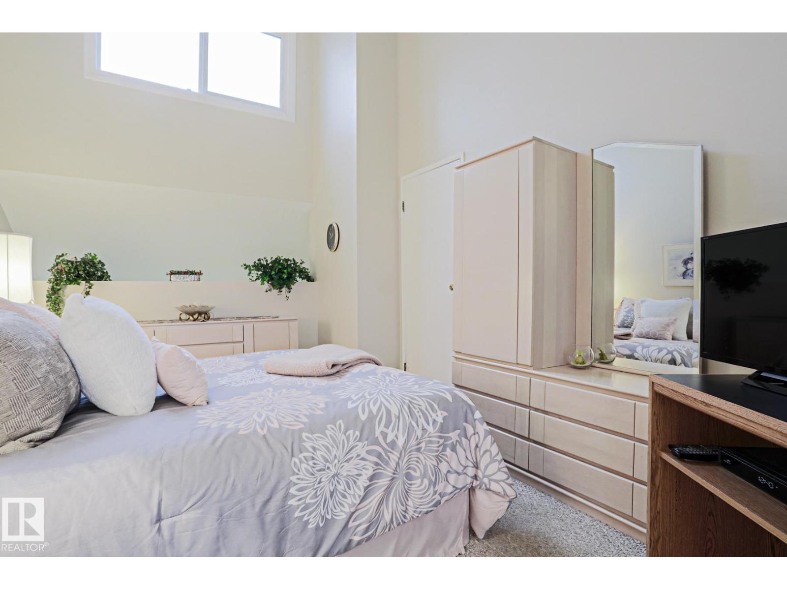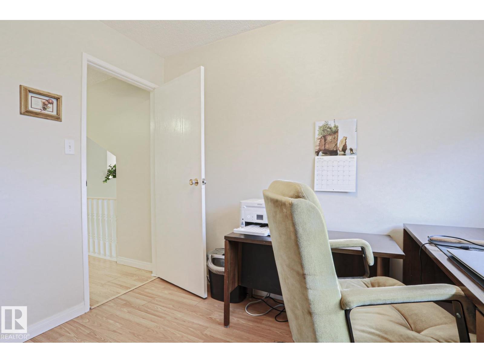 Cimarron Chase is one of South Edmonton's most architecturally pleasing townhome communities. This fine home features an inviting deck to admire the big sky park view. Inside you will appreciate the cozy living room with woodburning fireplace, soaring vaulted ceiling and huge windows. Semi-formal dining room overlooks the park out back and is ideal for special family gatherings. Galley style kitchen offers bright kitchen cabinets and plenty of counter space for the chef at heart. Delightful dinette is perfect for casual dining. Upper level has an exciting primary bedroom that you have to see in person with a unique loft style design, dual closets and your very own Juliet balcony with spectacular view of the western sunsets overlooking the peaceful Keheewin park! Two other bedrooms and a four piece bath complete the upper level. The basement family room, hallway and den just need flooring and you have everything you need including a 3 piece bath, laundry and ample storage! Two energized stalls too! (id:51989)