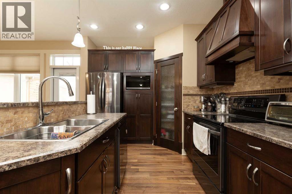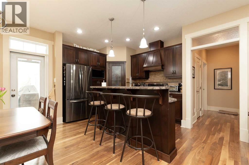 Welcome to 12 Cougar Cove N — a beautifully maintained bungalow built in 2009 offering 1,115 sq. ft. of thoughtfully designed living space in a quiet, family-friendly neighbourhood. The open concept main floor seamlessly connects the living room, dining area, and kitchen, all highlighted by rich hardwood flooring and impressive 9' ceilings that create a bright and spacious feel throughout. The kitchen features beautiful wood cabinetry and a full set of LG stainless steel appliances that are only three years old, making it both stylish and functional. The main floor offers two comfortable bedrooms and two full bathrooms, including a private primary ensuite. Downstairs, the fully developed basement adds even more living space with two additional bedrooms, a third full bathroom, and a large family room complete with a cozy gas fireplace and wet bar — perfect for entertaining or relaxing evenings at home. Brand new carpet throughout the basement adds a fresh and inviting touch. Step outside from the dining room onto the composite deck with a pergola, overlooking a nicely landscaped yard that includes a professionally designed space for an above-ground pool. The heated and insulated 22' x 25' attached garage provides plenty of room for vehicles, storage, and projects year-round. With its excellent layout, quality finishes, and peaceful location, this home offers the perfect blend of comfort and convenience. (id:51989)