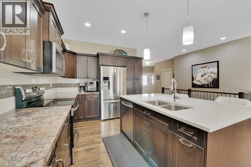 Original builder’s show home located on a quiet close in desirable Ryders Ridge, Sylvan Lake. This immaculate 1,272 sq. ft. bungalow sits on a pie-shaped lot beside a park area, offering added privacy and green space views. Located in a 45+ age-restricted close, this property is ideal for those seeking a quiet, low-maintenance lifestyle in a mature community setting.The home features hardwood and tile flooring, a maple kitchen with upgraded stainless steel appliances, central air conditioning, central vacuum, water softener, and convenient main floor laundry. The large primary bedroom offers a walk-in closet and a private ensuite complete with separate shower and soaker tub. A front office (or second bedroom) is located near another 4-piece bath.The unfinished basement is already equipped with operational in-floor heat and is perfectly laid out for future development. Outside you’ll appreciate underground sprinklers, a gas line to the BBQ, power awning over the deck, asphalt RV pad, and a finished, heated double garage. A rare opportunity to own a former show home in a prime Sylvan Lake location. (id:51989)