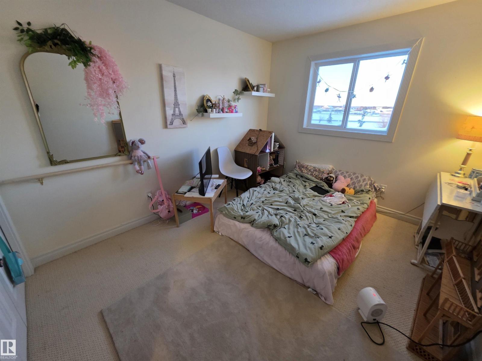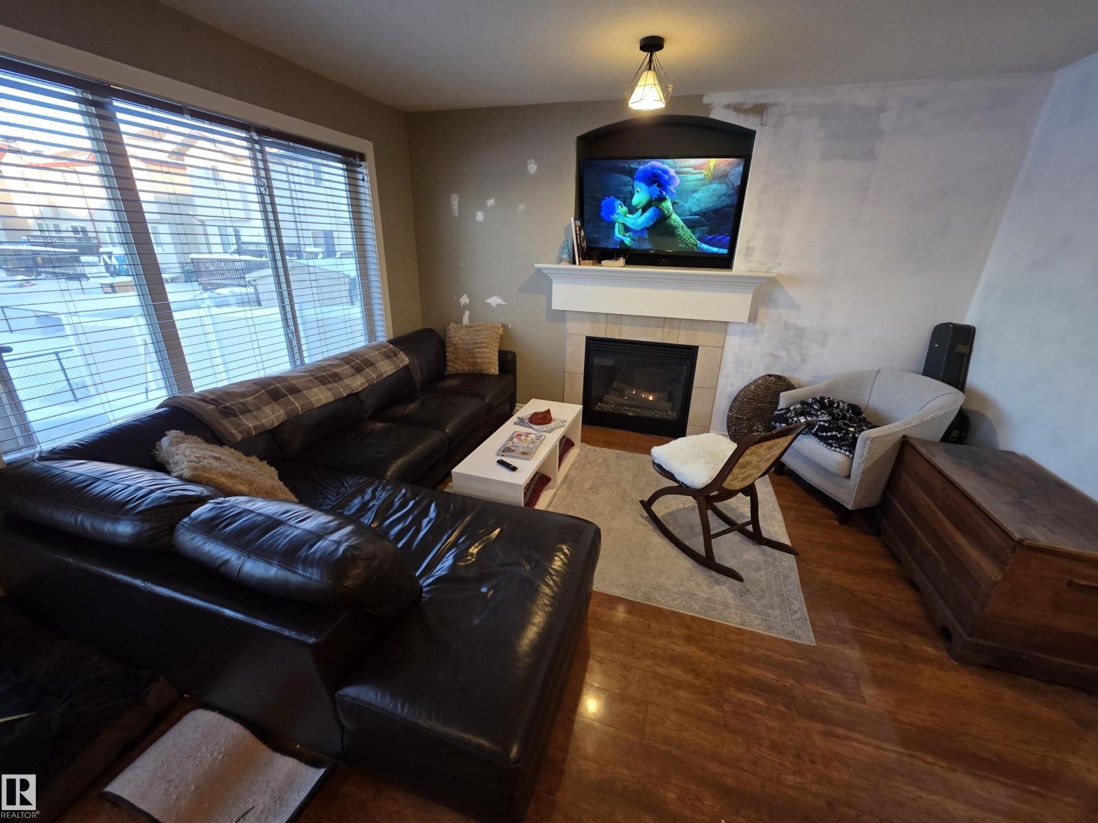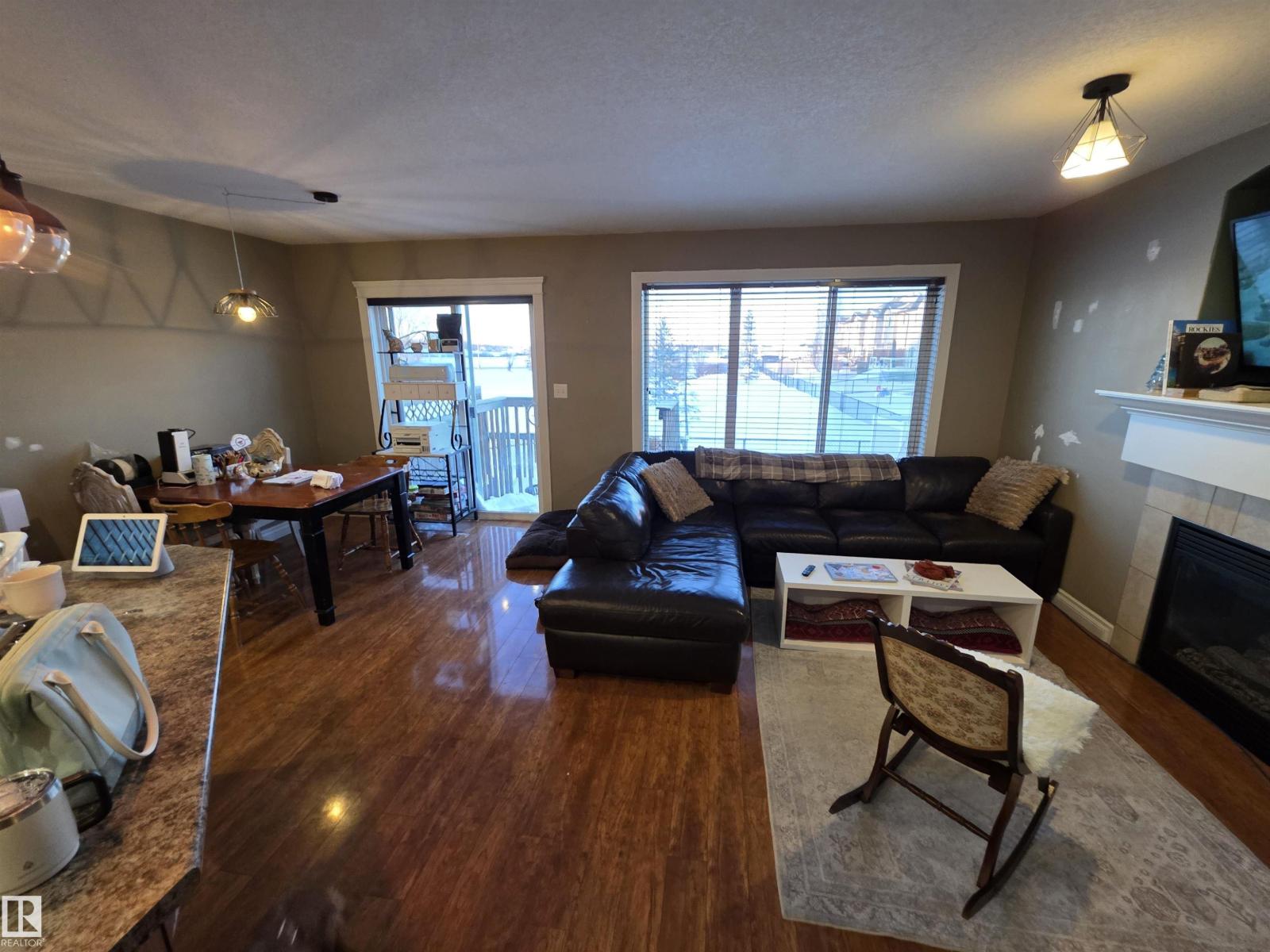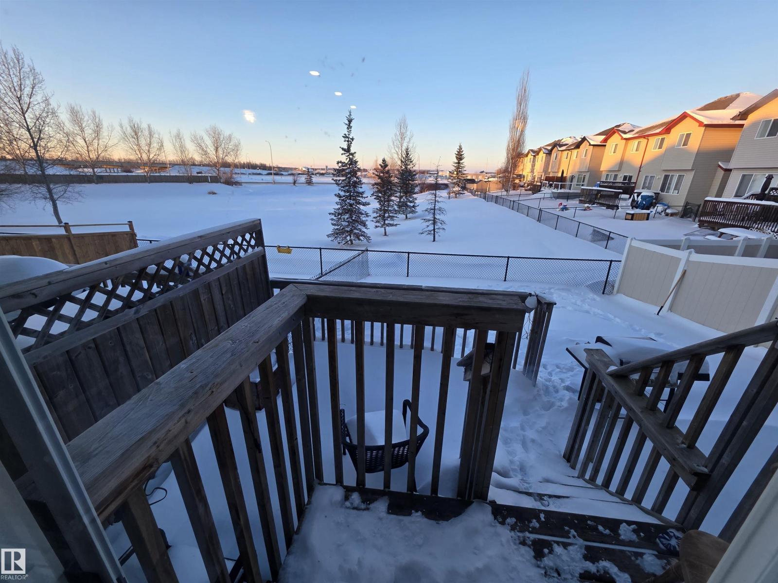 This 3 bedroom 2.5 bath half duplex has no condo or HOA fee's. It's features include: center island with raised eating bar, corner pantry, plenty of cabinets and open concept living room with gas fireplace. The upstairs has 3 bedrooms and the master bedroom is spacious and has a 4 pc ensuite. The basement is partially finished with a laundry room, roughed in plumbing and plenty of space to add a family room or 4th bedroom. Backing onto a green space this home is very private with no neighbors behind. Located close to shopping restaurants and all amenities. Quick access to Hwy 16A. NOTE: This property is in need of some new flooring and paint touch-ups. It is priced to reflect that. (id:51989)