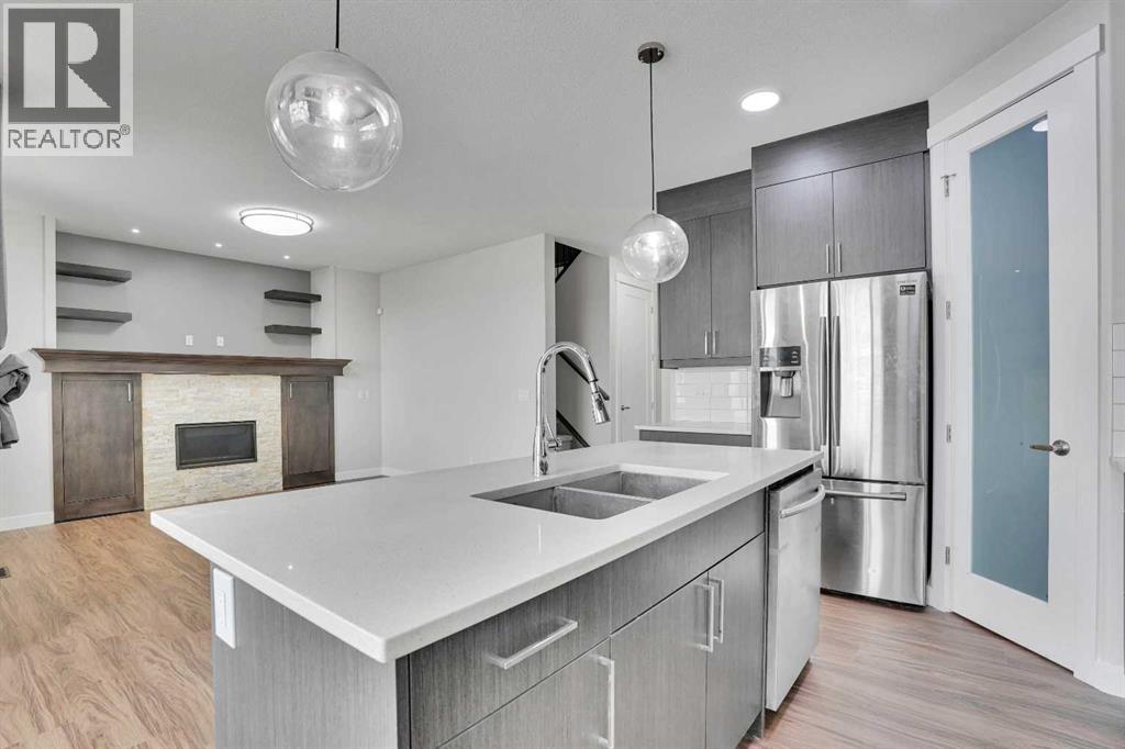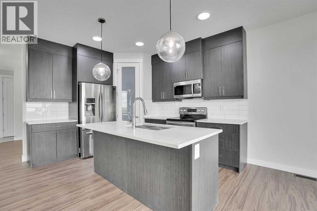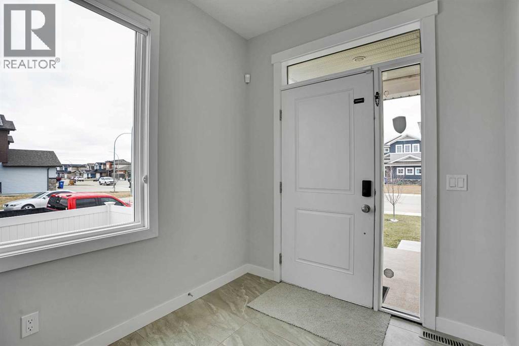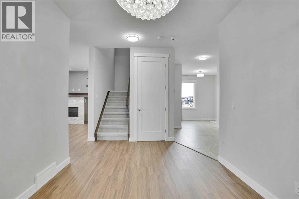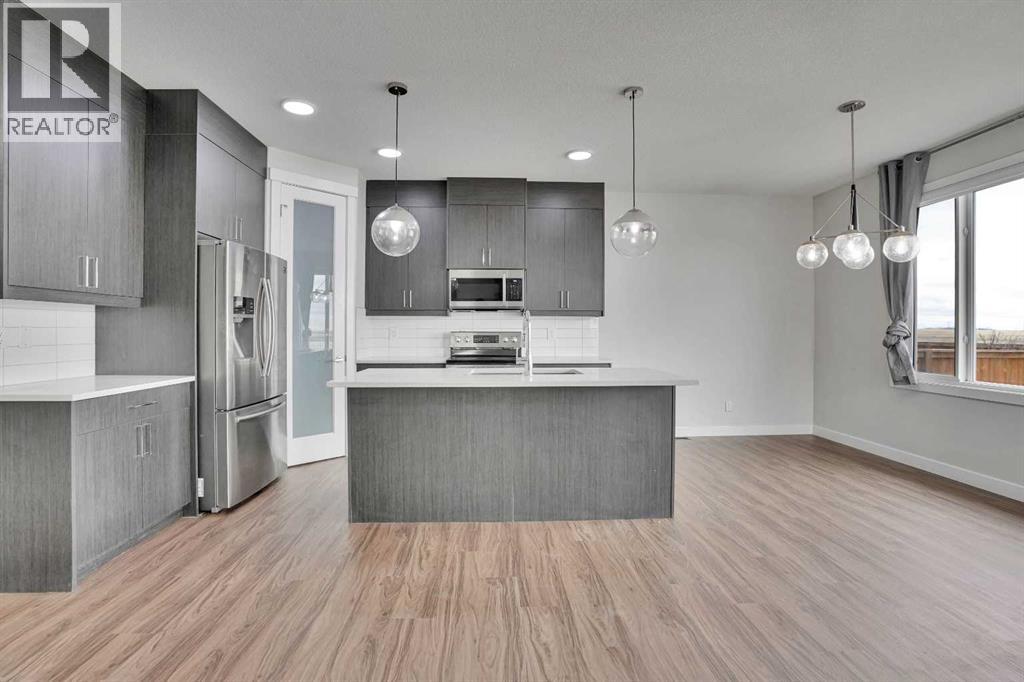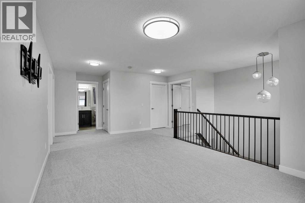 Step into a home that stands out from the moment you arrive. Positioned on a premium corner lot in Iron Ridge, Crossfield, this former show home blends style, space, and everyday functionality, just 20 minutes north of Calgary, yet offering a calm, small town lifestyle that feels worlds away from the city pace.Inside, you are welcomed by a bright, open concept layout designed for real living. The main floor features a versatile flex space, ideal for a home office or playroom, along with a stunning gas fireplace and a seamless flow between the kitchen, dining, and living areas, perfect for both quiet evenings and entertaining guests. Large windows throughout the home bring in an abundance of natural light, enhancing the open feel, while rear access leads to a spacious deck with gas hookup and a fully fenced yard, creating a private outdoor space to relax, host, or unwind.Upstairs, the home continues to impress with three generously sized bedrooms, a spacious bonus room, and the convenience of upper floor laundry. The primary suite serves as a true retreat, featuring a walk in closet and a beautifully appointed five piece ensuite with a soaker tub, separate shower, and dual sinks, offering both comfort and functionality.As a former show home, this property is loaded with upgrades that set it apart from typical offerings. Central air conditioning is already installed for year round comfort, while the oversized double garage with high ceilings adds both function and value. Hardwood and tile flooring enhance the main level, and with fresh paint and newer carpets throughout, the home is truly move in ready. The fully developed lower level adds additional living space and includes a well finished bathroom, offering flexibility for a variety of uses.Situated on a corner lot with no neighbors directly behind, this home offers added privacy along with a fully fenced yard and rear alley access, giving you both space and versatility.Located within walking distance to schools, parks, and green spaces, this home offers the perfect balance of convenience and tranquility. Enjoy open skies, peaceful surroundings, and a slower pace of life, all while being just 15 minutes to Airdrie with quick access to QE2.Homes like this, corner lot, former show home, fully upgraded and move in ready, rarely stay available for long. If you have been waiting for the right one, this is it. (id:51989)