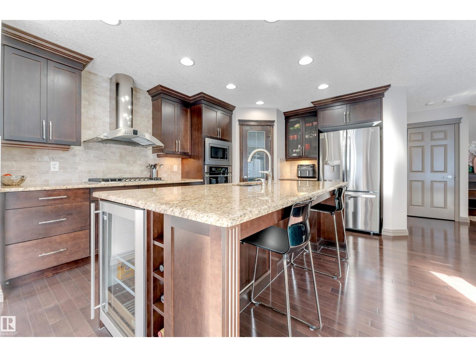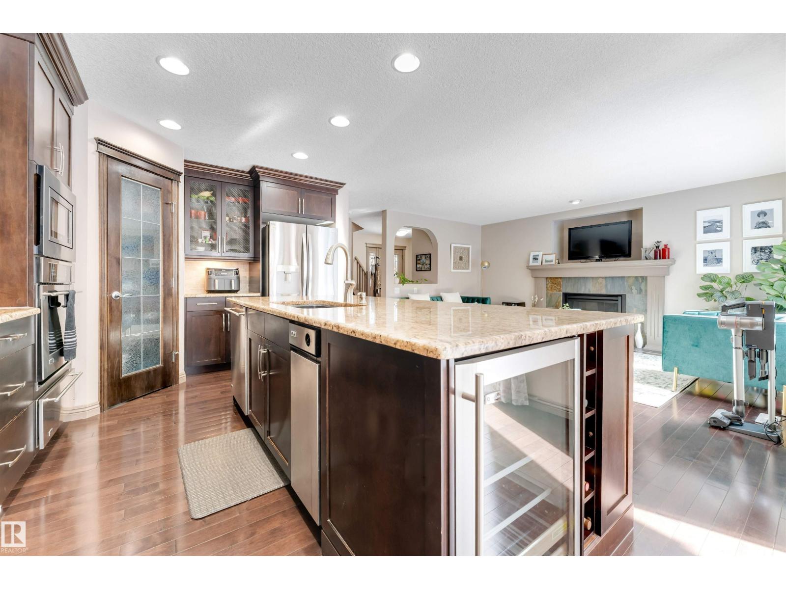 Beautiful Jayman-Built 2-Storey Home in Quiet Cul-de-Sac – Rutherford. Well-maintained home located in a quiet cul-de-sac in the desirable Rutherford community. This east-facing property features elegant hardwood flooring on the main floor, staircase, and bonus room, creating a warm and inviting atmosphere. The main floor offers a chef’s kitchen complete with stainless steel appliances, gas stove, built-in microwave and convection oven, a large kitchen island, and a convenient corner pantry—perfect for cooking and entertaining. The spacious living room is highlighted by a cozy gas fireplace. Upstairs you’ll find a large bonus room with surround sound speakers, ideal for a home theatre or family space. The huge primary bedroom provides a comfortable retreat. Excellent location close to schools, shopping, parks, and public transit. Quick access to Highway 2 and only a short drive to the airport. Conveniently located near major amenities Amazon & commercial. Must See !!! (id:51989)