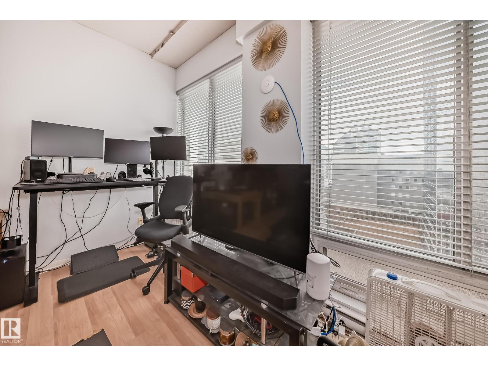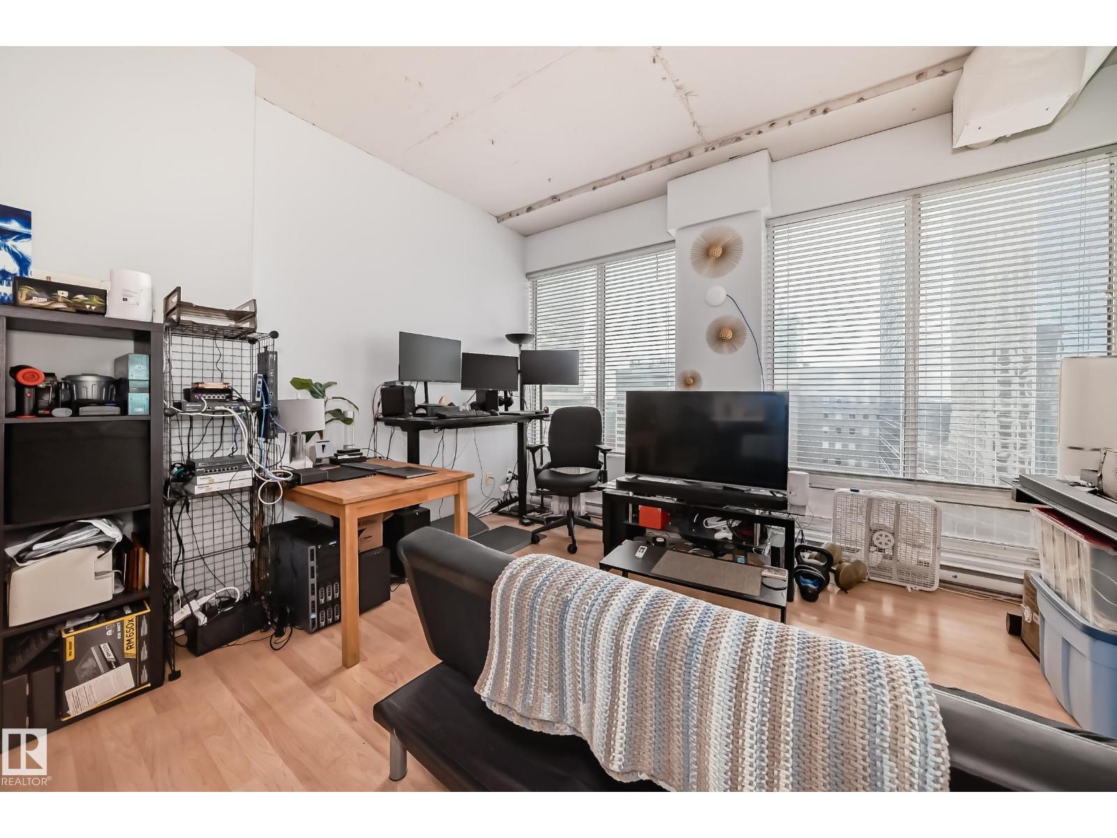 Welcome to urban living at its finest in the heart of downtown Edmonton! This modern loft offers stunning city views and an unbeatable location just steps away from the vibrant Ice District and Churchill square. This 1 bedroom, 1 bathroom home features an open concept layout with high ceilings that create an airy and spacious feel. The central LRT station is conveniently accessible right from the building, making it easy to explore all that downtown has to offer. Whether you're a young professional looking for a trendy urban oasis or a couple seeking the ultimate in convenience and style, this downtown loft is sure to impress. Steps from the funicular, River Valley trails & City Centre Mall. (id:51989)