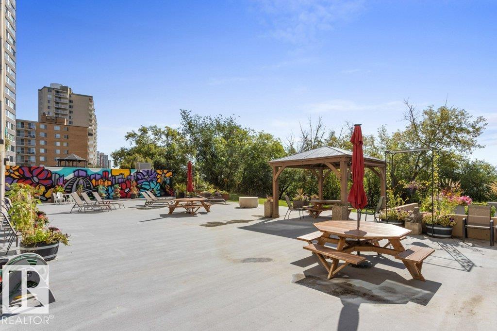 URBAN LIVING AT ITS BEST! This meticulously maintained, CARPET-FREE condo offers stunning, sunny SOUTH-FACING VIEWS of the RIVER VALLEY & City Skyline from the private balcony. The spacious open-concept layout provides flexible living, dining and work-from-home space. Features include: IN-SUITE STORAGE, STAINLESS STEEL APPLIANCES, AIR CONDITIONING & UNDERGROUND PARKING. Solid CONCRETE BUILDING with excellent amenities: Fitness Centre, Saunas, Social Room, Car Wash & a large outdoor patio with garden plots and cooking area. Exceptionally walkable location close to restaurants, cafés, shopping, transit, river valley trails, University of Alberta & MacEwan University. CONDO FEE INCLUDES ALL UTILITIES (heat, water, electricity). Well-managed condo association w/ updated lobby & hallways. Onsite Manager too! (id:51989)