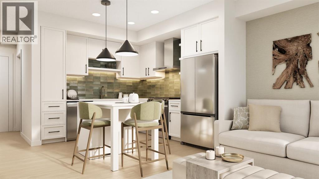 *Pre-selling and slated for first occupancies in late 2027* FIRST TIME HOME BUYERS NEW HOME GST REBATE AVAILABLE!! Smart, stylish, and exceptionally versatile, Unit B at Metro One is designed for modern living. This 1-bedroom + den layout offers the perfect balance of function and flexibility—ideal for urban professionals, remote workers, and lifestyle-focused buyers seeking a space that adapts to their needs. Inside, the thoughtfully designed interior features a contemporary L-shaped kitchen complete with a full island and a built-in table—perfect for casual dining, working from home, or entertaining guests. A sleek cabinet-style pantry keeps everything organized without sacrificing space, while the bathroom includes a practical tower linen cabinet for added storage. The spacious den provides incredible flexibility, easily transforming into a dedicated home office, guest room, or creative studio. Paired with air conditioning for year-round comfort and a terrace-level balcony for seamless indoor-outdoor living, this home delivers both convenience and comfort in every detail. Whether you’re enjoying your morning coffee outside or hosting friends in your open-concept living space, Unit B is designed to support your lifestyle. Inside every home, professionally curated interior collections—crafted by an experienced design team with six distinct styles to choose from, you can select a look that reflects your personal taste without the added cost or stress of upgrades. At Metro One, style truly comes standard. Located within the thoughtfully planned Metro One development, residents benefit from contemporary architecture, quality construction, and beautifully landscaped surroundings. The community is designed with connection and convenience in mind, offering easy access to nearby shops, restaurants, transit, and recreational amenities. Positioned for both lifestyle and location, Metro One offers quick access to Stoney Trail and is surrounded by natural beauty. The protecte d Priddis wetlands lie just to the east, while the foothills and Rocky Mountains are only a short drive west—making it easy to enjoy both urban convenience and outdoor adventure. Developed by Cardel in the master-planned community of Silverton, Metro One represents a smart investment and a vibrant place to call home. (id:51989)
