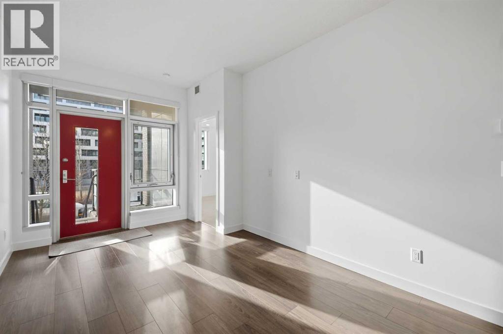 **OPEN HOUSE 1-3 PM SATURDAY 28th FEB** This GROUND-FLOOR TWO BEDROOM, TWO BATHROOM apartment offers a rare layout with a PRIVATE EXTERIOR ENTRANCE.Inside, the layout is OPEN AND FUNCTIONAL, with LARGE WINDOWS bringing in steady natural light throughout the day. The living and dining areas connect directly to TWO SPACIOUS PATIOS, providing excellent outdoor space for daily use, entertaining, or pets.The KITCHEN is clean and modern with STREAMLINED CABINETRY, CONTEMPORARY FINISHES, and a FULL-WIDTH ISLAND that works well for meals and gathering.The PRIMARY BEDROOM includes a WALK-THROUGH CLOSET leading to a private ENSUITE BATHROOM. The SECOND BEDROOM features a BUILT-IN MURPHY BED, allowing the room to function comfortably as a bedroom, office, or flex space.Additional features include IN-SUITE LAUNDRY, AIR CONDITIONING, an OVERSIZED CORNER TITLED UNDERGROUND PARKING STALL , SEPARATE STORAGE LOCKER, and SECURE BIKE STORAGE.The building offers a wide range of shared amenities, including TWO FITNESS ROOMS, YOGA STUDIO, SPIN STUDIO, ROOFTOP PATIO, CAR WASH, and DOG WASH STATION.Gyms located on Floors 1 and 3; yoga and spin studios on Floors 4 and 5; bike storage, storage locker, and dog wash on P1; parking on P2.Located in BRIDGELAND, the property is within walking distance to RESTAURANTS, COFFEE SHOPS, GROCERY STORES, PARKS, and the C-TRAIN STATION, offering practical access to daily amenities and transit.Well suited for OWNER OCCUPIERS OR INVESTORS seeking a low maintenance property with strong functionality and location. (id:51989)