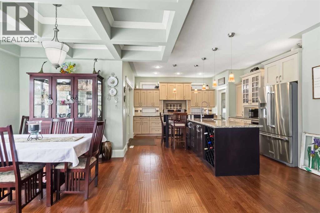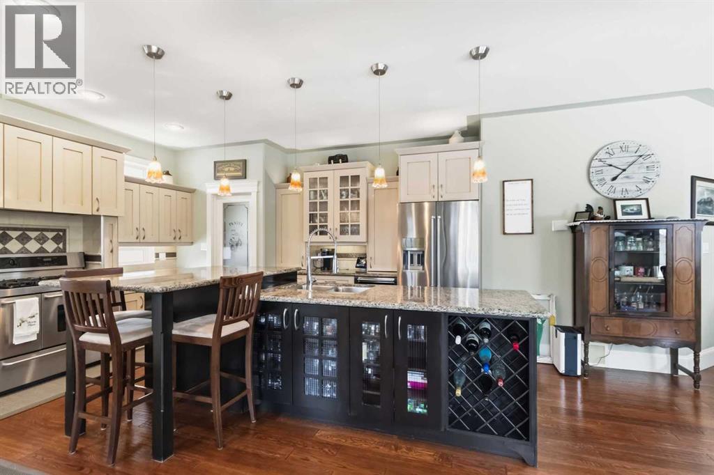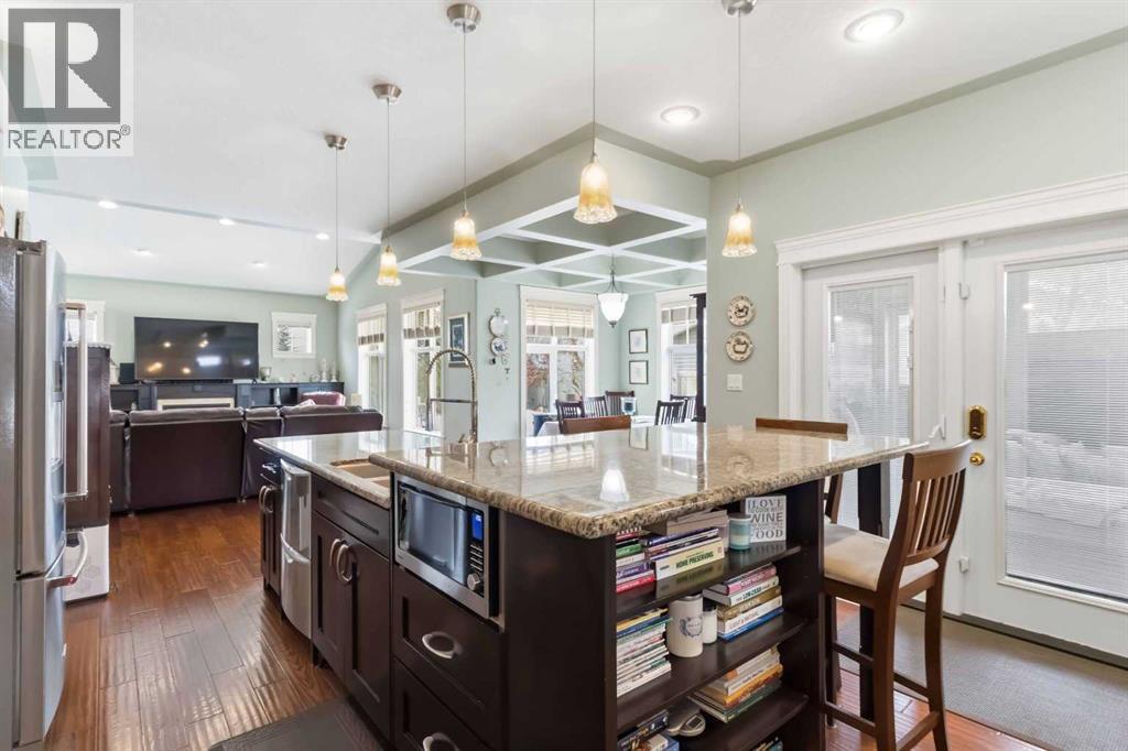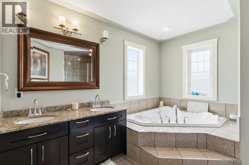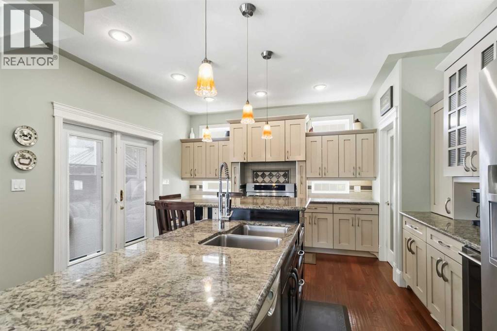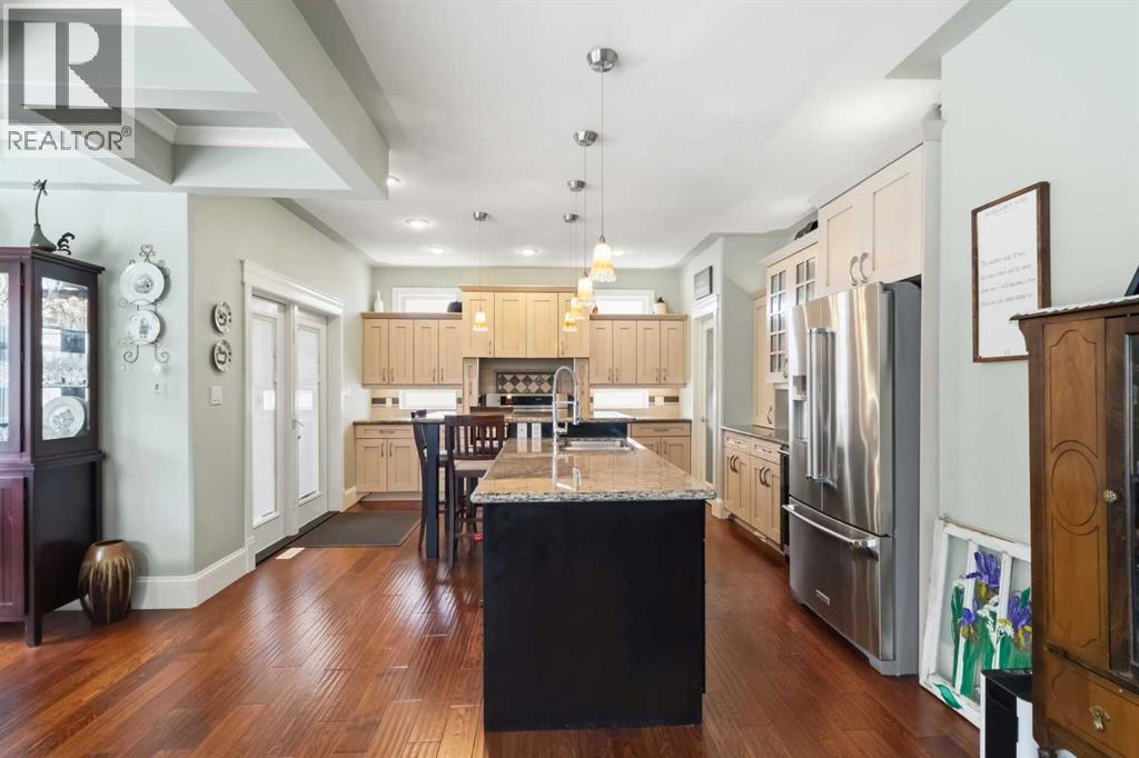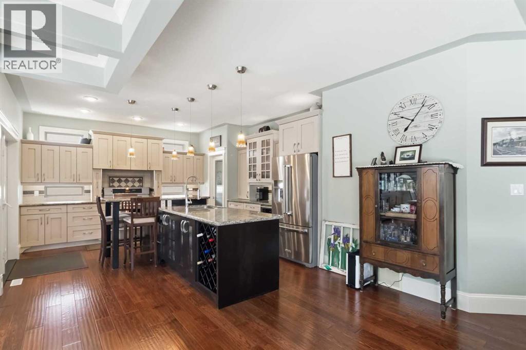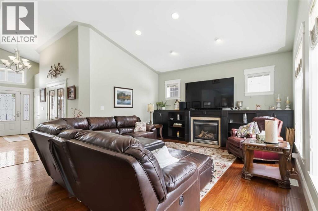 Open house Saturday April 25th 1-3 pm. TIMELESS MASTERPIECE, IN A QUIET CUL DE SAC, COMPLETE WITH ALL THE MOST WANTED FEATURES AND SITUATED ON A PIE SHAPED LOT. One-of-a-kind CUSTOM-BUILT HOME with over 3600 SQ FT OF LIVING SPACE. Step into this stunning home that you enter into a large front foyer featuring vaulted ceiling, this area leads you to a front office with double French doors, hardwood floors. The Hardwood floors continue throughout the main level living area. The great room features gas fireplace with built in cabinets. This open concept living area continues with a stunning dining room with coffered ceiling, Then a Custom kitchen featuring built in appliances, 6 top gas stove, wine cooler, double drawer dishwasher, granite countertops, eat up breakfast bar, and a huge walk through pantry with even room for a stand-up freezer. Just off the kitchen you have a heated all season sun room that overlooks your private yard and features a fireplace. The Main floor laundry room offers tons of built in cabinets and counter top space. The Gorgeous staircase covered in hardwood leads you to your upper level that offers 3 bedrooms all with hardwood floors. The Primary bedroom a gas fireplace, garden doors to a private balcony, and a walk in closet with custom built in shelving, a 5 pc ensuite with double sinks, tile floors, and air tub. The Lower level offers a place where you will entertain your guests. This space offers engineered hardwood floors, a sit up wet bar, pool table and games room , and a soundproofed theatre room. Your family will be the envy of the neighborhood with this lower level. The lower level is complete with a large 4th bedroom and full bathroom with heated floors. This no carpet home, has additional features of hot water on demand, solid core doors, new upgraded triple glaze windows, new furnace in 2025, central a/c, central vac, oversized double attached garage with a new garage heater in past 3 years. The exterior of the home features, a pr ivate and landscaped yard, with tons of mature trees and shrubs, a fenced yard with gates, RV parking, extra wide exposed aggregate driveway and walk way, plus , 2 tired deck that is wired for a Hot tub. Pride of ownership shines through this home that has been completed with Timeless finishing's from top to bottom. All of this and perfectly located within walking distance of trails, parks, schools and shopping. Call today for your personal tour. (id:51989)
