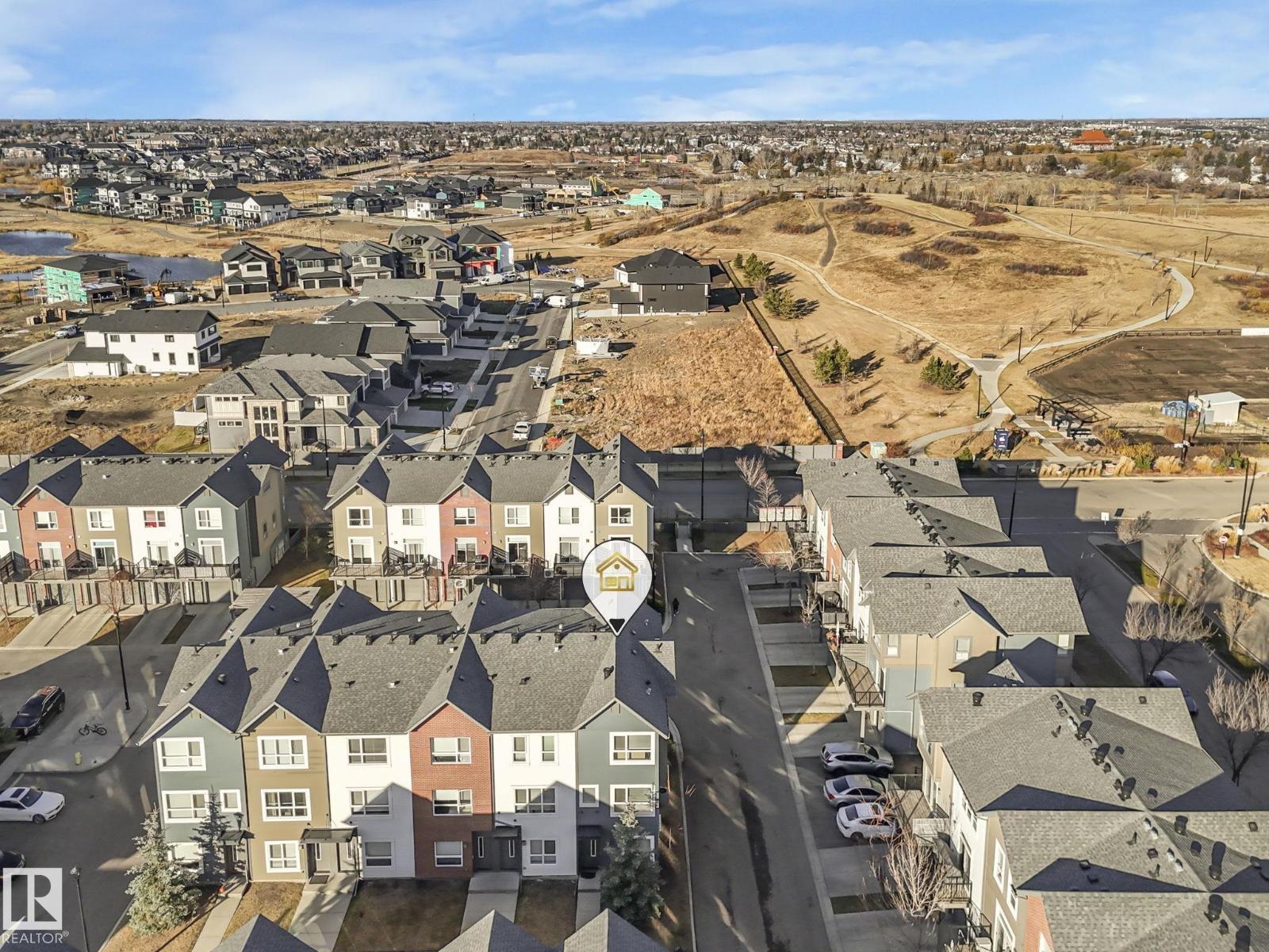 Welcome to this spacious and modern 3-story END UNIT townhome in the centre of Griesbach with AC! Stepping inside, everything you are looking for in your next home is here. On the lower level is a den, a 2-piece bathroom, storage, and access to your OVERSIZED SINGLE ATTACHED GARAGE! Upstairs is the main living area, greeted with the kitchen with quartz countertops, S/S appliances, and the centre island as the focal point. From the kitchen is direct access to your private BALCONY! Situated is the dining room & living room with massive windows bringing in tons of natural light. Upstairs are 2 well-sized bedrooms. The primary bedroom offers direct access to the 4-piece ensuite and HIS & HERS closets. On the other side of the home is the second bedroom separated by the shared 4 pc bathroom and a second flex/den space on the upper floor! Located 15 mins from downtown, nearby schools, walking trails, and shopping along 97 ST & Northgate Centre. Professionally managed complex with LOW CONDO FEES of $328/mo. (id:51989)