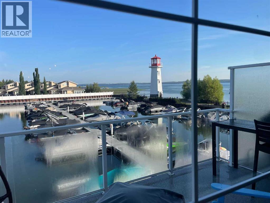 AFFORDABLE WATERFRONT CONDO with reasonable low condo fees of $335/month ! Treat your eyes with beautiful lake front living at its finest, with stunning VIEWS TO WAKE UP TO and all day long plus into the night. ONLY ONE UNIT AWAY FROM THE LIGHTHOUSE PROMENADE right on the lake and the marina and next to Friday FARMERS MARKET! This fabulous 3 bedroom 4 bathroom townhome with 9' HIGH CEILINGS and attached GARAGE/FAMILY ROOM is located right on the WATERS EDGE MARINA in Sylvan Lake. Enjoy the PLEASANT MORNING VIEWS and SUNSETS from the large upper deck and lower patio and WHILE LAYING IN BED.! This amazing GATED COMMUNITY property is just steps from all DOWNTOWN RESTAURANTS AND SHOPPING. There is a public park and beach area just steps from the front door, with the main beach and pier only a block away. The main floor consists of a heated single garage/family room with convenient 2 piece bathroom, a flex room (BEDROOM/GYM/den/office/bedroom/craft room with it's own separate entrance), large storage closet, EPOXY GARAGE FLOOR finishing, and a rear access door to a covered concrete patio overlooking the Marina. The second floor is gorgeous with an abundance of natural light streaming through the windows that overlook the lake, finished in vinyl plank flooring,-ideal for lakeside living. The kitchen has ample cabinet and counter space-finished with QUARTZ COUNTER TOPS, soft close cabinets and stainless steel appliances (including a GAS STOVE with double oven) and REVERSE OSMOSIS drinking tap. Cozy up in the living room after a day on the lake in front of the inviting FIREPLACE, or enjoy the panoramic views from the large upper deck accessed from the the living room. Upstairs you will find two good sized bedrooms including a primary suite (with lake views right from your bed), a walk-in closet and a 5 piece ensuite, a second bedroom, a 4 piece main bathroom, and top floor LAUNDRY with washer/dryer completing the upper floor. CENTRAL AIR CONDITIONING will keep you cool on those warm summer days. Other great features include central vac roughed in, natural gas line to the upper and lower decks. WAKE UP HAPPY to be in such a paradise...one of the most affordable options for living right on the water currently listed for WELL UNDER 2025 Appraised value and Municipal Assessment -SHORT TERM and long term rentals are allowed. (id:51989)