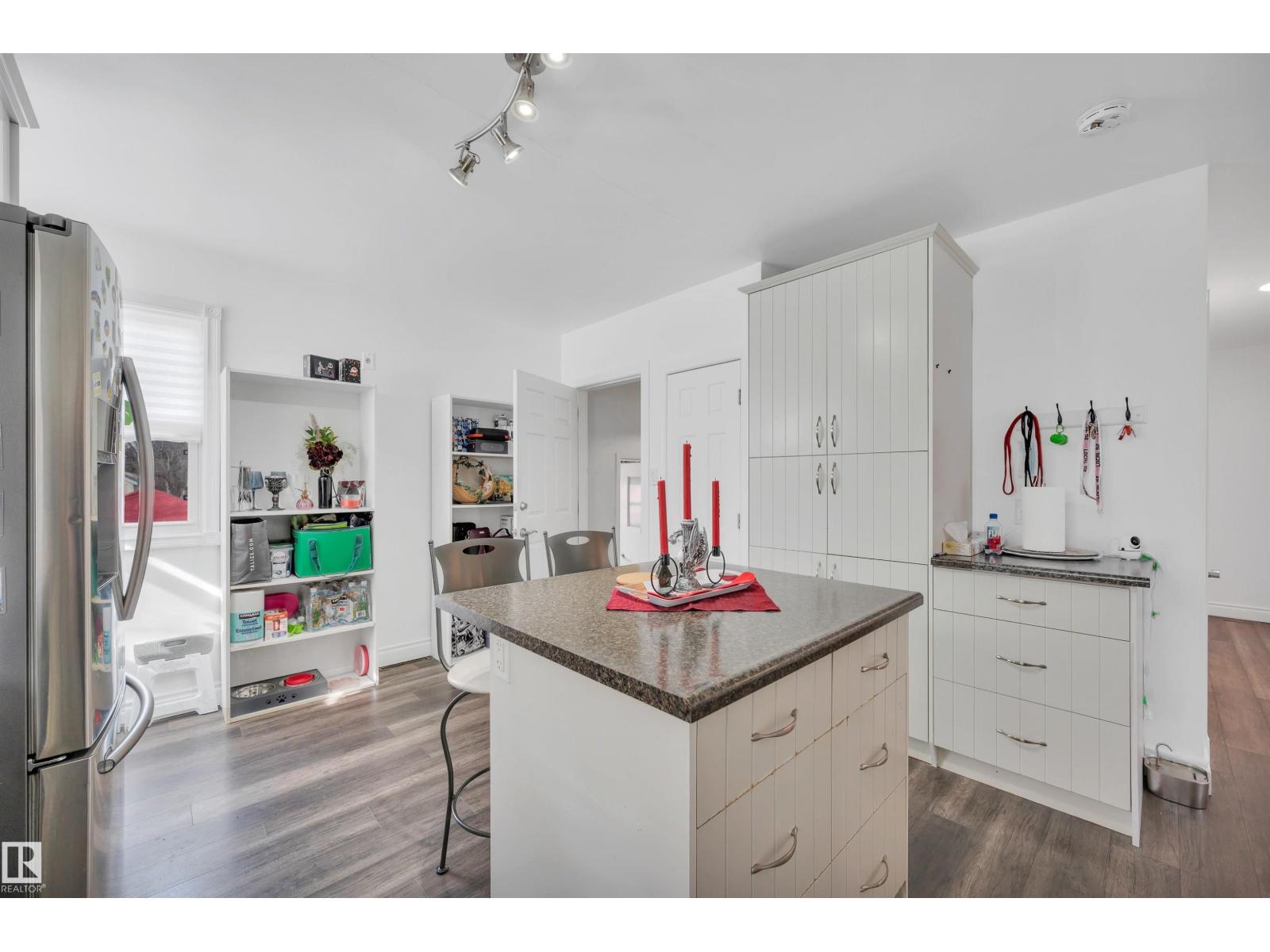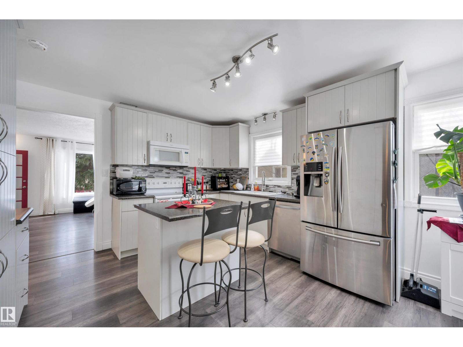 Remarkable home with 6 beds and 3 baths has loads of appeal! Welcome to Elmwood Park, this home is on a quiet street just steps away from the Park/playground.Easy commuting access to Wayne Gretzky drive or the Yellowhead.If you are looking for a solid family home with some major updates, look no further-Major reno 2016( 160,000 spent)-The windows have all been done, all flooring upgraded, and recent paint, fixtures etc throughout.Stepping into this home you will notice the abundance of natural light, and a great floorplan.Some SS appliances and lots of countertops in this eat in kitchen design.2 large bedrooms,a bath and livingroom for entertaining.Upstairs we have 2 more bedrooms, another bath and a second livingroom.Downstairs with access thru the back door we have a bath, 2 beds, den and large rec room area with suite potential ( 2 furnaces in place).This is a rare style in this area,single o/s garage as well,lots of extra parking out back off the alley! (id:51989)
