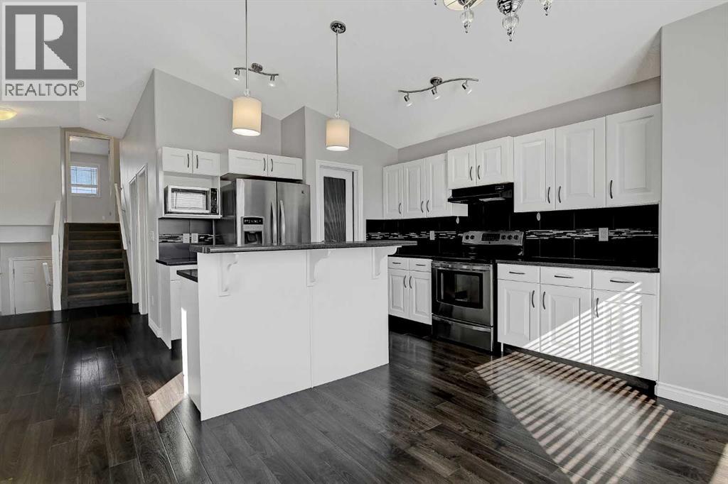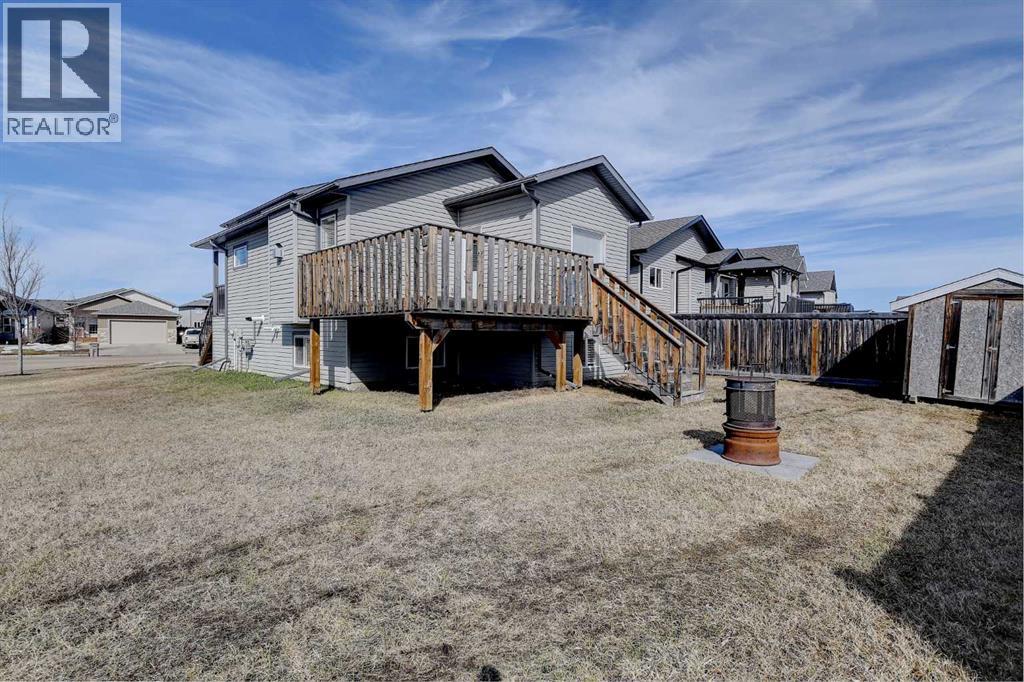 Fully developed modified bi-level in desirable Royal Oaks, ideally positioned on a corner lot with no rear neighbors. This 1,220 sq ft home offers 4 bedrooms and 2.5 bathrooms, including a private primary retreat above the garage featuring a jetted tub ensuite. The main floor showcases a bright, open-concept design with a cozy gas fireplace, spacious kitchen with ample cabinetry and counter space, and a large walk-in pantry—perfect for everyday living and entertaining. Step out from the dining area to a generous deck, ideal for relaxing or hosting. The fully finished basement adds a comfortable family room, two additional bedrooms, full bathroom, and laundry with plenty of storage. Complete with a heated double car garage and potential for RV parking, this property combines comfort, functionality, and location—conveniently within walking distance to both Catholic and Public schools, immediate possession available - this home is move in ready! (id:51989)