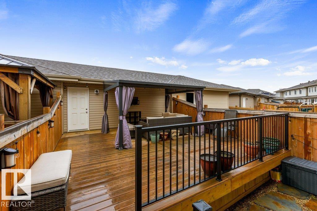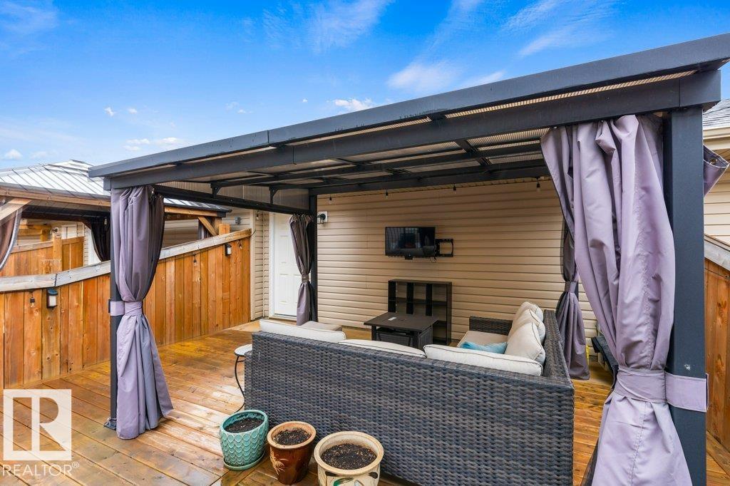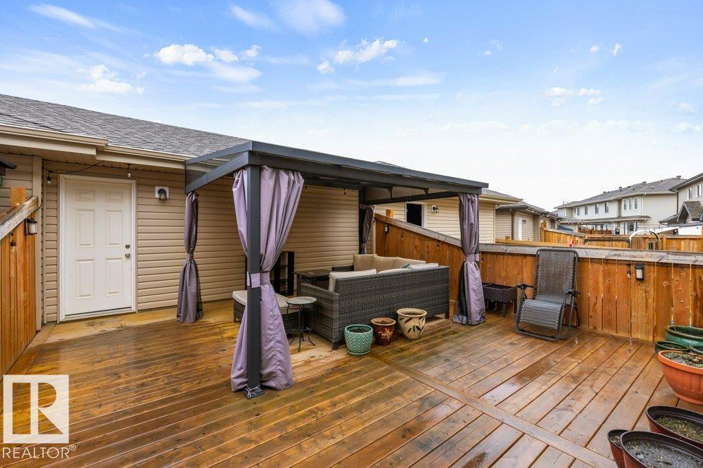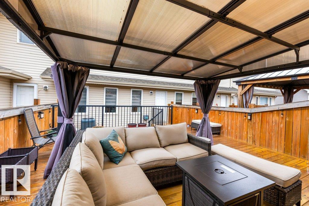 Modern Beauty Shows like new! With over 1527 square feet plus a PROFESSIONALLY FINISHED BASEMENT! Loaded with upgrades, Featuring a spacious open floor plan with luxury vinyl plank flooring, enjoy the cozy living room with fireplace. STUNNING KITCHEN! huge island and gorgeous QUARTZ counter tops, stainless steel appliances with large dining area. Finishing the main floor with a 2 pc bathroom. Upstairs are 3 great sized bedrooms, laundry area, and a beautiful 4 piece bathroom. The Primary Bedroom offers a GORGEOUS ENSUITE and a walk-in closet. Amazing basement with family room and bar area, plus potential for 4th bedroom as well! Gorgeous 3 piece bathroom & storage space. This home has CENTRAL AIR-CONDITIONING too, a MASSIVE DECK with gazebo, plus a Double detached Garage. Located in one of Sherwood Park's most popular communities in Summerwood, close to parks trails, shopping & more! (id:51989)