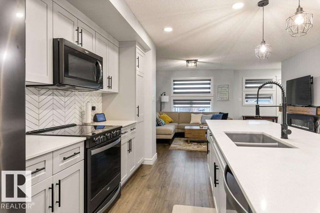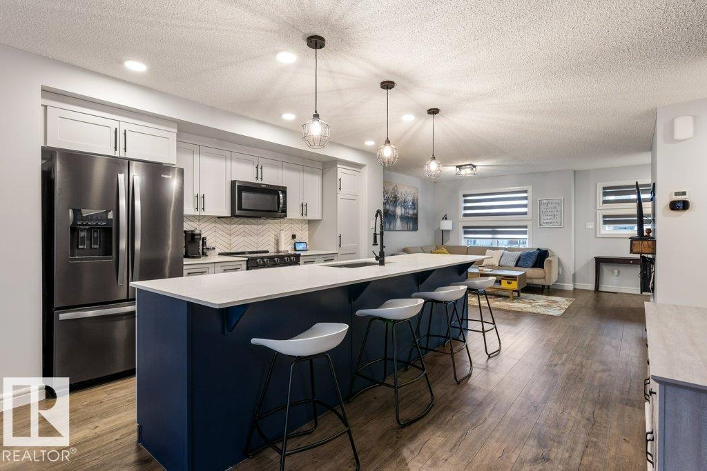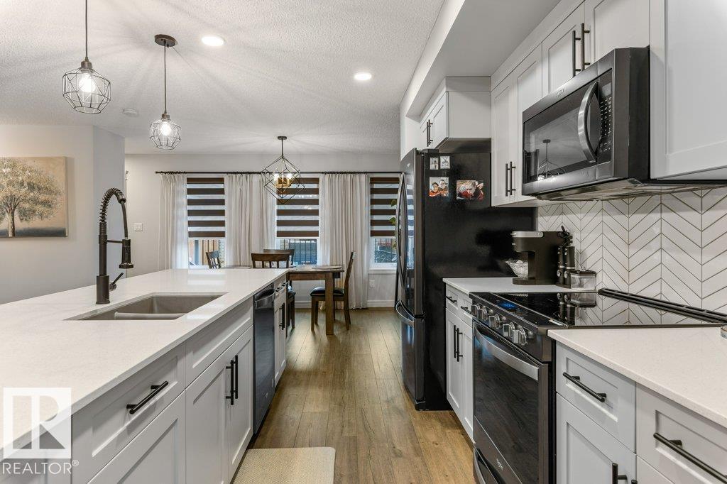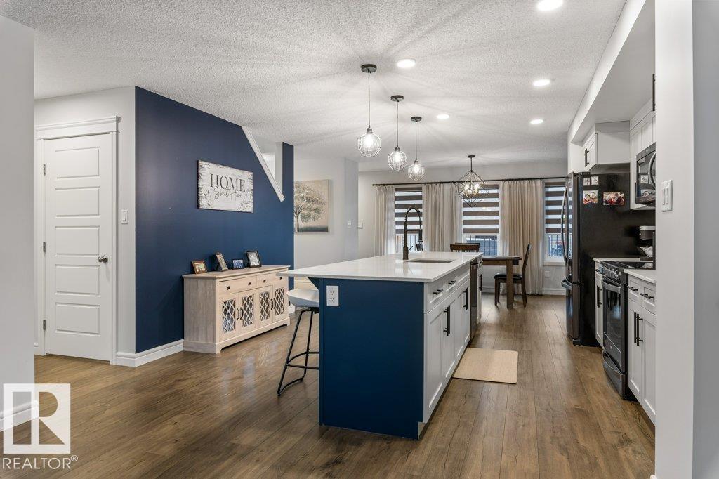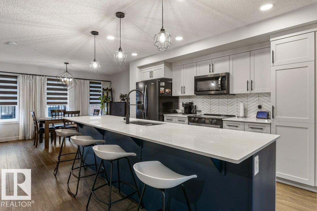 Modern Beauty Shows like new! With over 1527 square feet plus a PROFESSIONALLY FINISHED BASEMENT! Loaded with upgrades, Featuring a spacious open floor plan with luxury vinyl plank flooring, enjoy the cozy living room with fireplace. STUNNING KITCHEN! huge island and gorgeous QUARTZ counter tops, stainless steel appliances with large dining area. Finishing the main floor with a 2 pc bathroom. Upstairs are 3 great sized bedrooms, laundry area, and a beautiful 4 piece bathroom. The Primary Bedroom offers a GORGEOUS ENSUITE and a walk-in closet. Amazing basement with family room and bar area, plus potential for 4th bedroom as well! Gorgeous 3 piece bathroom & storage space. This home has CENTRAL AIR-CONDITIONING too, a MASSIVE DECK with gazebo, plus a Double detached Garage. Located in one of Sherwood Park's most popular communities in Summerwood, close to parks trails, shopping & more! (id:51989)