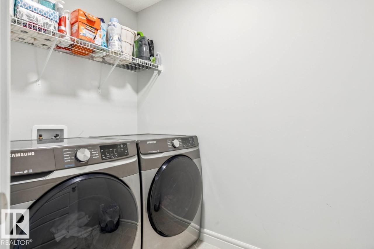 Welcome to this beautiful 2019-built home in the desirable community of Trumpeter, offering 1,588 sq ft of thoughtfully designed living space. This bright and modern 3-bedroom, 2.5-bath home features stunning white sparkle quartz countertops throughout, adding a clean and elegant touch to the open-concept layout. Large windows flood the home with natural light, creating a warm and welcoming atmosphere. Enjoy year-round comfort with central air conditioning, and the convenience of a two-car attached garage. Step outside to a fully landscaped yard complete with a deck and fenced backyard, perfect for relaxing or entertaining. Backing directly onto a peaceful green space, this home offers added privacy and a beautiful natural view. Beautiful walking paths near big lake with a liquor store, daycare, drug store & pizza place just a 3 minute walk away! With easy quick access to Yellowhead & Anthony Henday! (id:51989)