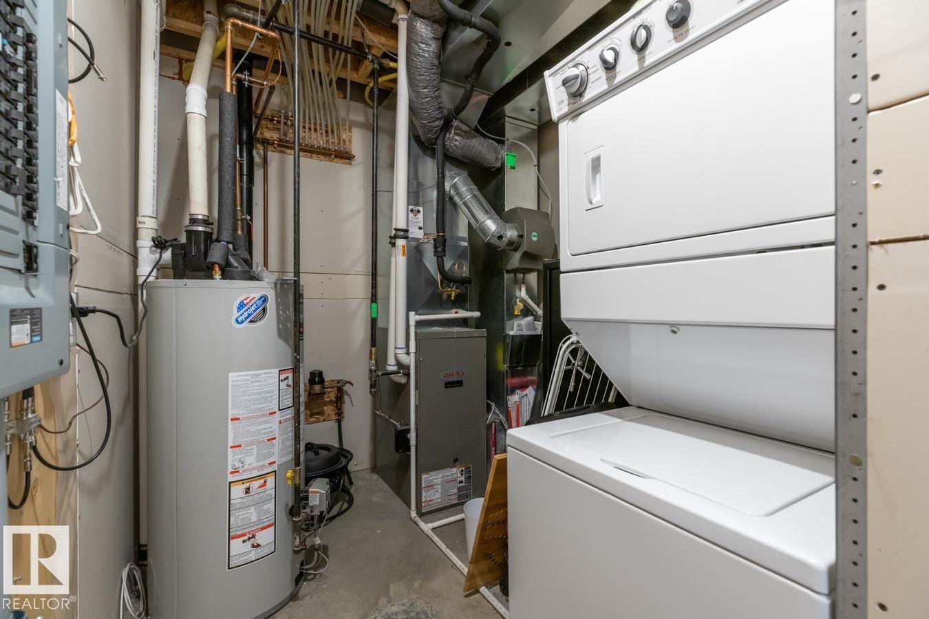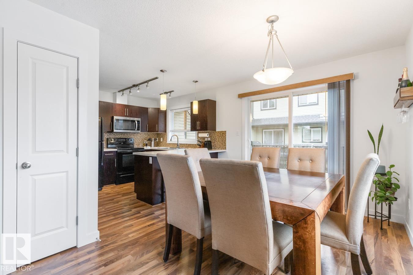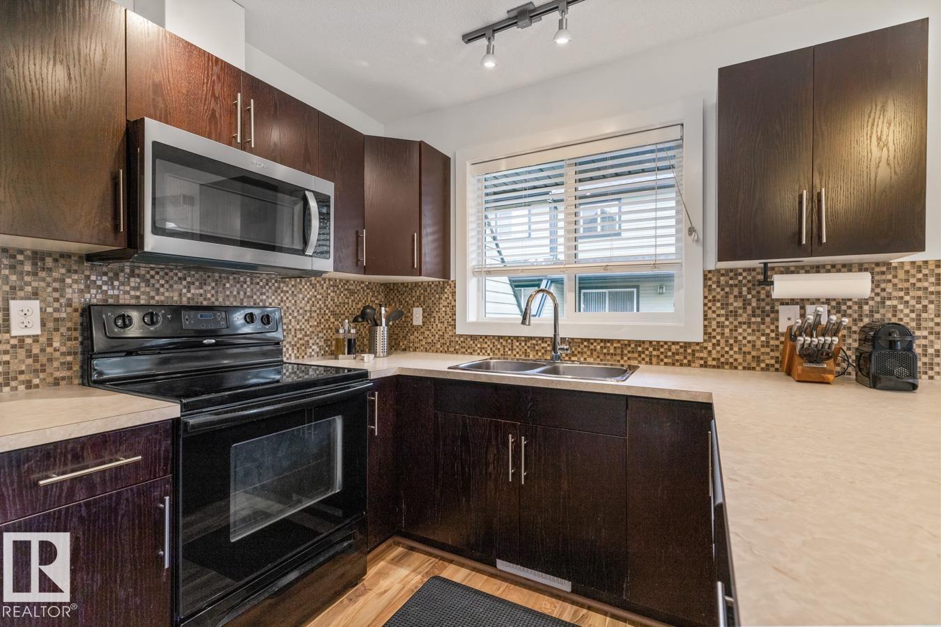 Terrific in Terwillegar Towne! Welcome to this well-maintained 1,269 square foot end-unit 2-storey townhome, ideally located in this family-friendly community. This end unit offers extra windows for abundant natural light and faces a beautiful park and community gardens, providing lovely views and added privacy. The bright main floor features a spacious living room and an efficient kitchen with pantry and large dining area, perfect for everyday living and entertaining. Upstairs you’ll find three generous bedrooms and 2.5 baths. The lower level includes a convenient laundry and mechanical area and direct access to the attached double garage. Enjoy year-round comfort with central air-conditioning and relax or entertain on the rear deck. Excellent location close to schools, transit, recreation, shopping, and dining. A great place to call home. (id:51989)