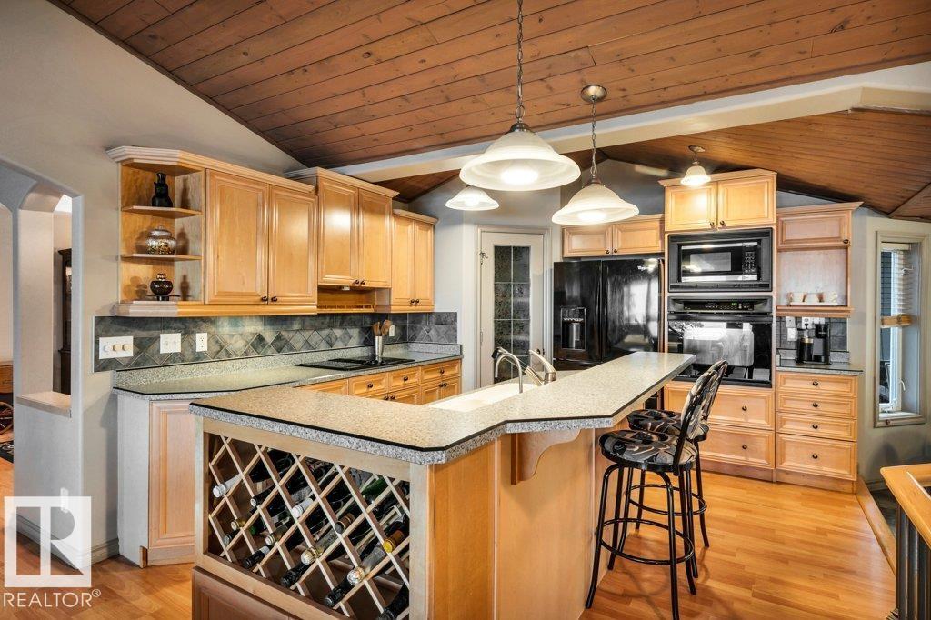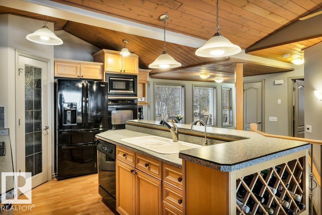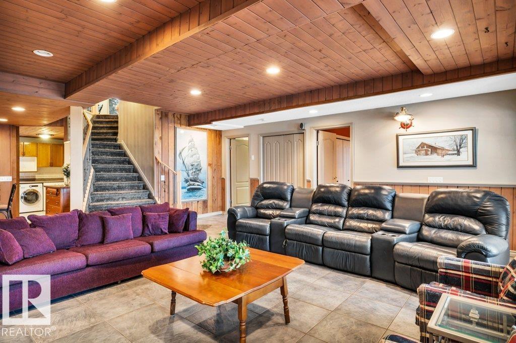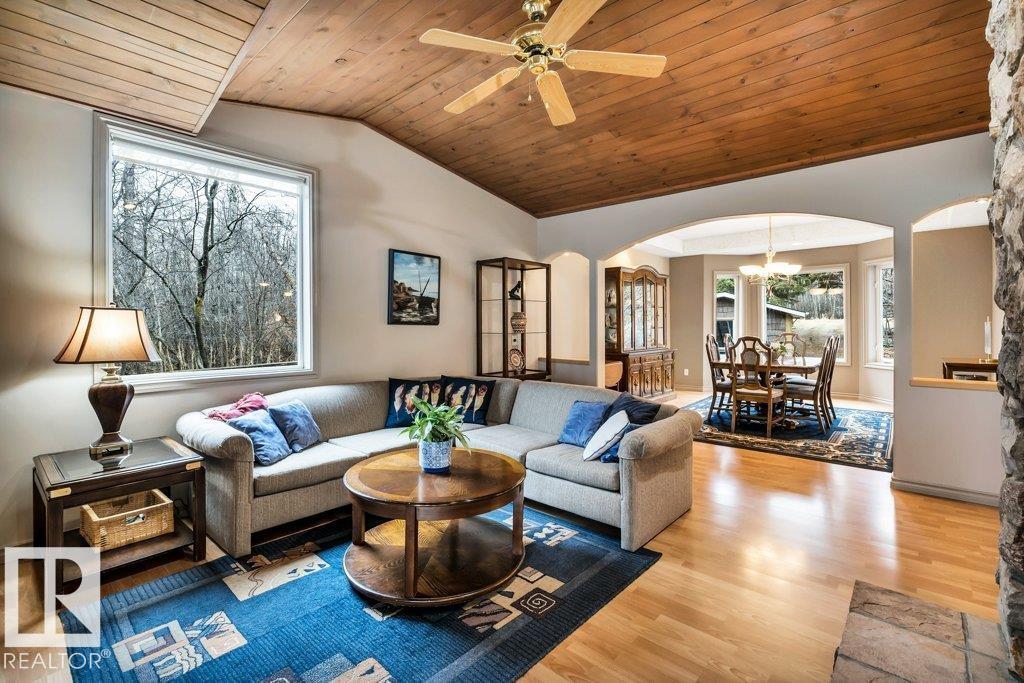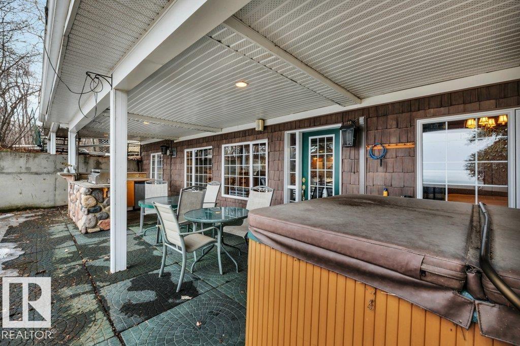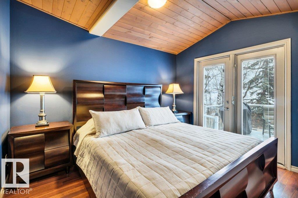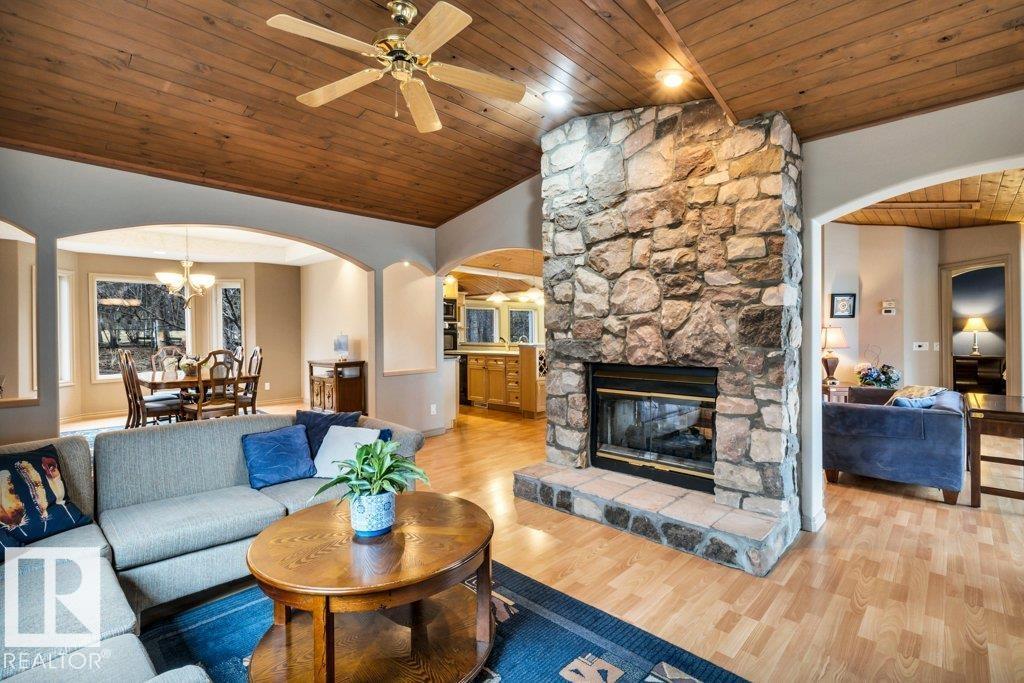 Discover the perfect blend of privacy, comfort, and lakeside living in this year-round walkout bungalow. Designed for both relaxation and connection, it features vaulted ceilings, warm wood accents, and a striking two-sided fireplace anchoring the open kitchen, dining, and living areas. Step onto the deck and take in serene lake views. The main floor offers a welcoming office near the entry, a spacious primary suite with walk-in closet and 5-pc ensuite, plus an additional bedroom for family or guests. Downstairs, enjoy a generous layout with a second living area, kitchen, workspace, private entrance, four bedrooms, and a 3-piece bath—ideal for extended family or visitors. Complete with an infrared sauna, patio with built-in BBQ, and direct lake access, this home delivers space, flexibility, and true waterfront privacy. (id:51989)