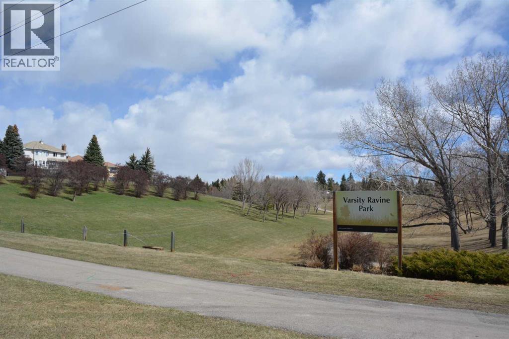 A unique design in VARSITY ACRES, awesome LOCATION (WALK TO Dalhousie LRT, FEW TRAIN STATIONS TO THE U OF C), Walk to Shopping, Sir Winston Churchill High School, VERY LOW CONDO FEES, and an ATTATCHED SINGLE GARAGE make this Varsity townhome a standout for first-time buyers, a young family, or as a rental property. A covered front porch is a welcome feature from the elements. Here is your chance at this unique property and to live in one of Calgary's most desired communities, that is close to Nose Hill Park, Foothills Hospital, Albert’s Children's hospital, and Market Mall.UPGRADES INCLUDE (As of APRIL 24, 2026): ALL CEILING, WALLS, BASEBOARDS, FRONT DOOR, FIREPLACE MANTLE PAINTED, 4 NEW LIGHT FIXTURES. ALSO, NEWER WINDOWS (KITCHEN, 2 BEDROOMS, AND MASTER (3 PANE), VINYL PLANKS 2 BEDROOMS, WASHER/DRYER 2023, FURNACE (AROUND 2016))***MAIN FLOOR*** A spacious foyer with big closets opens to the kitchen, which features a spacious layout with plentiful cabinetry and counter space. Natural light from the window over the sink is a fantastic element, and this room offers a great opportunity to update to your taste. An adjacent dining area is perfect for family dinners. In the living room, an actual wood-burning FIREPLACE and original hardwood floors add a wonderful character, and sliding glass doors to the deck flood the space with amazing sunshine from the south. ***UPPER FLOOR*** Upstairs, the primary bedroom has been refreshed with vinyl plank flooring. Large closets and cheater access to the main bathroom makes this feel like a self-contained retreat, and there is also a private vanity with a sink. There are two more bedrooms on this level, one of which includes a BALCONY. ***BASEMENT*** The Partly finished basement begins with a family room, the ideal hangout on movie night. The utility room also holds a laundry area with a newer washer and dryer and a huge amount of storage. A ROUGH-IN FOR A CENTRAL VAC is ready for your system. Plus, a COLD ROOM is fantastic f or pantry items or a wine collection. Outside, the DECK enjoys the shade of a mature tree and has new steps. This unit really feels like it has its own yard. It’s one of only a few with south exposure, and the staggered orientation creates a nicely secluded spot just for you. ***THE AREA*** This home is in a self-managed complex with incredibly LOW CONDO FEES, and amazingly well-located in a hidden pocket of the community. Behind the societal complex, SOCCER, BASEBALL FIELDS and PARKS give it a lovely serene setting, and pathways wind throughout the neighbourhood as well. A longer adventure will take you to the golf course and extensive off leash parks that run along the Bow River. In the other direction, a huge array of amenities is available at Crow Square just across the street, or a 5 minute walk over to Dalhousie Station to find everything you could need. Commuters will love quick access to both Crowchild Trail and the LRT, while students will appreciate proximity to the University. (id:51989)