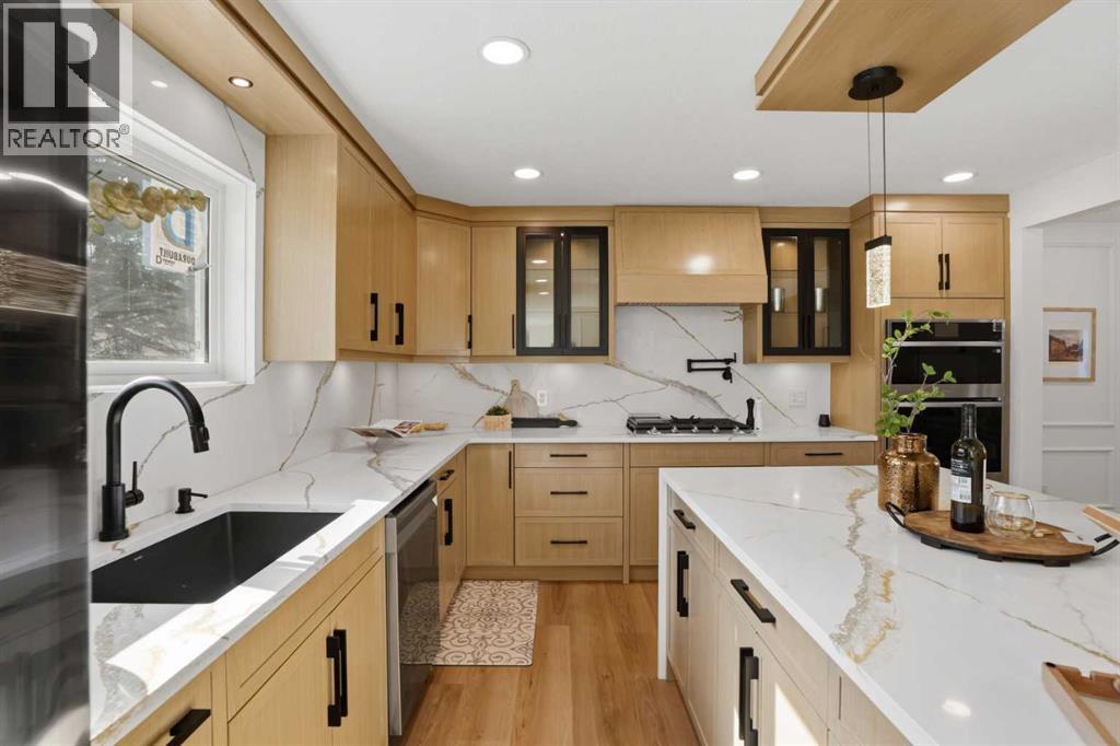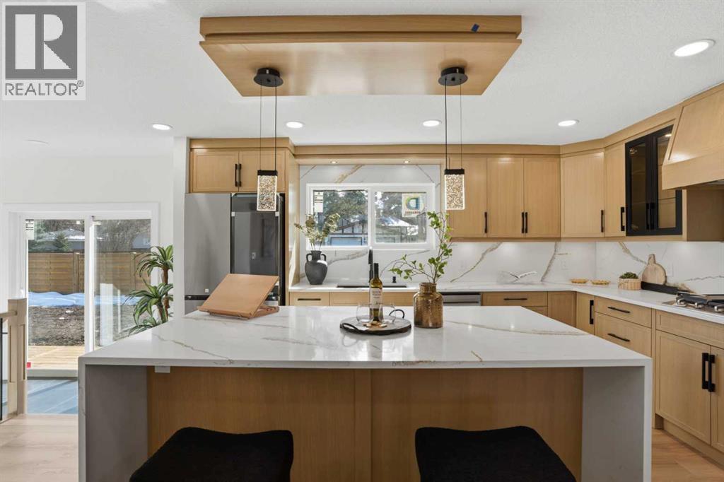 Open House May 2/3, 2026; 3:00PM-5:00PM. Welcome to this extensively renovated bungalow in the heart of Haysboro, offering over 2,700 sq.ft. of beautifully developed living space. This home has been completely redone down to the studs, showcasing exceptional craftsmanship, and a seamless blend of modern luxury and timeless design.Situated on a quiet, family-friendly street, this property offers unmatched convenience — just minutes from top-rated schools, expansive green spaces, scenic pathways along the Elbow River, and the historic Heritage Park Historical Village. Enjoy premier shopping and dining at Chinook Centre, all just steps away.The main level showcases a gourmet kitchen package featuring high-end cabinetry, quartz countertops, and a premium appliance package. The ENERGY STAR® certified refrigerator includes an internal water dispenser and advanced AI Family Hub+ technology, while the gas stove can be conveniently controlled via smartphone, bringing smart living to your fingertips.The primary bedroom retreat features his & hers closets and a beautifully finished 4-piece ensuite with full tile work extending across both floors and walls, creating a spa-like, luxurious experience. The second bedroom includes custom built-in shelving and a stunning 8-foot window, while the third bedroom offers flexibility as a home office, enhanced by large south-facing windows that flood the space with natural light.Elegant wood moulding in the dining area adds a rich, upscale touch, while the living room is anchored by a full-height stone feature wall with an electric fireplace, creating a warm yet sophisticated atmosphere.The fully developed basement expands your living space with a massive recreation area featuring a stylish accent wall, perfect for entertaining. A wet bar adds both function and flair, while two additional bedrooms provide versatility — one with a walk-in closet and the other with built-in shelving, ideal for guests or extended family.Extensive upgra des include a new furnace, tankless hot water system, new electrical wiring, new plumbing, new windows, and new insulation, offering complete peace of mind — truly a turnkey home with everything redone.Step outside to a sun-filled south-facing backyard offering over 2,000 sq.ft. of outdoor space — a rare and highly desirable feature that ensures all-day sunlight, perfect for entertaining, gardening, or creating your dream outdoor oasis. The backyard deck is equipped with a BBQ gas line, ideal for hosting gatherings. At the front, enjoy a stunning 25 ft x 10 ft elevated deck with sleek glass railing, adding both curb appeal and a luxurious outdoor living experience.Completing this exceptional home is an attached oversized garage, uniquely positioned on the right side of the home, enhancing both functionality and curb appeal while giving the property a more estate-style, upscale presence.A rare offering that perfectly blends luxury, location, and lifestyle — this is Hayboro living at its finest. (id:51989)