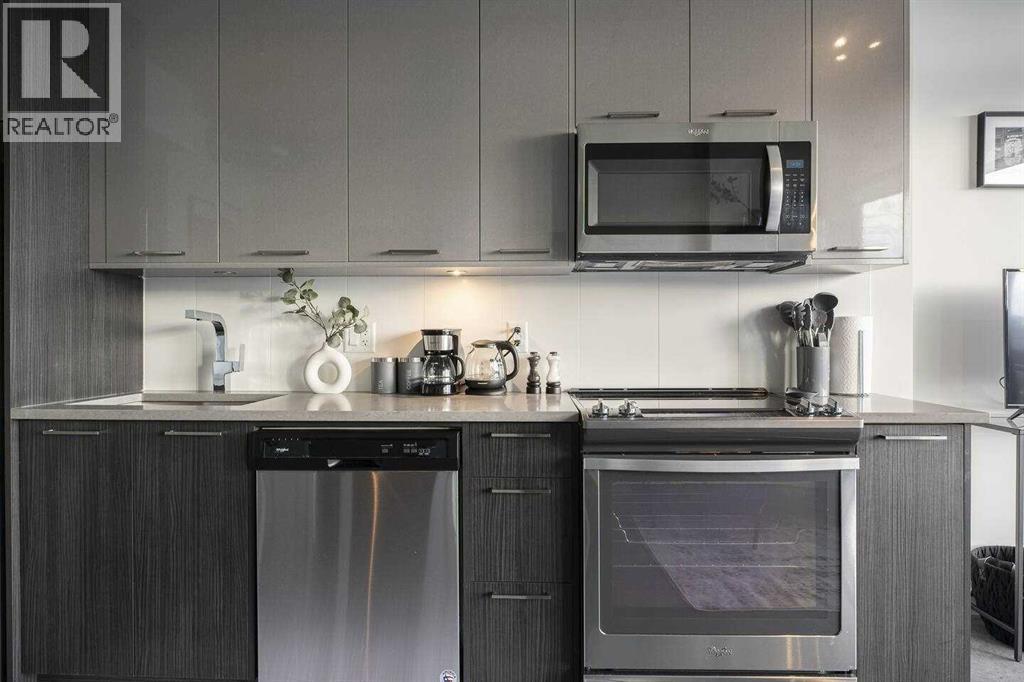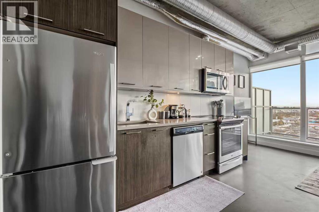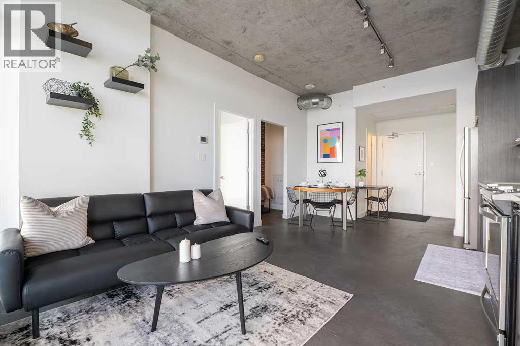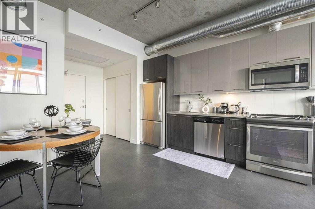 Welcome to INK by Battistella—where modern design meets vibrant downtown living. Perfectly situated in the heart of East Village, this striking condo is ideal for first home owners and professionals seeking a stylish urban retreat! Just steps from the City Hall LRT, Superstore, the award-winning Central Library, National Music Centre, Studio Bell, RiverWalk, and St. Patrick’s Island, this is truly the best of Calgary at your doorstep. Inside, this sun-drenched south-facing residence showcases uninterrupted views of the Saddledome and Stampede Grounds through expansive floor-to-ceiling windows. The industrial loft-inspired design exudes sophistication with 9’ exposed concrete ceilings, matte polished concrete floors, and central air conditioning for year-round comfort. The open-concept layout includes a versatile den/office (currently used as a bedroom), spacious primary bedroom, and a sleek 4-piece bathroom. The kitchen is a showpiece in itself, boasting quartz countertops, glossy metal upper cabinetry, premium hardware, and full-size stainless-steel appliances—seamlessly blending function and style. With in-suite laundry and a modern floorplan, this residence is perfectly tailored for the urban lifestyle. Whether you’re seeking your own inner-city sanctuary or a rental investment, INK offers a rare opportunity to own in one of Calgary’s most dynamic communities! (id:51989)