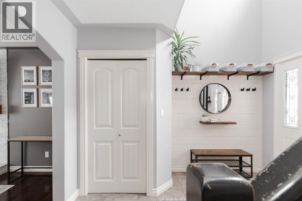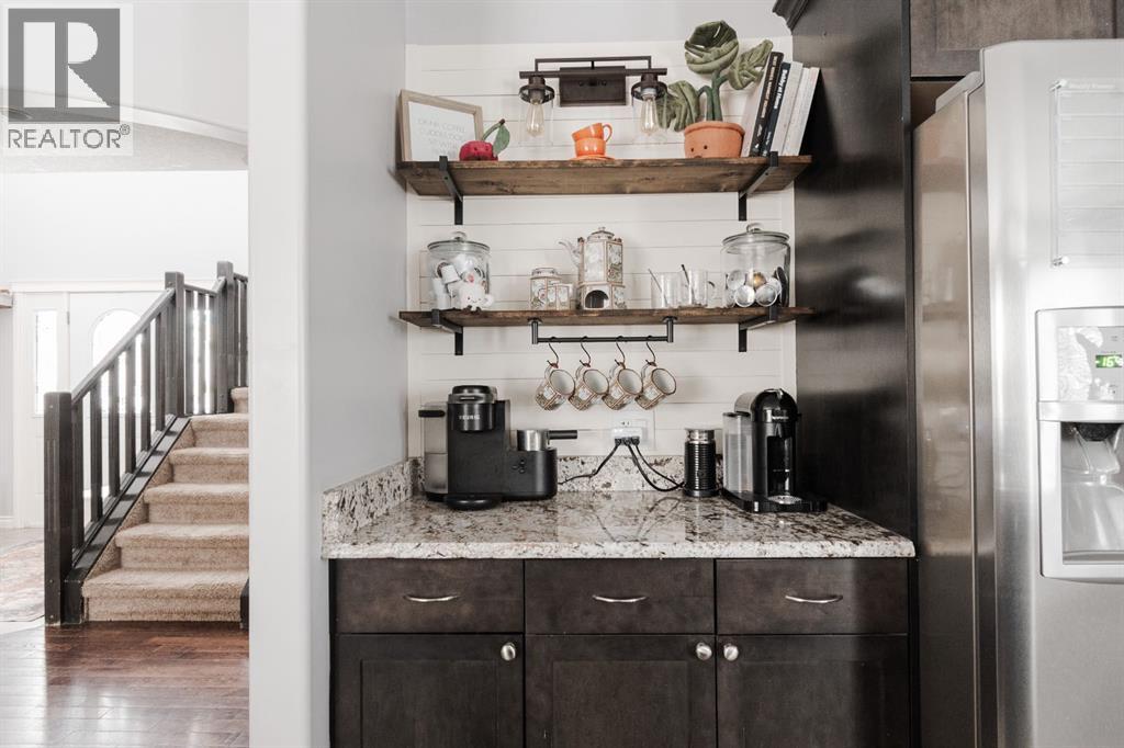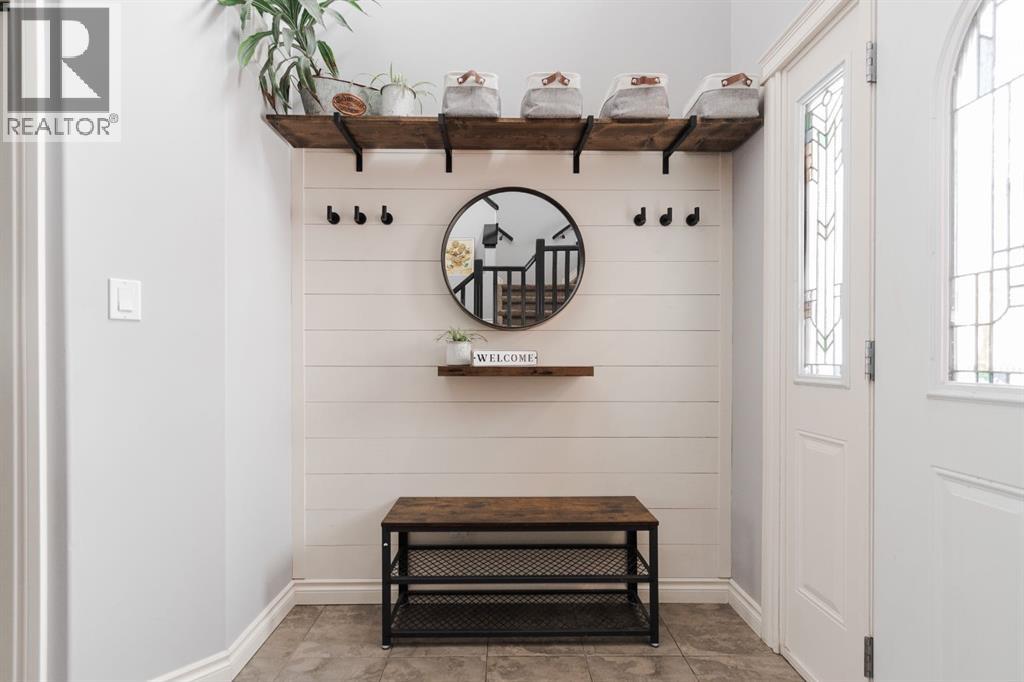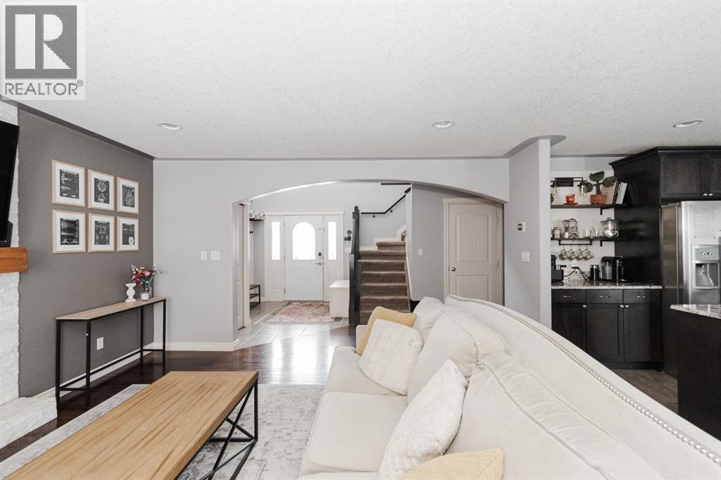 Welcome to 131 Chokecherry Place, a spacious and welcoming Timberlea home set on a generous 6,202 square foot pie lot with a backyard designed for connection, privacy, and everyday enjoyment. With farmhouse inspired modern updates throughout, this home offers a comfortable blend of character, function, and space in a layout that works beautifully for growing families.From the moment you arrive, the long driveway with parking for three vehicles and additional RV parking sets the tone for practicality. Stepping inside, the tiled entry welcomes you with a striking shiplap feature wall, built in shelving, crown mouldings, and a wagon wheel chandelier added in 2020 that immediately gives the home its charming farmhouse feel.The main living area features hardwood floors and a cozy gas fireplace framed by stone veneer and a wood beam feature also completed in 2020 when many updates were done. This space flows seamlessly into the kitchen and dining area, creating an inviting open concept environment for both daily living and entertaining. The kitchen is finished with granite countertops, an eat up island, black sprayer faucet, pantry storage, and a charming shiplap coffee bar with built in shelving. Wainscotting and an updated dining chandelier with Edison bulbs add to the character and warmth of the large space great for entertaining or nights in.The main floor also includes a convenient two piece bathroom with an updated light fixture and wood framed mirror. The laundry area is thoughtfully located off the garage mudroom and includes upper cabinets and a drying rod, making it both functional and efficient.Upstairs, you will find a large bonus room with a feature wall, perfect for movie nights or a second family space. The primary bedroom is spacious and includes a walk in closet and a five piece ensuite with dual sinks and a jetted tub. The bed frame and mounted nightstands in the primary bedroom are all included. The upper level is completed with updated finishes tha t tie the space together nicely, hosting two additional bedrooms and a four piece bathroom.The basement offers a flexible layout suited for a home gym, recreation space, or guest use. A four piece bathroom is included, along with cork flooring that provides warmth and moisture resistance for your home gym or entertaining space. A Murphy bed is included, along with multiple televisions that can stay, and built in speakers with a Sonos system, receiver included. This space also has a separate entrance into the backyard for easy indoor outdoor access.Outside, the large pie shaped backyard offers a mix of open space and privacy. With added privacy walls on the deck, planted trees, and the natural pie lot shape help create a peaceful setting. The gazebo stays, along with a gas line for the barbecue, a fire pit area, a two tiered deck, and a dedicated dog run. This yard has clearly been enjoyed and designed for making memories.Additional features include central air conditioning and an updated humidifier. (id:51989)