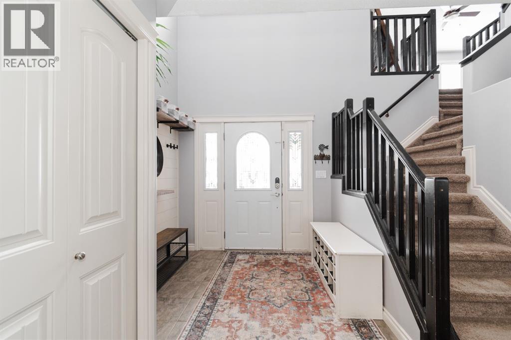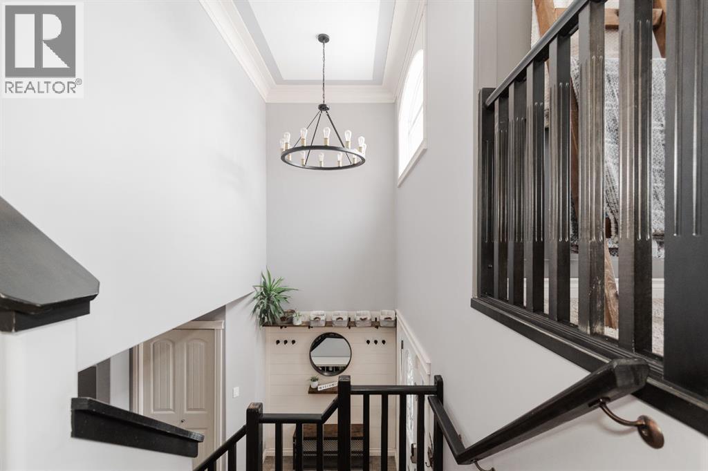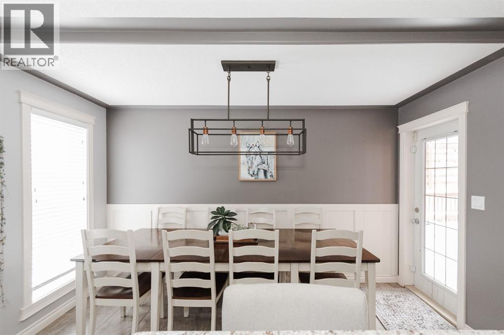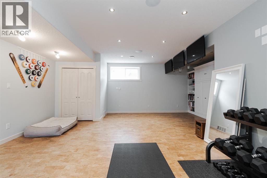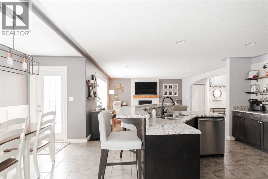 Welcome to 131 Chokecherry Place, a spacious and welcoming Timberlea home set on a generous 6,202 square foot pie lot with a backyard designed for connection, privacy, and everyday enjoyment. With farmhouse inspired modern updates throughout, this home offers a comfortable blend of character, function, and space in a layout that works beautifully for growing families.From the moment you arrive, the long driveway with parking for three vehicles and additional RV parking sets the tone for practicality. Stepping inside, the tiled entry welcomes you with a striking shiplap feature wall, built in shelving, crown mouldings, and a wagon wheel chandelier added in 2020 that immediately gives the home its charming farmhouse feel.The main living area features hardwood floors and a cozy gas fireplace framed by stone veneer and a wood beam feature also completed in 2020 when many updates were done. This space flows seamlessly into the kitchen and dining area, creating an inviting open concept environment for both daily living and entertaining. The kitchen is finished with granite countertops, an eat up island, black sprayer faucet, pantry storage, and a charming shiplap coffee bar with built in shelving. Wainscotting and an updated dining chandelier with Edison bulbs add to the character and warmth of the large space great for entertaining or nights in.The main floor also includes a convenient two piece bathroom with an updated light fixture and wood framed mirror. The laundry area is thoughtfully located off the garage mudroom and includes upper cabinets and a drying rod, making it both functional and efficient.Upstairs, you will find a large bonus room with a feature wall, perfect for movie nights or a second family space. The primary bedroom is spacious and includes a walk in closet and a five piece ensuite with dual sinks and a jetted tub. The bed frame and mounted nightstands in the primary bedroom are all included. The upper level is completed with updated finishes tha t tie the space together nicely, hosting two additional bedrooms and a four piece bathroom.The basement offers a flexible layout suited for a home gym, recreation space, or guest use. A four piece bathroom is included, along with cork flooring that provides warmth and moisture resistance for your home gym or entertaining space. A Murphy bed is included, along with multiple televisions that can stay, and built in speakers with a Sonos system, receiver included. This space also has a separate entrance into the backyard for easy indoor outdoor access.Outside, the large pie shaped backyard offers a mix of open space and privacy. With added privacy walls on the deck, planted trees, and the natural pie lot shape help create a peaceful setting. The gazebo stays, along with a gas line for the barbecue, a fire pit area, a two tiered deck, and a dedicated dog run. This yard has clearly been enjoyed and designed for making memories.Additional features include central air conditioning and an updated humidifier. (id:51989)