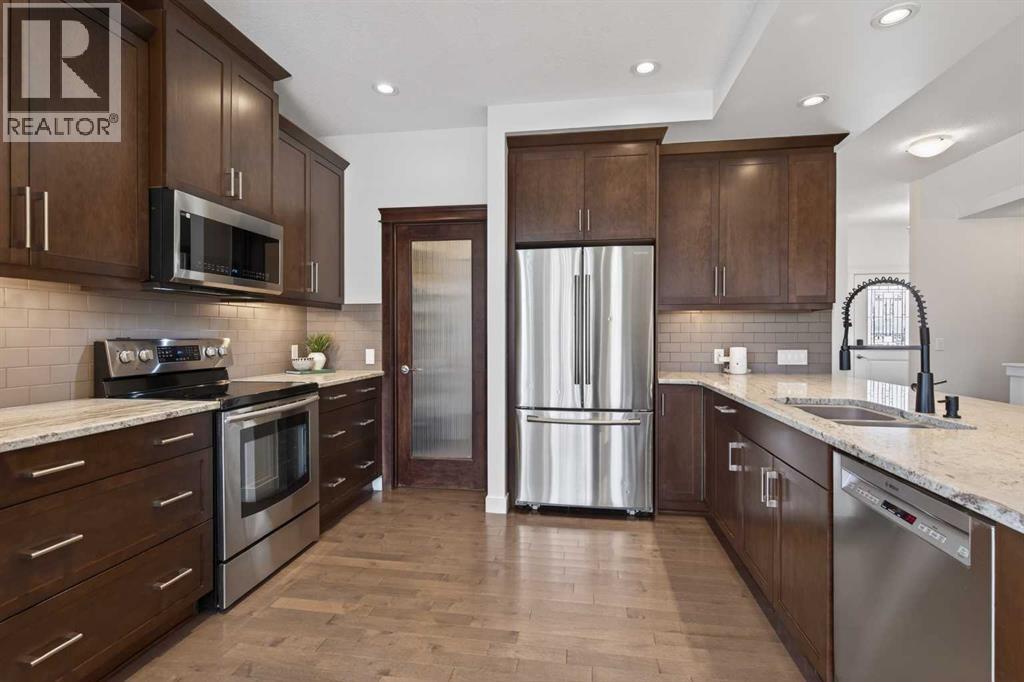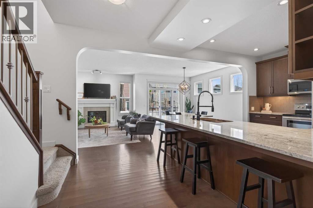 OPEN HOUSE - SAT April 25, 2-4 PM. Located in Ravenswood and just steps from two elementary schools (including a French option), this is the kind of home that makes everyday life feel easy.Set on an ~6000 sqft pie lot, there’s no shortage of space. Whether you’re dreaming of a pool, need room for kids and dogs to run, or just want a backyard you can actually enjoy. The composite deck is ready for summer, and the triple slider off the dining area creates that seamless indoor-outdoor flow.The triple car tandem garage is the star of the show, with an additional overhead door to the backyard. Perfect for projects, toys, or extra access when you need it. Add in a large driveway, and there’s room for everything.Inside, the open floorplan is filled with natural light thanks to all the extra windows, and the hardwood floors add warmth throughout the main level. The living room is anchored by a gas fireplace, while the kitchen is designed to keep up with real life. Loads of cabinetry, functional, and centred around a peninsula that makes cooking, hosting, and everyday moments feel connected. Bonus: the pantry leads to the garage for easy unloads.Upstairs, the primary suite is spacious and bright, complete with a walk-in closet and a 5-piece ensuite. Two more bedrooms, another full 5-piece bath (2 sinks means less fighting), and a thoughtfully designed laundry room with folding counter and storage make this level as practical as it is comfortable. The bonus room gives you that extra space everyone wants for either movie nights, a playroom, or a quiet place to unwind.The basement is ready for whatever you have in mind.Extras include A/C, a 75-gallon hot water tank, and a heated garage.A home that offers space, function, and flexibility inside and out. Garage is 24'5" x 20'1" - Tandem is 24'5"x 12'2" (id:51989)