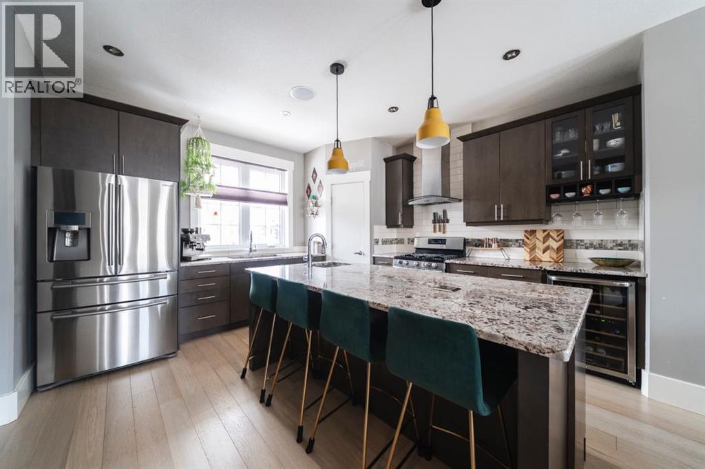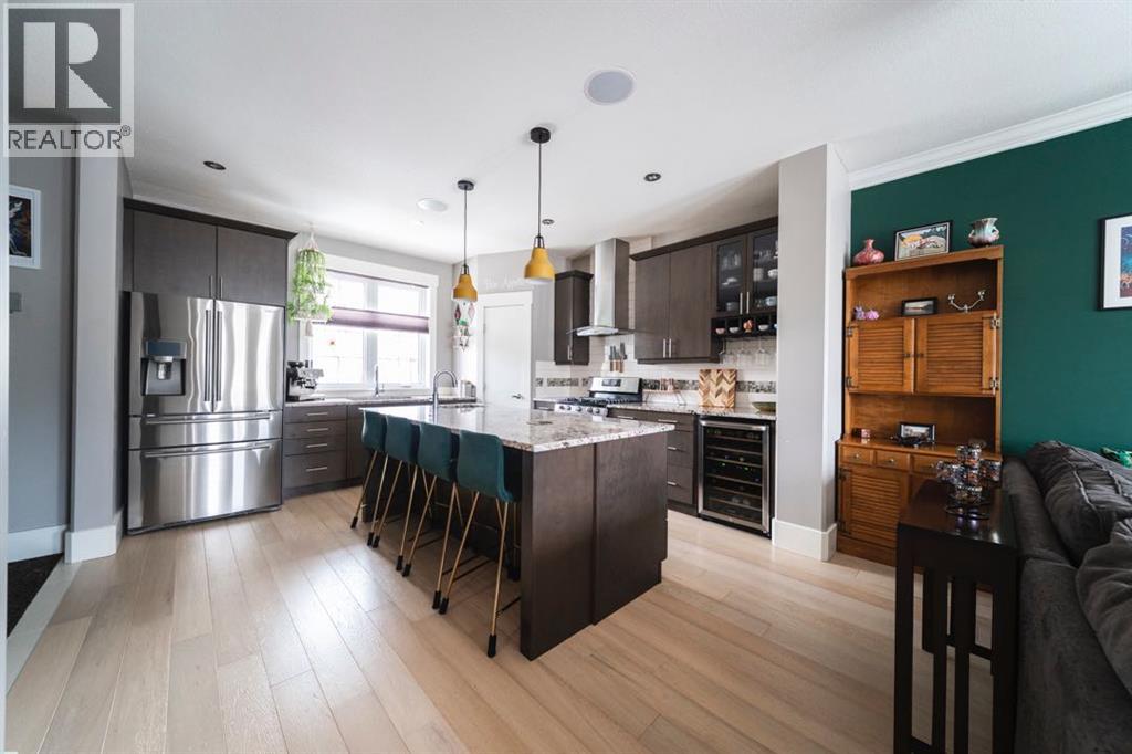 Welcome to 132 Comeau Crescent, a one of a kind three storey home lovingly owned and curated by its original owners since 2013. With a bold front door, an enviable covered front step, a hammock included to enjoy the shade of the tree, and charming homes lining the street, this one is truly unlike anything else on the market. Every detail has been chosen with intention, and the energy here is something you have to experience in person.Step inside and feel it immediately. Engineered hardwood floors, crown moulding, new lighting installed in 2025, built-in speakers, and dimmable lights throughout create a warm and curated atmosphere. The living area centres around a Napoleon gas fireplace framed by a stunning green feature wall with green rocks nestled inside, grounded and earthy, while three large windows flood the space with natural light.The kitchen earns its place as the heart of the home with granite countertops, a gas burner, wine fridge, built-in wine rack, tile backsplash, under cabinet lighting, corner pantry, slide-out garbage, and a island with a prep sink and microwave. A built-in entry bench, central vacuum, and clever under-staircase storage round out a main floor designed with real life in mind. A freshly painted two-piece bathroom with crown moulding and back entry laundry complete the level.Upstairs, the king-sized primary features blackout blinds, boho beaded lighting, and an ensuite with an oversized rain shower, heat lamp, and water closet. Two additional bedrooms and a four-piece rain shower bathroom complete the second floor.The top floor is where the fun lives. A wet bar, wine fridge, pool table, four-piece bathroom, and hardwood floors make this an entertainers dream, equally suited as a games room, lounge, or expansive primary retreat.The legal two-bedroom basement suite is self-contained, soundproofed, and heated with in-floor heat, offering a low maintenance income stream for the next owner.Outside, stamped concrete, a fire pit, and a h ot tub sold as is create a low maintenance backyard built for enjoyment. The detached heated 20x22 garage was raised eight inches and fitted with weeping tile and drainage, with shelving included and additional parking alongside. A bus stop is ninety seconds from your front door.132 Comeau Crescent is alive with character, income potential, and a vibe that is entirely its own. Come see it for yourself. (id:51989)
