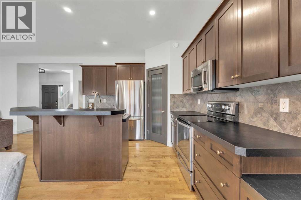 No better place to call home than a quiet keyhole close in a family-oriented neighbourhood. This well-maintained, fully finished two-storey home is move-in ready with fresh paint, brand new carpet, and thoughtful updates throughout.A covered front porch welcomes you into the spacious front entryway. The main floor offers an open concept living room, kitchen, and dining area with hardwood flooring. The kitchen features plenty of cabinetry, a corner pantry, raised eating bar, double Silgranit sink, and brand new stainless steel fridge and dishwasher. The living room is generously sized with room for a large sectional, plus a gas fireplace and large window overlooking the deck and backyard.The fenced yard offers mature landscaping for added privacy when the trees are in full bloom. Enjoy the upper back deck with DuraDeck material, aluminum and glass railings, and a glass privacy wall, plus a second lower deck recently added in 2025. The yard also includes a large shed, fenced dog run and firepit area, making it a great space for relaxing or entertaining.The main floor also includes a 2-piece bathroom and a mudroom off the heated attached garage, which includes additional laundry hookups. Upstairs, you’ll find a large bonus room, 3 bedrooms, and 2 full bathrooms. The primary bedroom easily accommodates a king-sized bed and additional furniture, and features a walk-in closet and ensuite with an air-jetted soaker tub and separate shower.The fully finished basement offers functional in-floor heating, adding comfort and value to the home. Additional features include new shingles in 2020 and a Nest thermostat. Located close to several amenities including Oxbow Dog Park, Starbucks, shopping, schools, and more, this home is a wonderful option for families looking for comfort, space, and a great location. (id:51989)