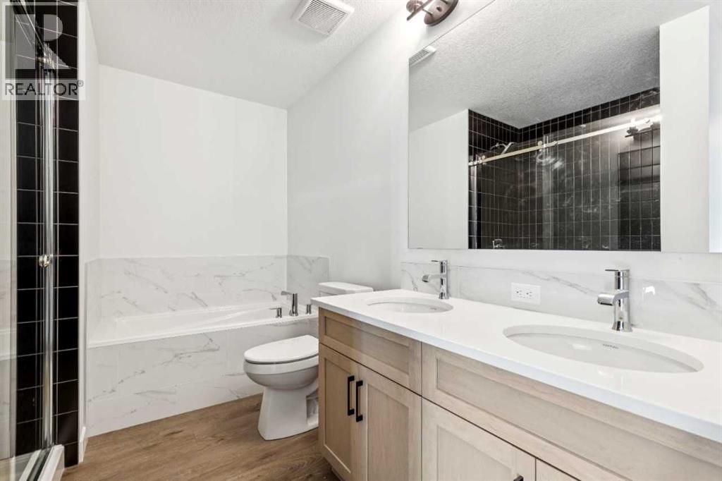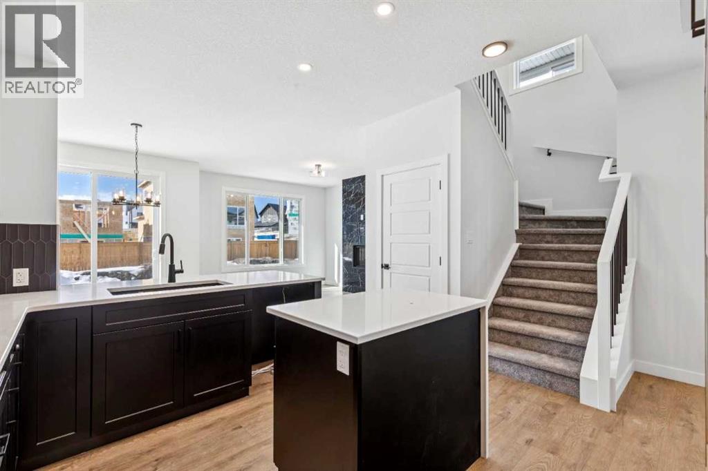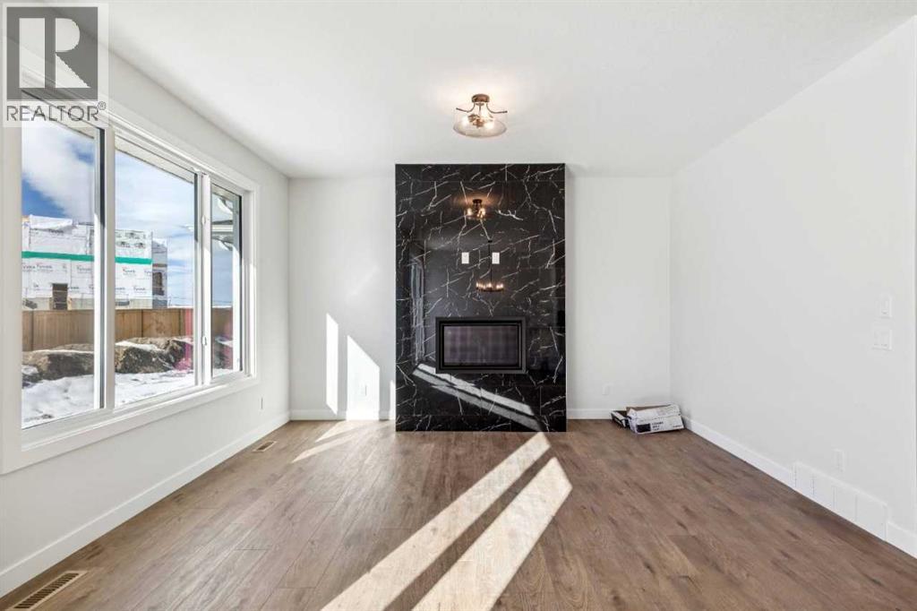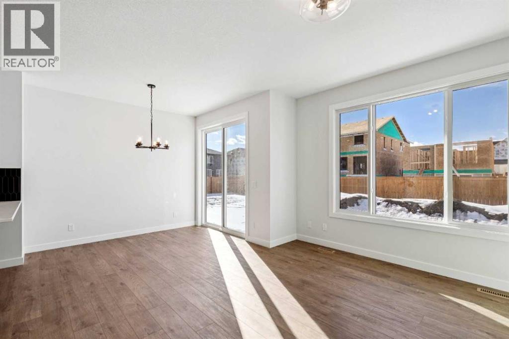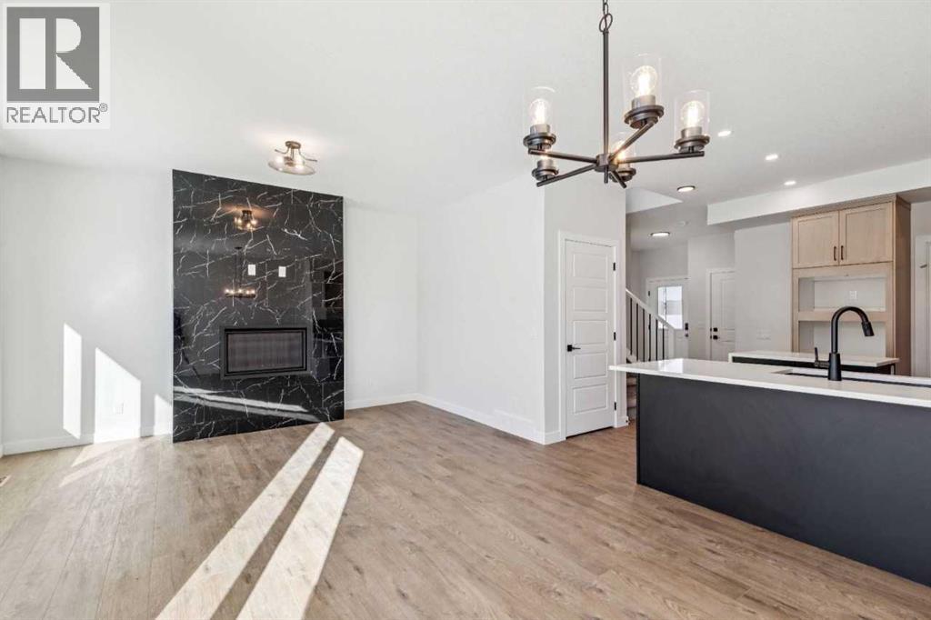 Welcome to the Valmore 4 by Sterling Homes Calgary. Built by a trusted builder with over 70 years of experience, this home showcases on-trend, designer-curated interior selections tailored for a home that feels personalized to you. Energy efficient and smart home features, plus moving concierge services included in each home.Built to 2025 specifications, this home features LVP throughout the main floor and all wet areas, triple-pane and additional windows, and a gas fireplace with floor-to-ceiling tile. The executive kitchen offers built-in stainless steel appliances, gas cooktop, fridge with water and ice, a peninsula layout with waterfall island edge, walk-in pantry, and Quartz countertops with undermount sinks. The primary bedroom includes a 5-piece ensuite with soaker tub, tiled walk-in shower with niche, and stylish finishes. With 9' basement wall height and a BBQ gas line rough-in, this home delivers comfort, efficiency, and modern design. This energy-efficient home is Built Green certified and includes triple-pane windows, a high-efficiency furnace, and a solar chase for a solar-ready setup. With blower door testing that may be eligible for up to 25% mortgage insurance savings, plus an electric car charger rough-in, it’s designed for sustainable, future-forward living. Featuring a full range of smart home technology, this home includes a programmable thermostat, ring camera doorbell, smart front door lock, smart and motion-activated switches—all seamlessly controlled via an Amazon Alexa touchscreen hub. Some photos are representative. (id:51989)